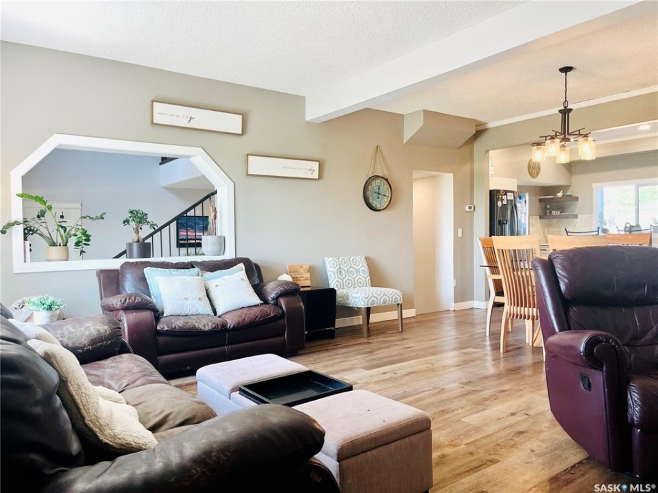 Welcome to Howe Acres showcasing stunning renovations and creative use of old and new! This large family home boasts 6 bedrooms & 4 bathrooms. Significant storage space, entertaining space, attached double heated garage & a mudroom every acreage should have! Back deck is spacious with room for the whole family and some friends! Yard consists of useful outbuildings like a quonset, shop and older garage plus plenty of space in the 20 acres if you have some horses to accommodate. A short drive to the lovely town of Eston with all amenities you could want and a hop, skip & jump to the beautiful Eston Riverside Regional Park! It's the perfect location to everything you'd need plus a view of the Land of The Living Skies for miles! Directions: 6 miles south of Eston on highway 30, 1 mile east, 1 mile south. First yard on west side of road.
