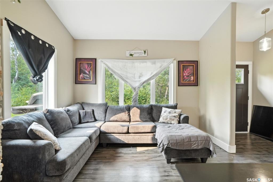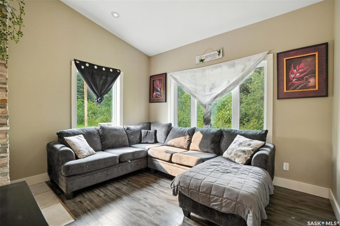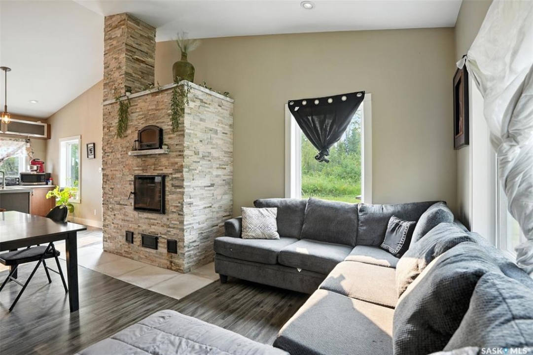 Luxury living in an extremely private setting right near the Nisbet Forest. This spacious house features a spacious kitchen and living area with a central focus on the beautiful rock clad wood stove and pizza oven. There are 4 bedrooms and 2 bathrooms on the main floor. Rounding out the main floor is the convenient laundry with no stairs in the way. Upstairs you will find a massive recreational room with plenty of room for the kids to hang out, as well as a 3 piece bath. Throughout this beautiful home you will see the thought that went into construction to emphasize longevity and efficiency, from the extra foam insulation under the siding and slab, to the metal roof, as well as the cozy in floor heat. This property also features a spacious two car garage, a nice garden shed, tree fort, and woodshed. The spacious 19 acre property gives plenty of space to hunt or make your own private riding trails. Endless maintained quadding and sledding trails just 5 minutes down Jack Pine Trail. Or snowshoe from your front door for miles! Look no further for your perfect home in the woods.
