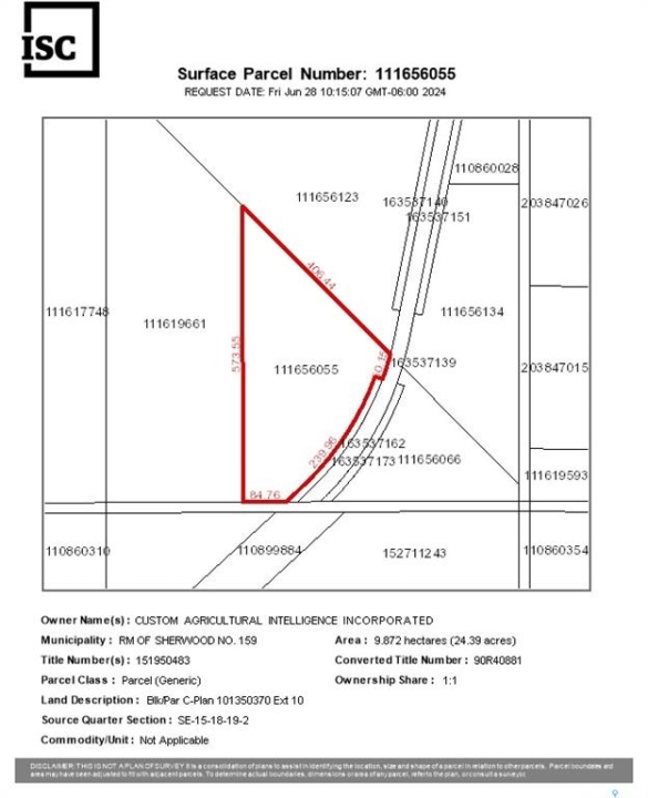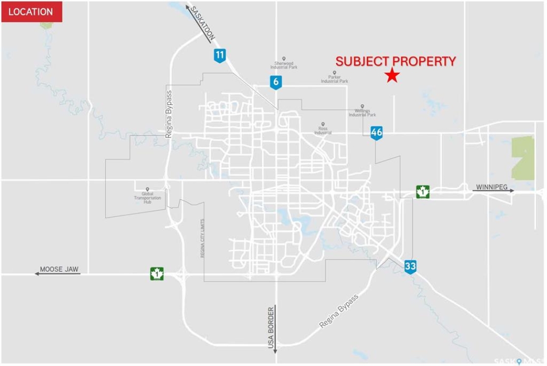 35 ACRES of land just north east of Regina near the Tor Hill Golf Course and the newly developed Parker Industrial subdivision. Priced below appraisal value. Accessible from Inland Drive, it's apprx 1 mile north of Regina City Boundary. Significant amount of civil work has been done. There is a detached garage and a storage shed on site for storage. 600 V transformer on site along with natural gas available. 10% deposit must be provided on all offers. All offers must be approved by Court.