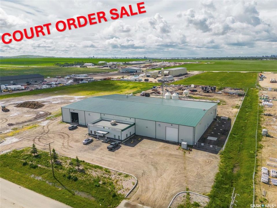COURT ORDER SALE - Impressive/premium industrial property just under 40,000 sqft situated on 5 acres of property north of Regina. This high quality industrial building features many upgrades that will benefit various type of industrial use and needs. The building is a pre-engineered steel frame structure equipped with 8 large overhead doors and 2,000 AMP electrical service, heavy floor load slab, 24'-26' exterior height, and built out offices(1,891ft). The building is also designed for multiple tenant occupancy. Court Order Sale - minimum 10% deposit for all offers and property sold as-is & where-is. All offers subject to Court Approval.