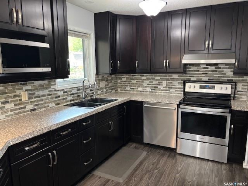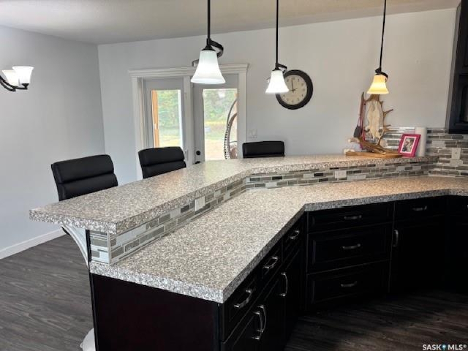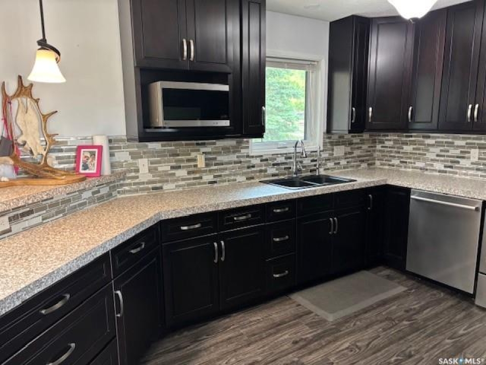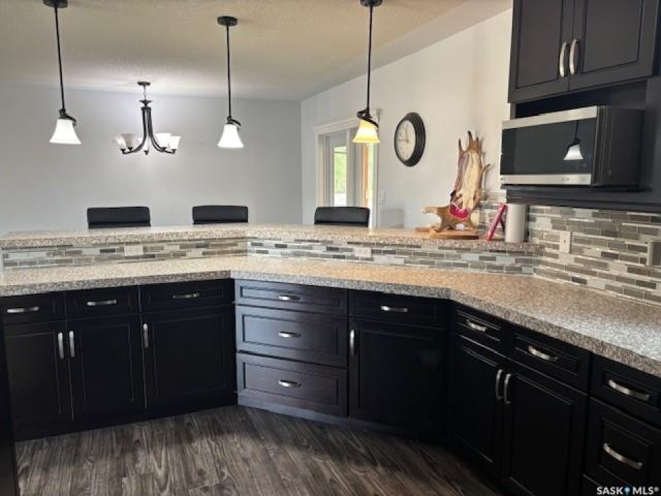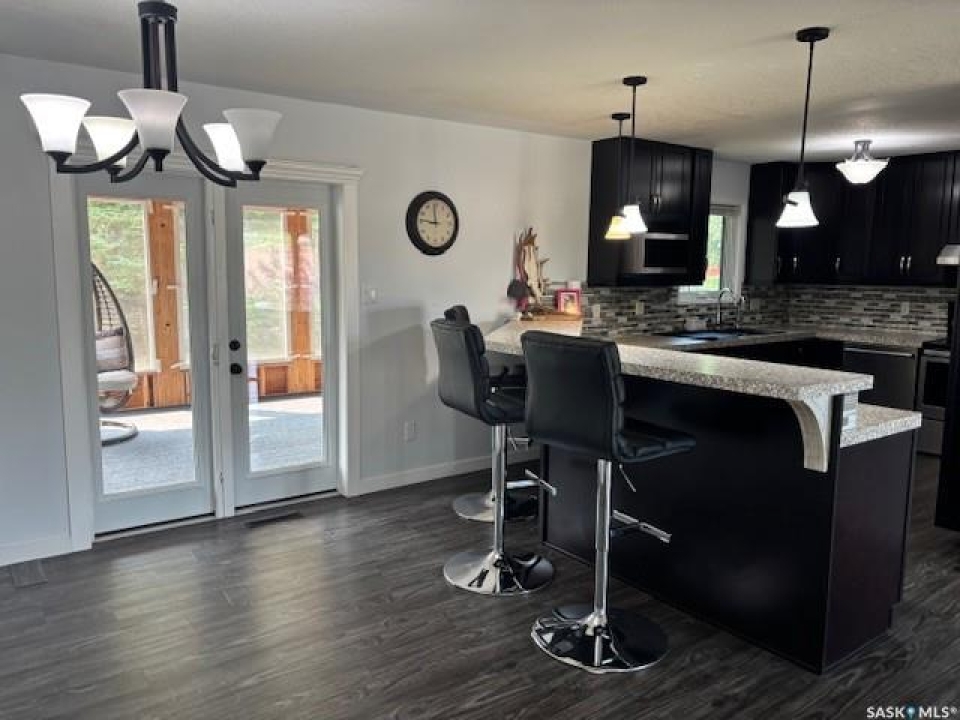 Discover this rare find in a sought-after neighborhood in Sturgis, SK. This spacious home offers 1,584 square feet on the main level, featuring a beautifully renovated kitchen (2018) with a breakfast bar, a large living room, and a sunken recreation area perfect for relaxing or entertaining guests. The master bedroom includes a private 3-piece ensuite, with an additional bedroom and a main floor laundry area adding convenience. The main bathroom boasts a jetted bathtub, ideal for unwinding. A standout feature is the massive sunroom added in 2019, providing a bright, versatile space to enjoy with family and friends. The basement, extensively renovated in 2022, includes a generous recreation room, two large bedrooms, a 3-piece bathroom, and a utility area. Outside, the huge yard offers privacy with mature trees, a garden, a pond, and plenty of space for outdoor activities. The property also includes a fully heated double detached garage and parking for up to 8 vehicles. Additional amenities include central air conditioning and NG BBQ hookup! Included in the purchase price: fridge(2), stove, washer, dryer, bar stools, armoires, BBQ, and all window coverings. This home combines modern upgrades with spacious living and outdoor tranquility—an exceptional opportunity not to be missed. Call today for more details as you don't want to miss out on this one!