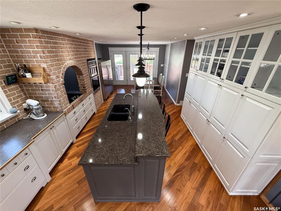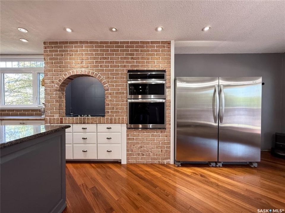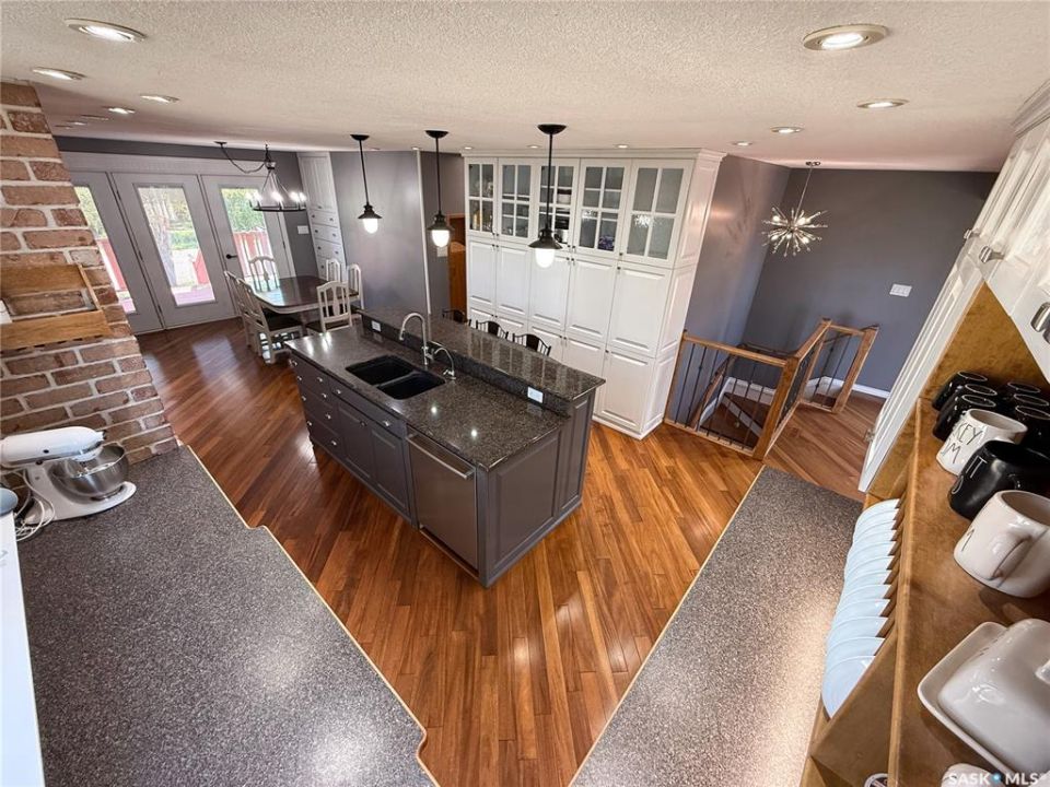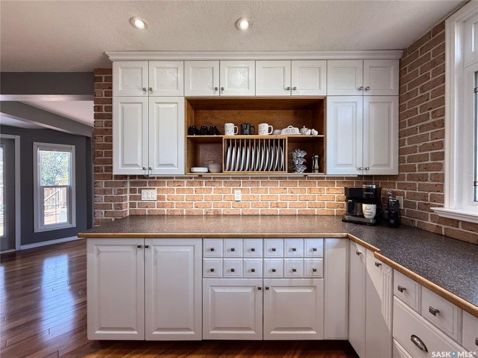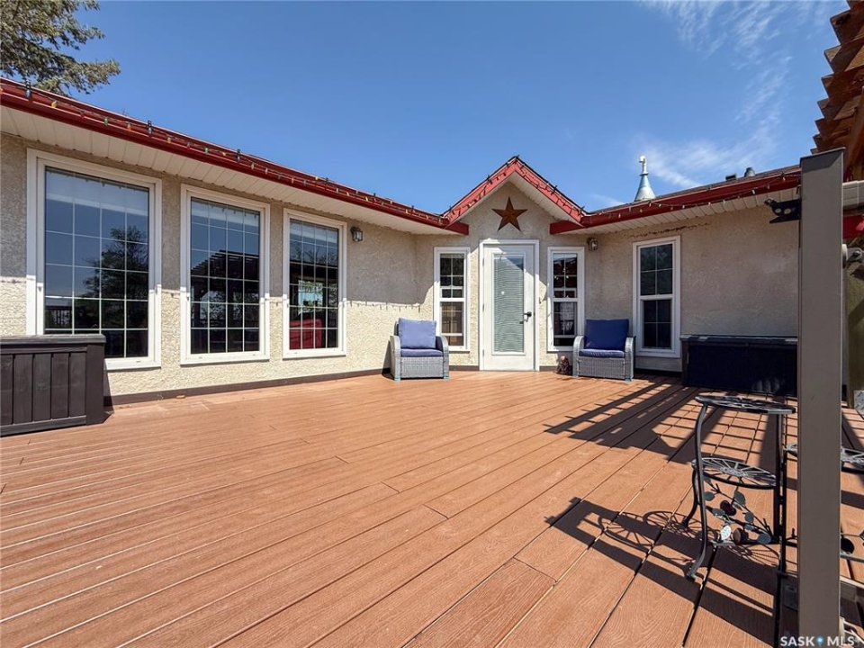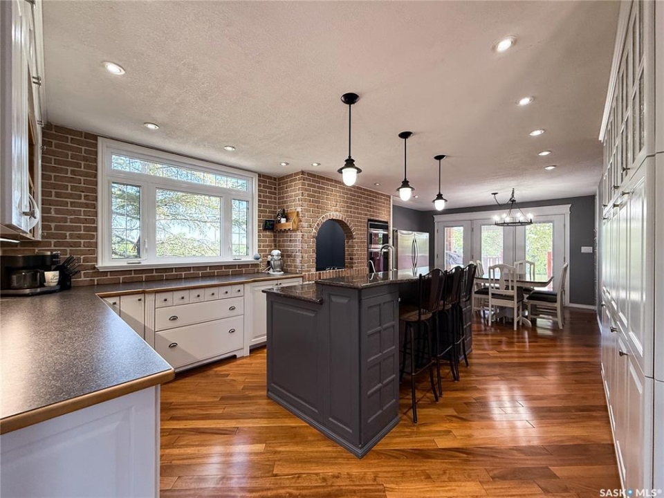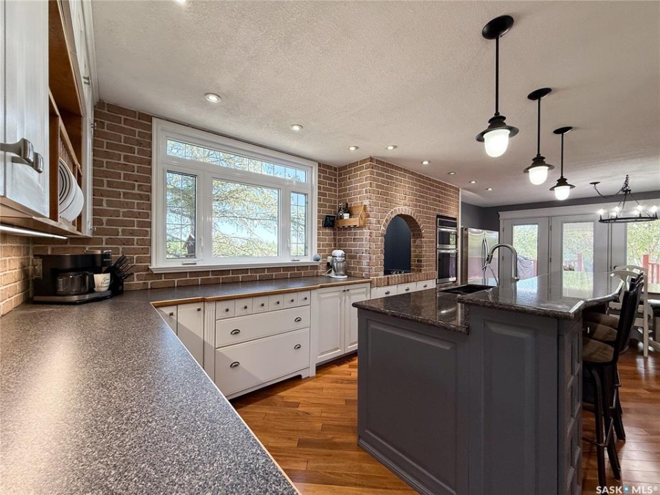 Welcome to 117 2nd Street W in Frontier — a beautifully updated 1,648 sq. ft. walkout bungalow that offers a generous 3,296 sq. ft. of total living space. With 5 bedrooms, 3 bathrooms & thoughtful design touches throughout, this home is both functional & full of heart. Originally built in 1977, it has been extensively renovated & lovingly maintained across generations — a true family home, ready for its next chapter. Enter from the front to find a stunning kitchen & dining area that feels both modern & timeless. Custom cabinetry, built-in garbage & recycling, under-cabinet lighting, & brick accents set the tone, while oversized windows flood the space with natural light. Storage is abundant, & every detail has been carefully considered. The living room is spacious & bright, offering direct access to a large deck with pergola. Garden doors from the deck lead directly into the primary suite, which includes a walk-in closet, a 3-piece ensuite, & main floor laundry for ultimate convenience. Two additional main floor bedrooms (one also with a walk-in closet) & a beautiful 4-piece bathroom complete this level. The walkout basement, accessible from under the carport, provides a second full living space with a gas fireplace, a large family room, patio doors, & an updated mudroom that connects to a spacious workshop. The lower level also includes two more bedrooms (one used as an office with a walk-in closet), a 3-piece bath, a storage room & utility room. Major updates offer peace of mind: roof(2010), furnace(2023), water heater(2024), 2-stage water filter, washer & dryer(2024), oversized fridge(2024), cooktop, oven & microwave(2025) and natural gas BBQ hook-up with BBQ included (2025). Set on a generous lot with mature landscaping & loads of curb appeal, this home has been built — & lived in — with love. If you're seeking space, warmth, quality craftsmanship, & the kind of home that just feels right the minute you step in, then 117 2nd Street W is waiting for you.
