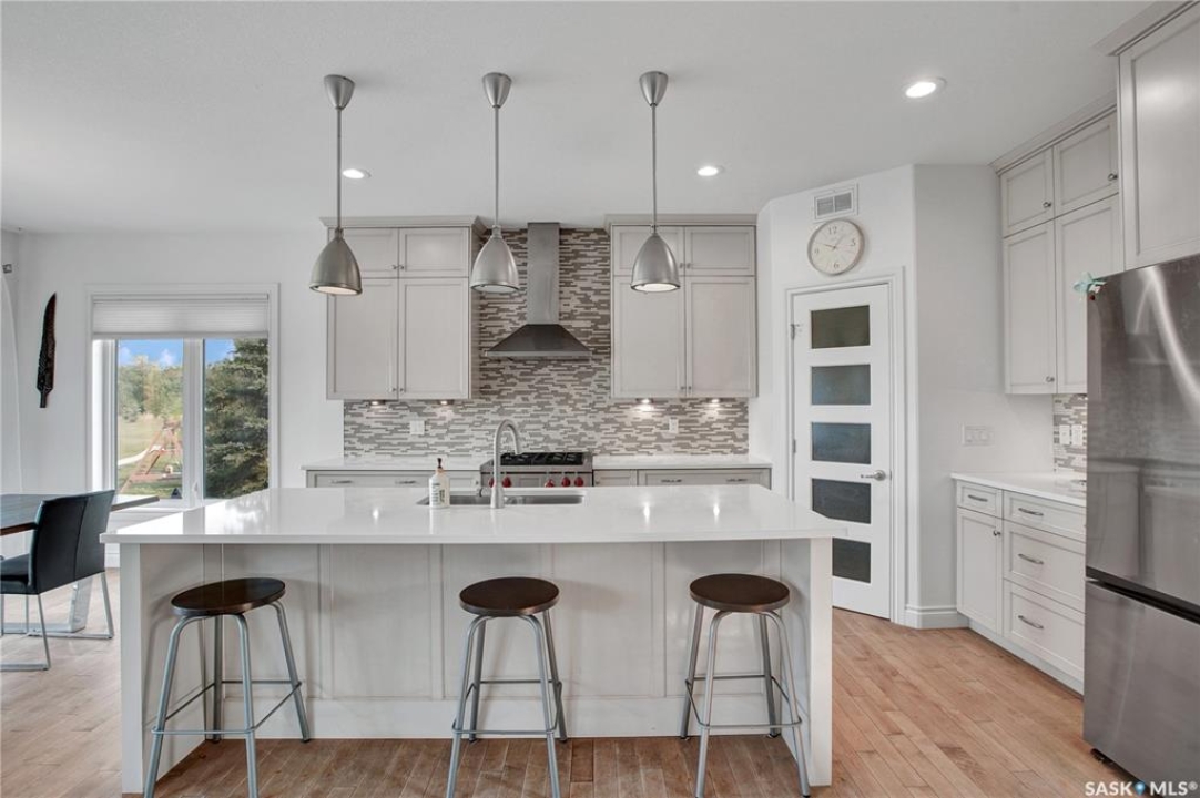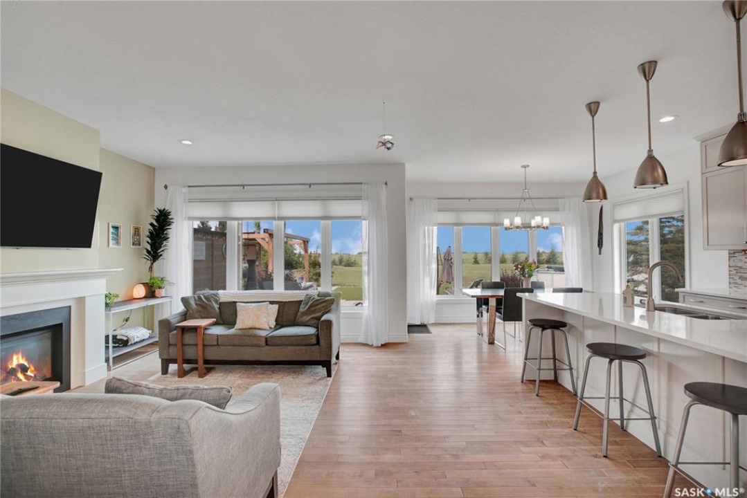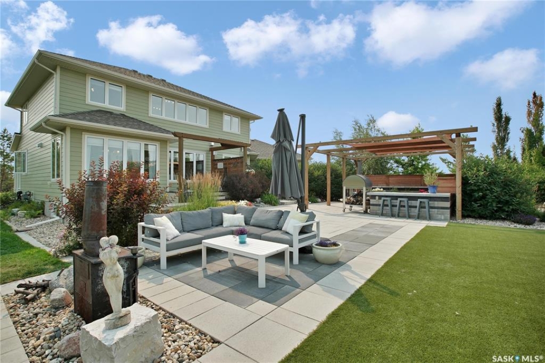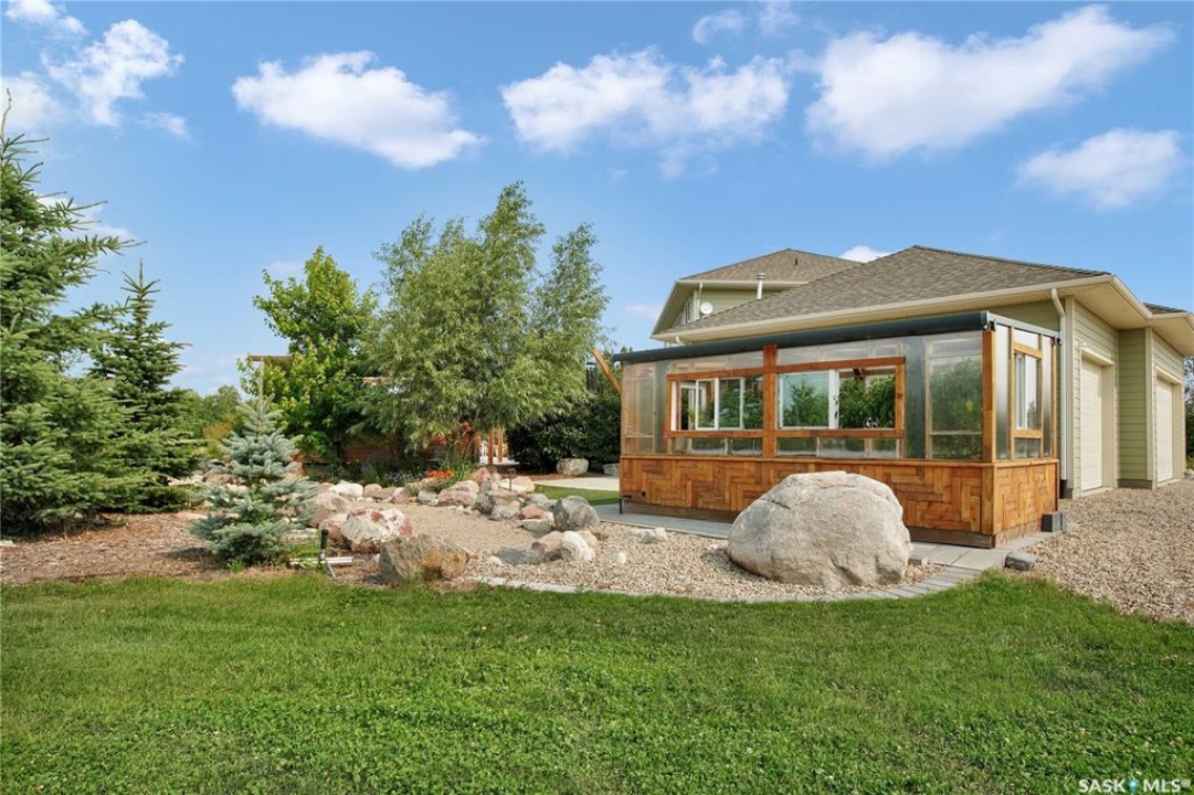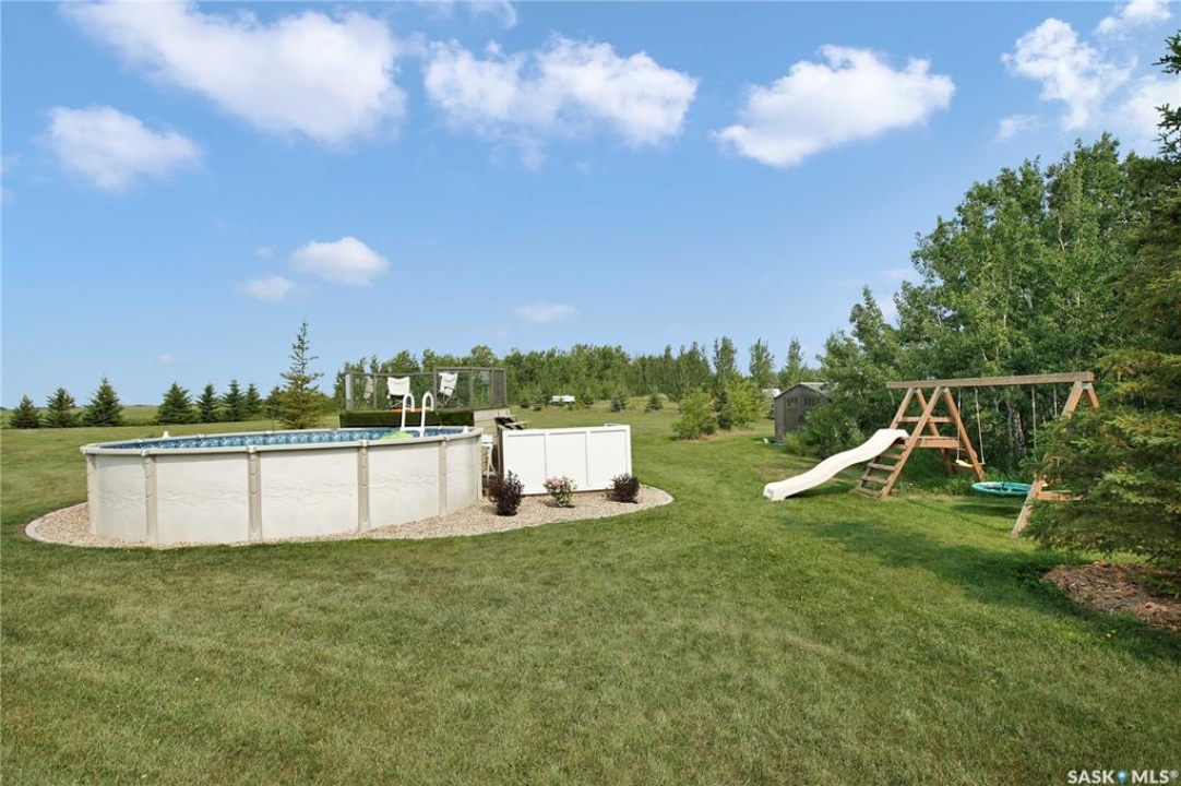 Welcome the perfect Saskatchewan paradise — an extraordinary 2-storey Westridge built home set on just over 5 beautifully landscaped acres, only 15 minutes from Saskatoon. This property offers the perfect blend of luxury, space, and outdoor lifestyle, with every detail thoughtfully designed for comfort and style. You'll be welcomed by the gorgeous East facing porch perfect for a morning coffee. Step through the grand front entrance into a bright, open interior filled with natural light. The open floor concept allows for the perfect family or entertaining setting. The kitchen's oversized island and gorgeous quartz countertop with a corner pantry make it the perfect space to cook and connect. The main floor features an office, large mudroom with laundry and a stunning primary bedroom retreat, complete with a spa-like ensuite and a spacious walk-in closet. Upstairs, you'll find three more bedrooms plus a large bonus room, offering plenty of space for family, guests and everything in between. Outside, the exquisite yard is an entertainer's paradise. Enjoy summer evenings with your very own outdoor kitchen, wood-fired pizza oven, and above-ground pool, all set against the backdrop of breathtaking Saskatchewan sunsets. A heated triple attached garage provides ample space for vehicles, toys, and tools, making this property as functional as it is beautiful.