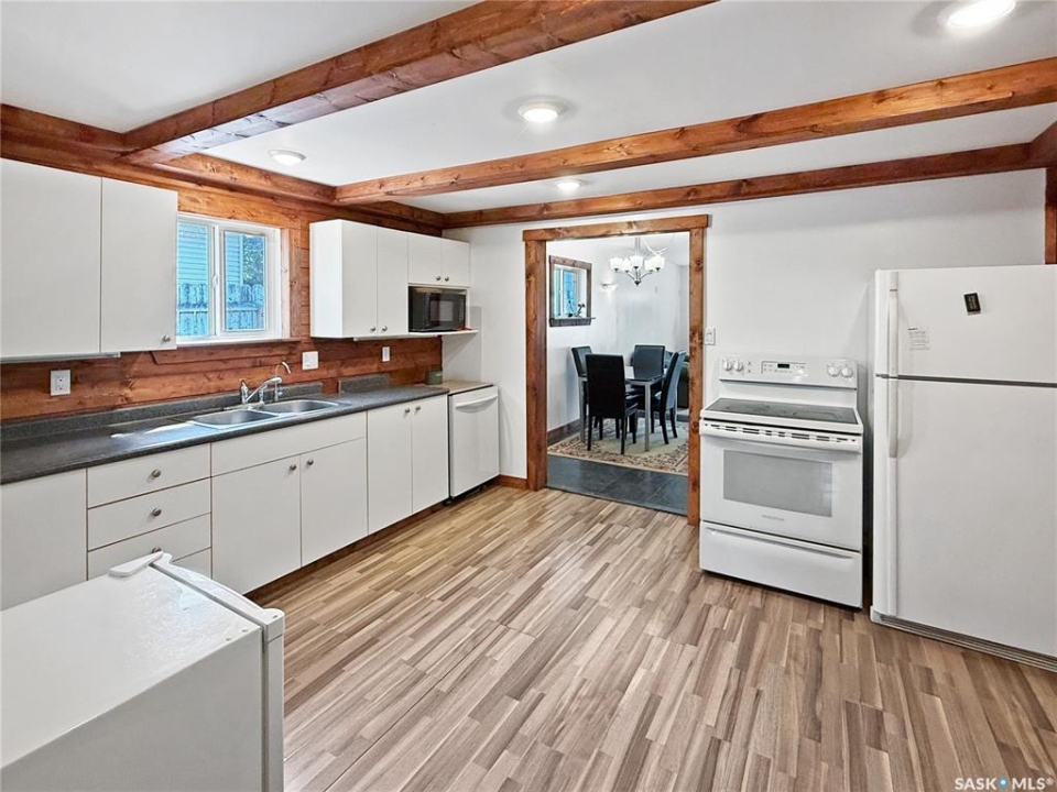 Charming, Cute, and Close to Everything! Welcome to this 936 sq ft gem in the heart of Shellbrook—where affordability meets location! This 3-bedroom bungalow features an open concept layout so you can cook, chill, and chat without missing a beat. Just steps from both schools, the skating and curling rinks, and right across from the swimming pool and Kinsmen Park—translation: the kids (and you) will never be bored again. Outside, enjoy mature trees, a large patio perfect for BBQs, a covered deck for rainy day lounging,wonderful fenced back yard, and a storage shed for your stuff PLUS oversized single detached garage. Don't wait—call your realtor before someone else jumps in the pool with this deal!