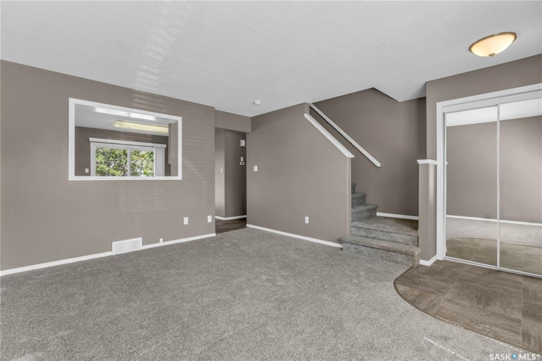 If you're looking for your first home or a great investment property in a safe and quiet east end location, look no further than 2748 Cranbourn Crescent. This beautifully refreshed 2 bedroom, 1 bathroom unit has no backyard neighbours and offers plenty of natural light throughout. You'll love the convenience of a dedicated parking stall right out front, and just steps away, a shaded pergola provides a relaxing shared green space for residents to enjoy. Inside, you're welcomed by a practical entryway with a coat closet and a cozy living room with brand new carpet and a peek-a-boo wall into the kitchen. The eat-in kitchen has been updated with all-new lino flooring, white cabinetry with brand new cabinet doors, a generous pantry/storage area, and sliding patio doors that lead out to your private, low-maintenance backyard patio - perfect for your BBQ or a quiet outdoor lounge spot. The entire unit has been fully painted and fitted with new blinds throughout, giving it a clean, refreshed feel. Head upstairs to find two spacious bedrooms, both with good-sized closets, and a 4-piece bathroom. Downstairs, the basement is open for development and offers tons of potential with space for a future rec room, a second bathroom, and laundry/storage area. Located within walking distance to both Jack Mackenzie and St. Gabriel Elementary Schools, and just a short drive to all the east end amenities, this unit is nestled in a community that feels instantly welcoming - with plenty of young families nearby and a peaceful, neighbourly vibe. Move-in ready, affordable, and full of updates - you don't want to miss this opportunity to make 2748 Cranbourn Crescent your own!