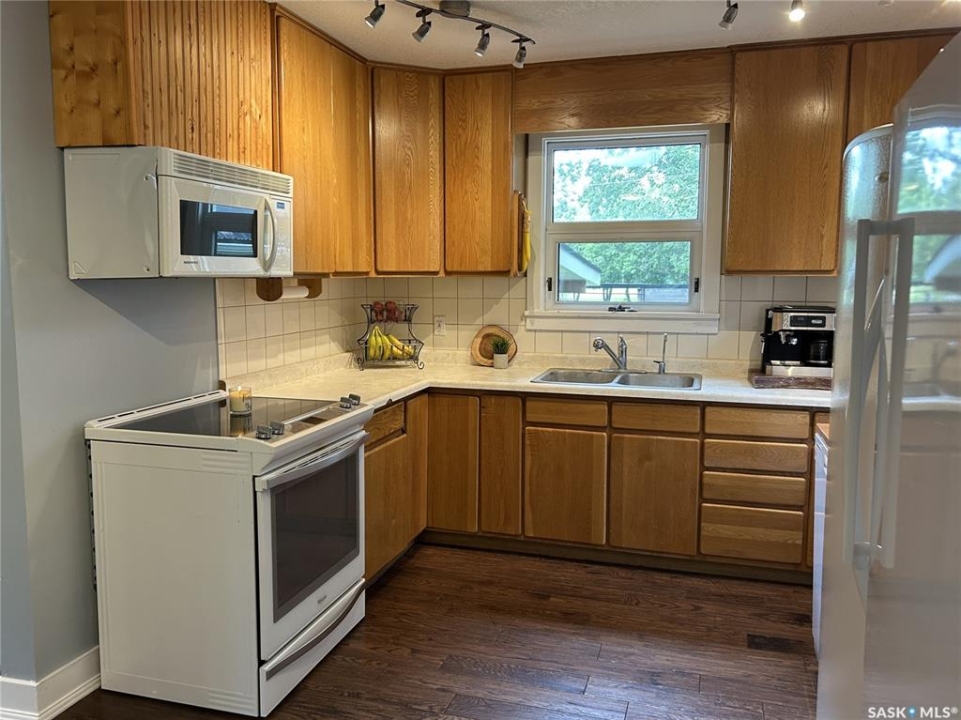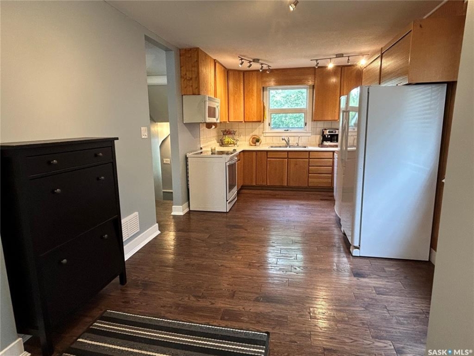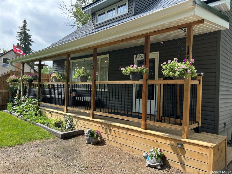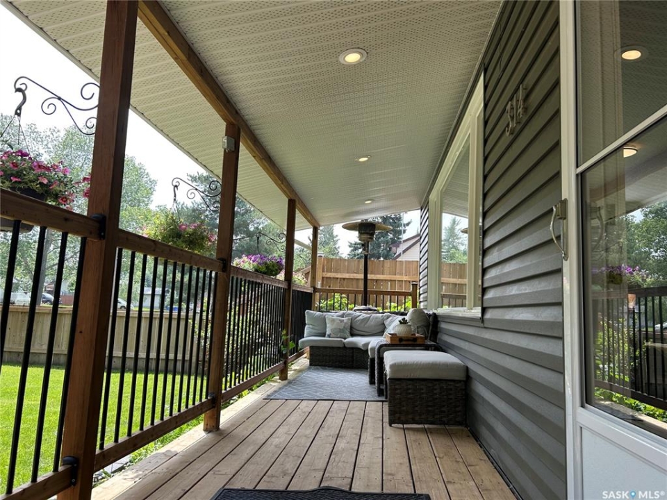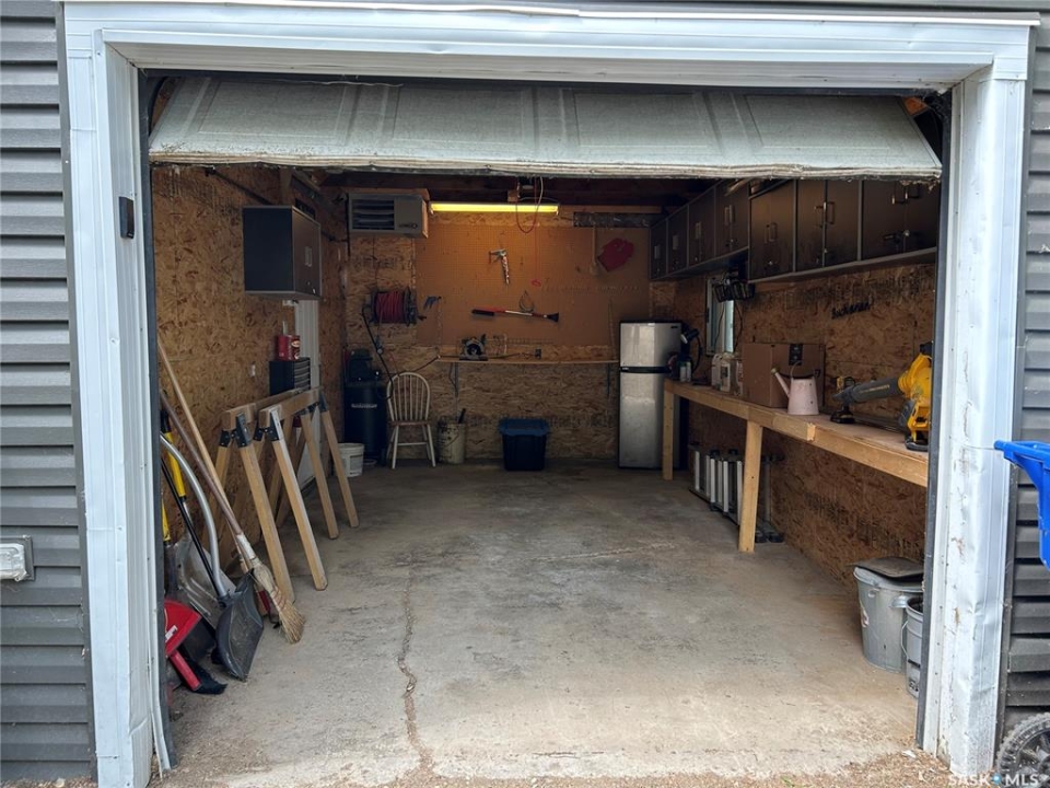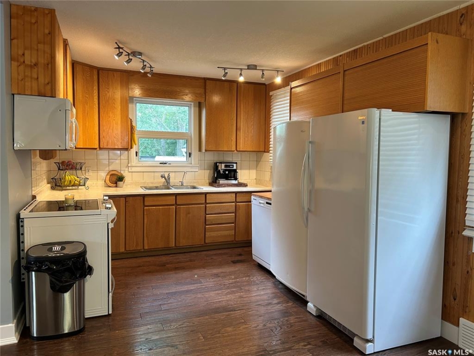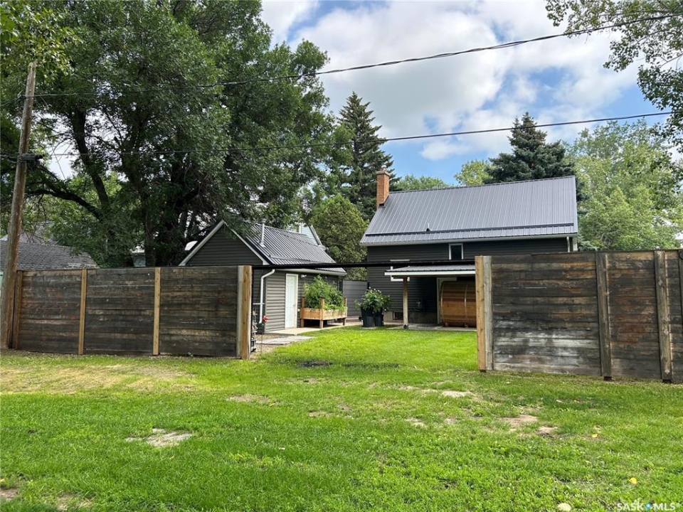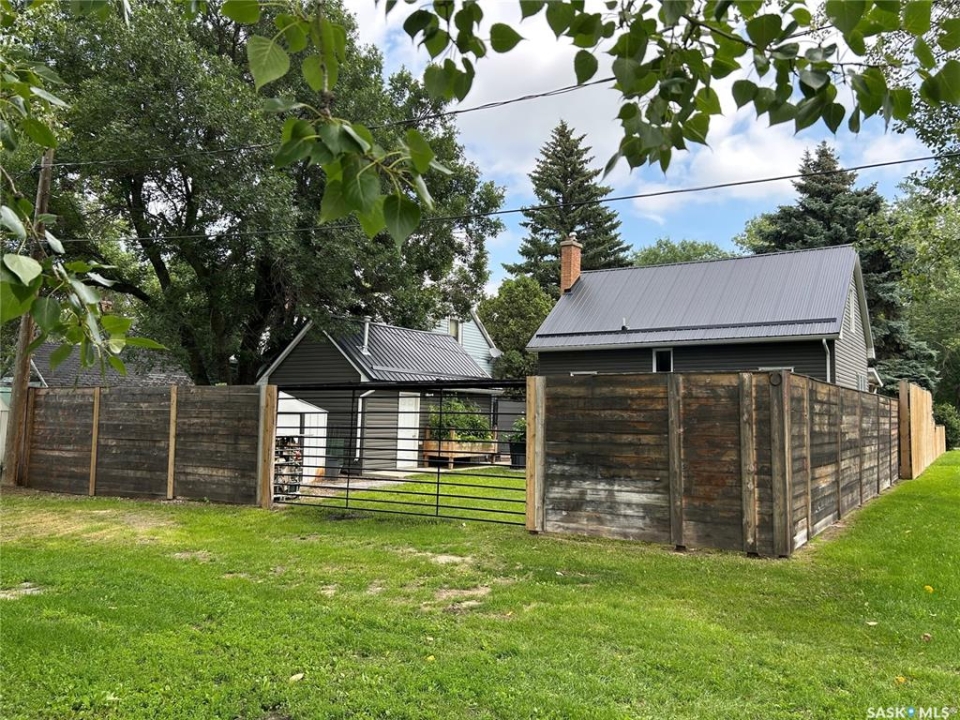 Charming Updated Home Backing Onto Park in North Portal. This beautifully maintained home is a true gem, perfectly situated on a spacious 50' x 120' lot that backs directly onto the park in the peaceful community of North Portal. With great curb appeal and a welcoming covered front deck, this property combines small-town charm with thoughtful updates throughout. Step inside to find a warm, inviting interior featuring ¾ inch oak flooring throughout most of the main and upper levels. The eat-in kitchen has oak cabinetry, a built-in microwave, portable dishwasher, full-sized fridge, and a full-sized freezer. A separate dining room offers flexibility — perfect for formal meals, a home office, or expanding the living room space. The living room is filled with natural light, thanks to large, picturesque windows that brighten the entire main floor. Upstairs, the primary bedroom easily accommodates a king-size bed with extra space for furnishings, while the second bedroom offers great size and ample storage. The bathroom has been tastefully updated, featuring heated tile flooring and a stylish tile surround that adds a vibrant touch. Downstairs, the basement currently houses the laundry and provides potential for future development — whether you need a rec room, gym, or more storage. Outdoors, you'll appreciate the lush lawn, maintained by an underground sprinkler system, and a fully fenced backyard with two steel gates for added convenience. The heated garage is a fantastic bonus, especially in the winter months. Additional inclusions are a Nest security system and a Generac generator. Located just steps from a park and moments away from the International Golf Course, this home offers both tranquility and recreation. Don't miss your chance to own this move-in-ready home in a truly special location!
