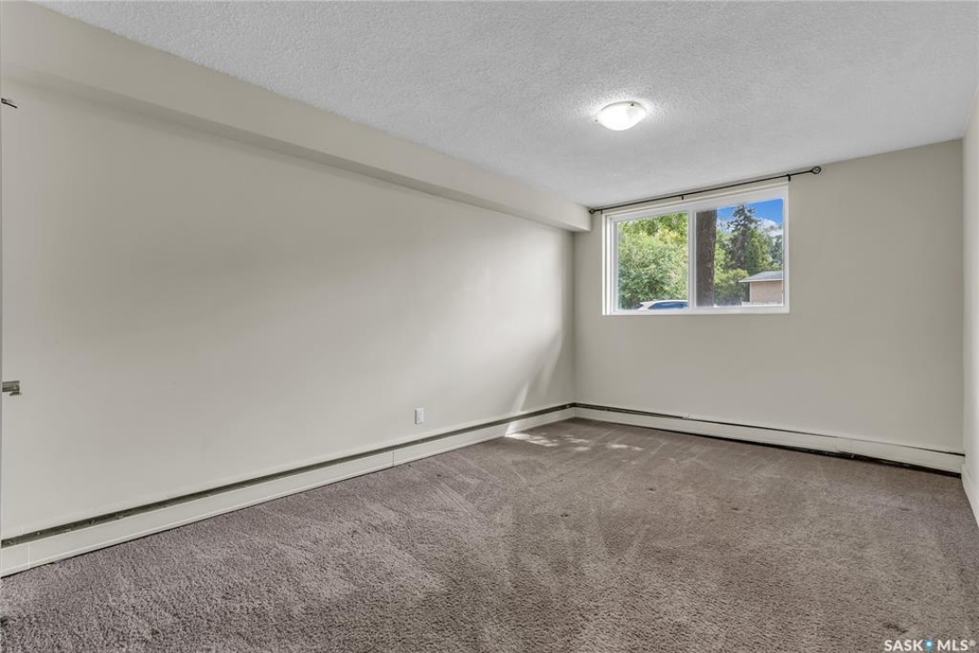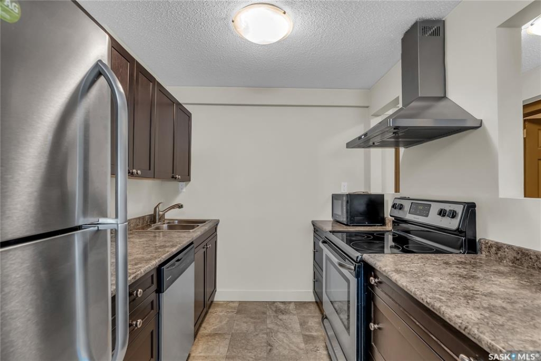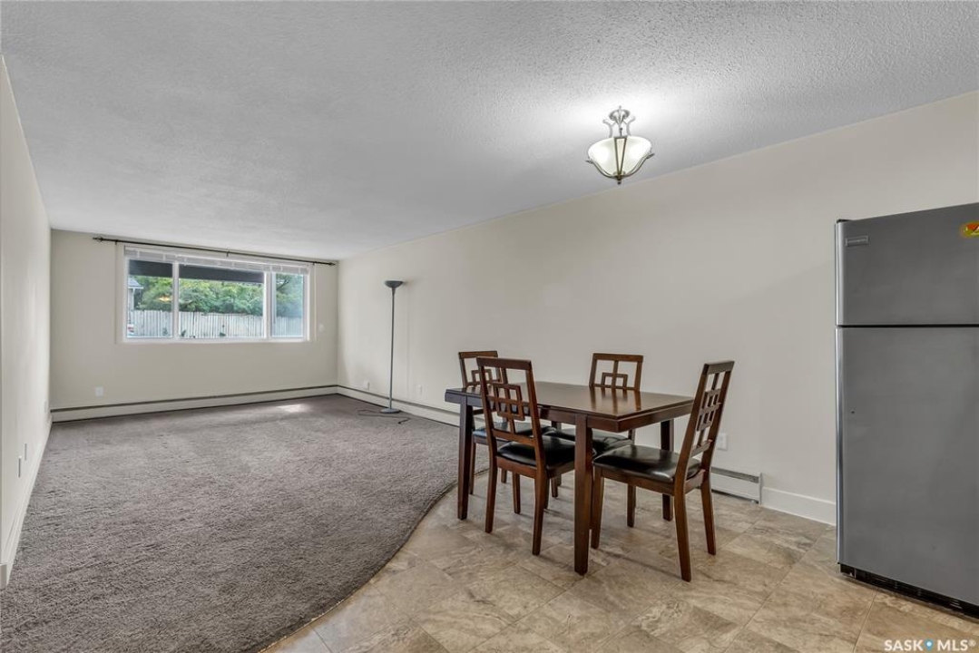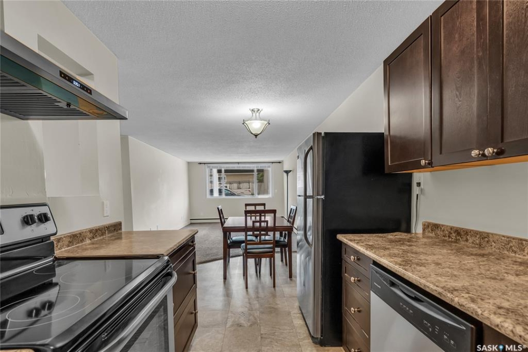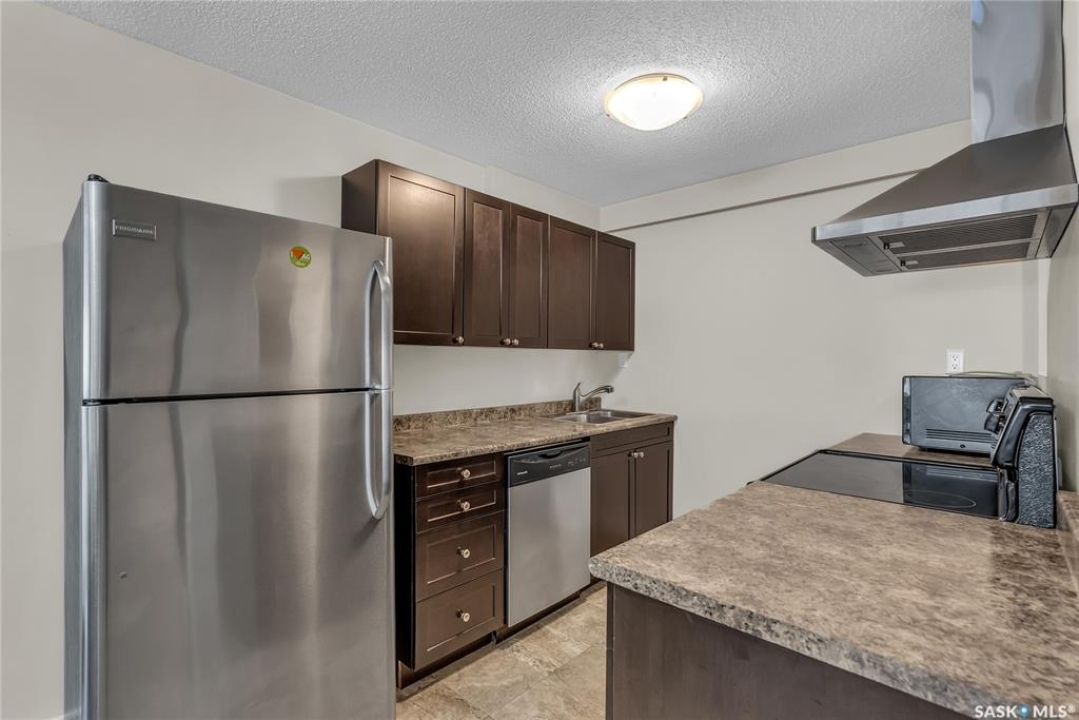 Bright Spacious Pet Friendly Condo with a Fantastic Location! This exceptionally large one bedroom condo is located in a quiet masonry building. A corner lower level unit featuring an open concept floor plan with the living room having a nice oversized window, a great kitchen with lots of upgraded cabinets, stainless steel stove, fridge, dishwasher, newer range hood fan and a spacious dining area. A huge master bedroom with a walk-in closet and in-suite laundry/storage room. This is a well-maintained building and an excellent Brevoort Park location. Direct bus to the U of S, walking distance to shopping, restaurants and close to parks, schools and all conveniences.