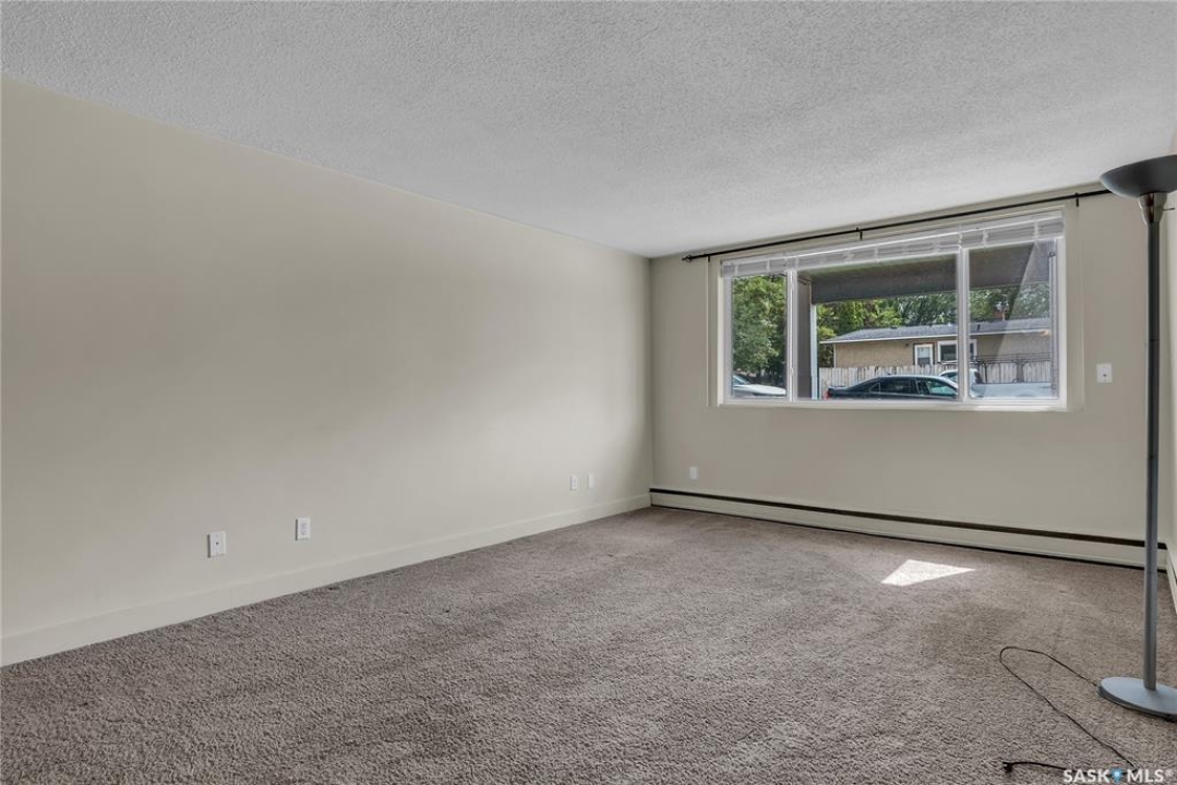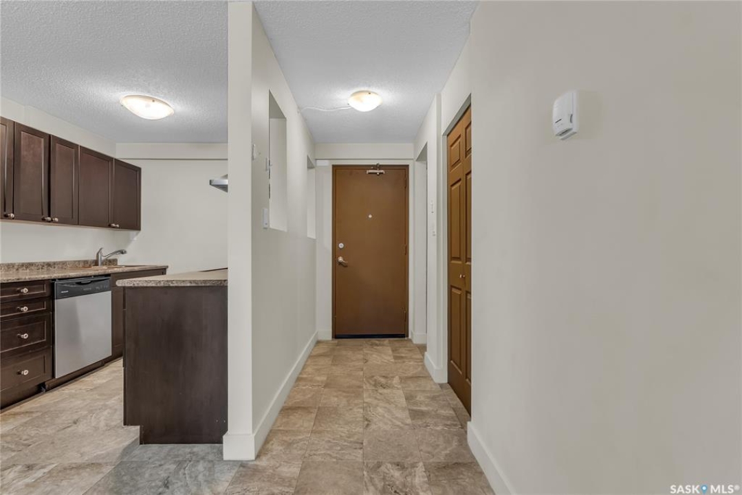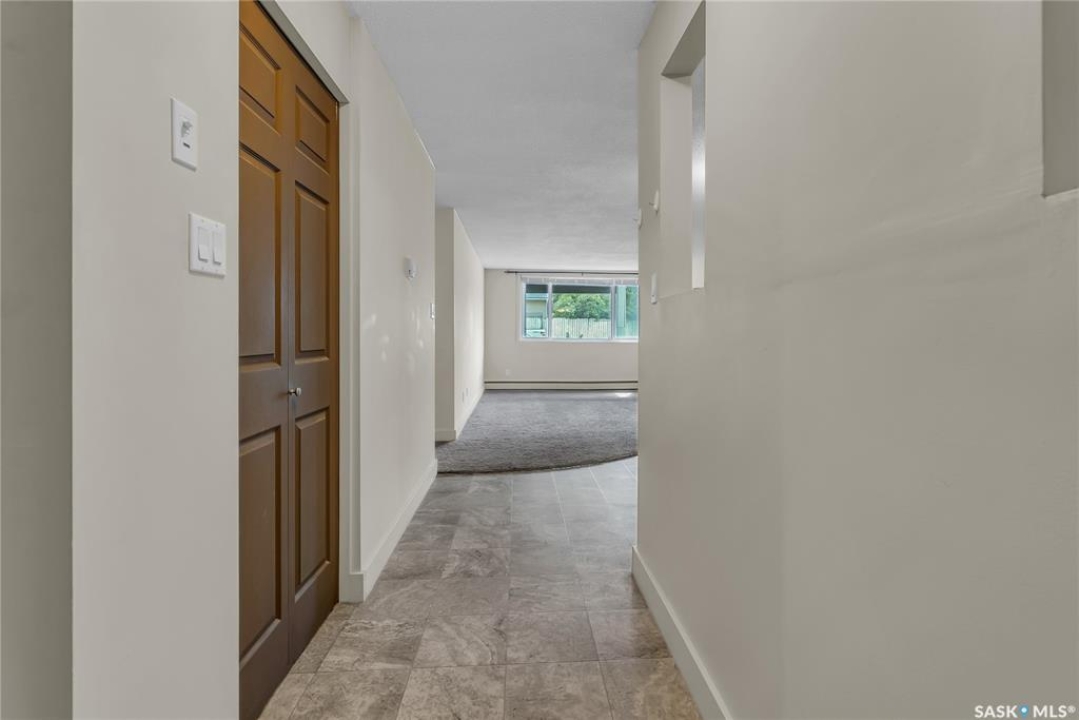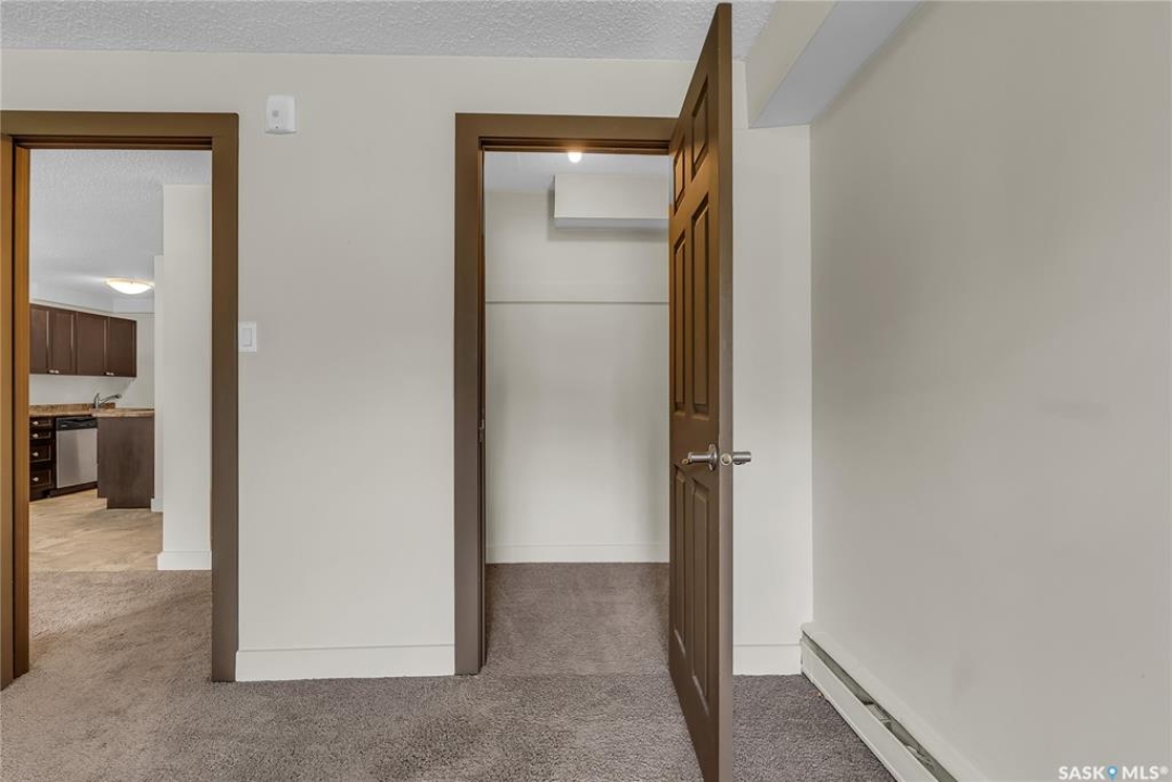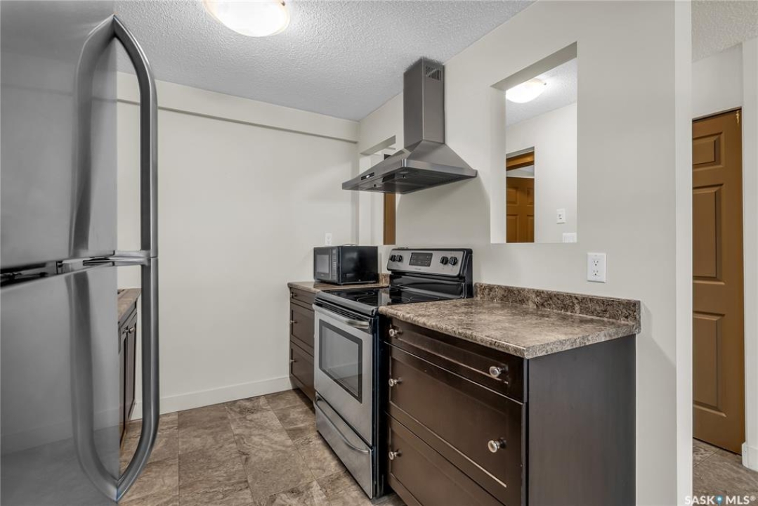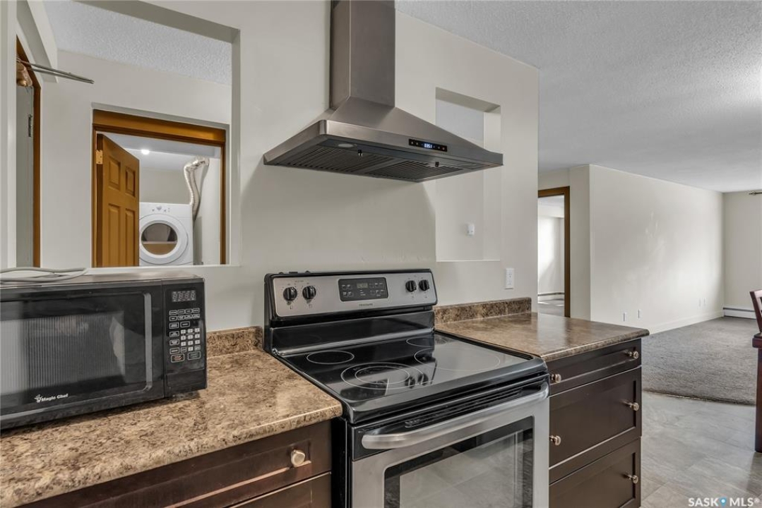 Bright Spacious Pet Friendly Condo with a Fantastic Location! This exceptionally large one bedroom condo is located in a quiet masonry building. A corner lower level unit featuring an open concept floor plan with the living room having a nice oversized window, a great kitchen with lots of upgraded cabinets, stainless steel stove, fridge, dishwasher, newer range hood fan and a spacious dining area. A huge master bedroom with a walk-in closet and in-suite laundry/storage room. This is a well-maintained building and an excellent Brevoort Park location. Direct bus to the U of S, walking distance to shopping, restaurants and close to parks, schools and all conveniences.