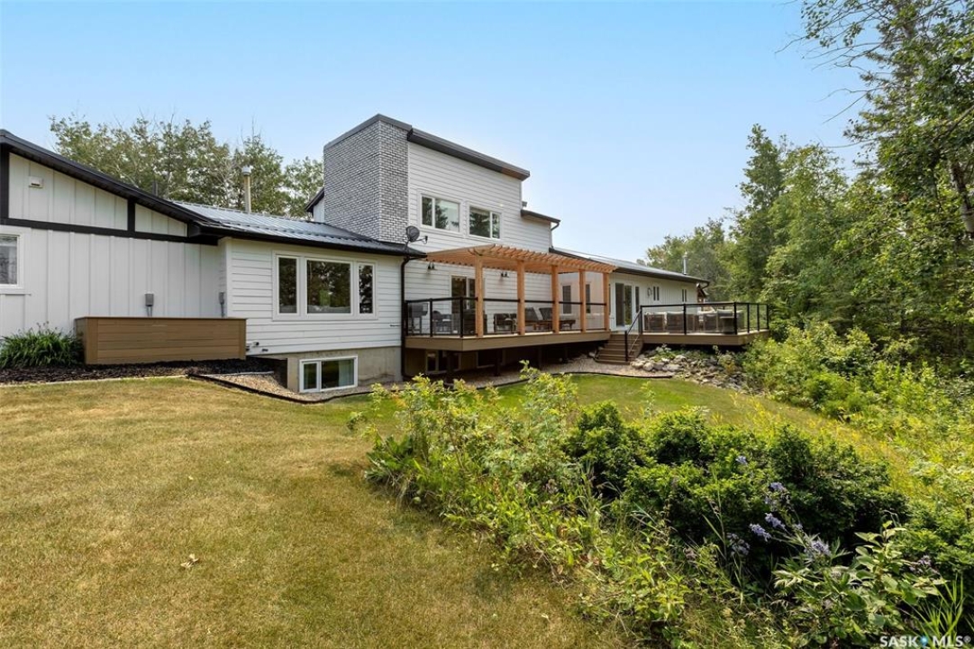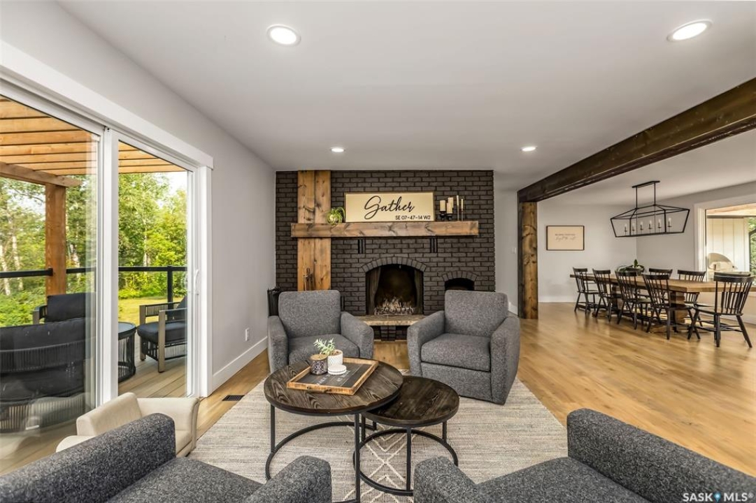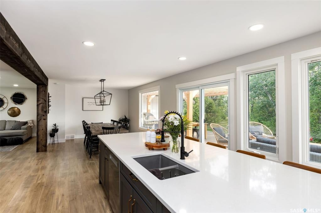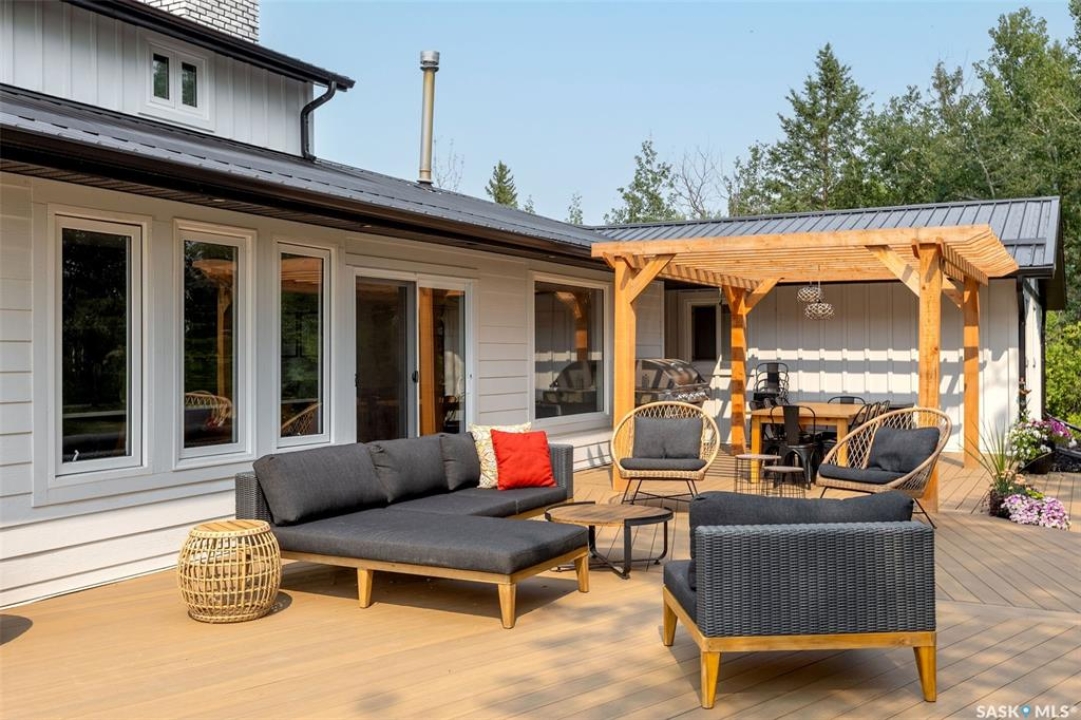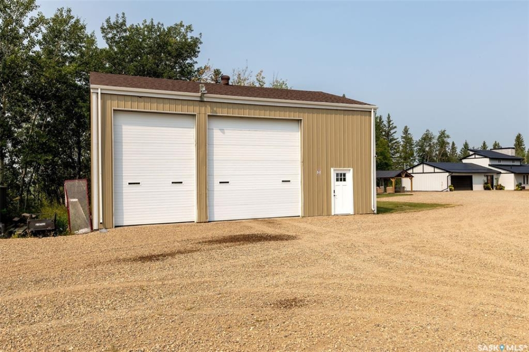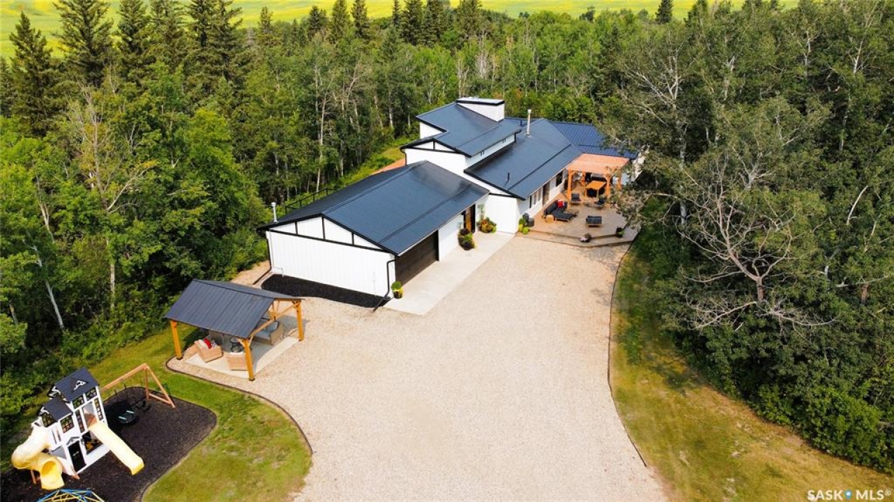 Stunning fully remodeled home on 12 acres along the scenic winding creek bed, offering modern luxury and country charm. Over 3,000 sq. ft. above grade plus a fully finished basement, this property features a gourmet kitchen with quartz counters, large island, and stainless-steel appliances, spacious dining and living areas with fireplaces, and multiple bedrooms including a luxurious primary suite with walk-in closet and ensuite. Upstairs offers a private office and gym, while the basement boasts a large rec room, second primary bedroom, guest room, and stylish bath. Outdoor living shines with expansive decks, pergola, covered lounge area, and a family-friendly yard complete with play structure. Horse fencing, mature trees, and manicured grounds surround the property. A massive shop with dual overhead doors provides ample space for vehicles, equipment, or hobbies. This turnkey acreage delivers privacy, space, and an unbeatable setting, just minutes from town amenities.