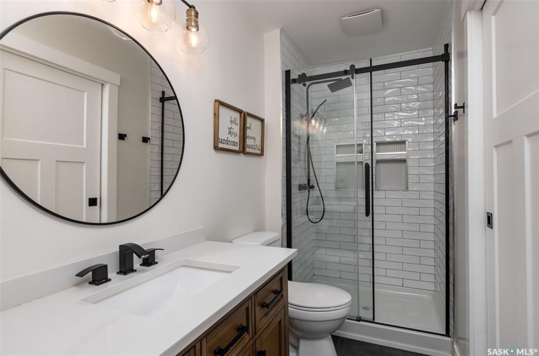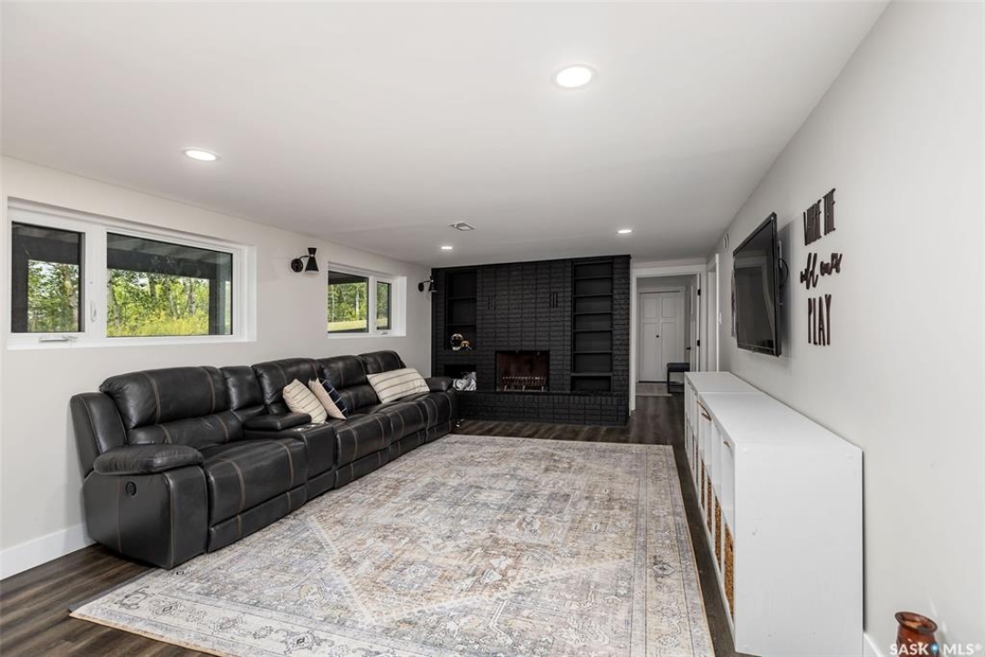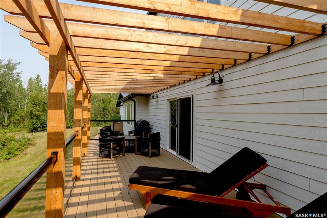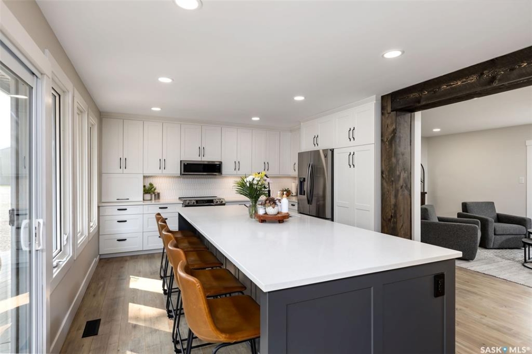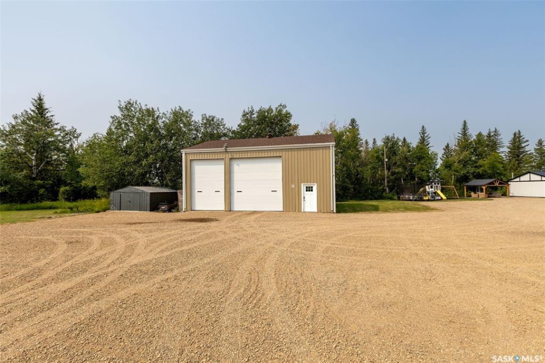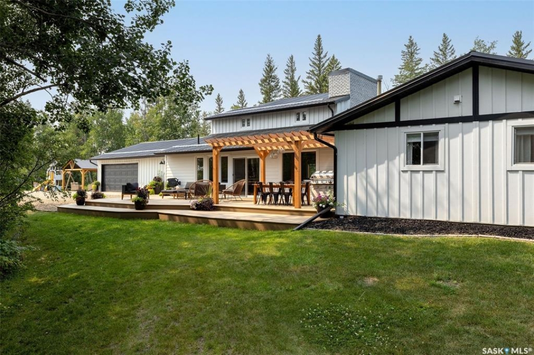 Stunning fully remodeled home on 12 acres along the scenic winding creek bed, offering modern luxury and country charm. Over 3,000 sq. ft. above grade plus a fully finished basement, this property features a gourmet kitchen with quartz counters, large island, and stainless-steel appliances, spacious dining and living areas with fireplaces, and multiple bedrooms including a luxurious primary suite with walk-in closet and ensuite. Upstairs offers a private office and gym, while the basement boasts a large rec room, second primary bedroom, guest room, and stylish bath. Outdoor living shines with expansive decks, pergola, covered lounge area, and a family-friendly yard complete with play structure. Horse fencing, mature trees, and manicured grounds surround the property. A massive shop with dual overhead doors provides ample space for vehicles, equipment, or hobbies. This turnkey acreage delivers privacy, space, and an unbeatable setting, just minutes from town amenities.