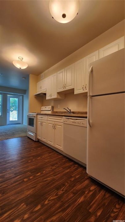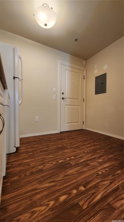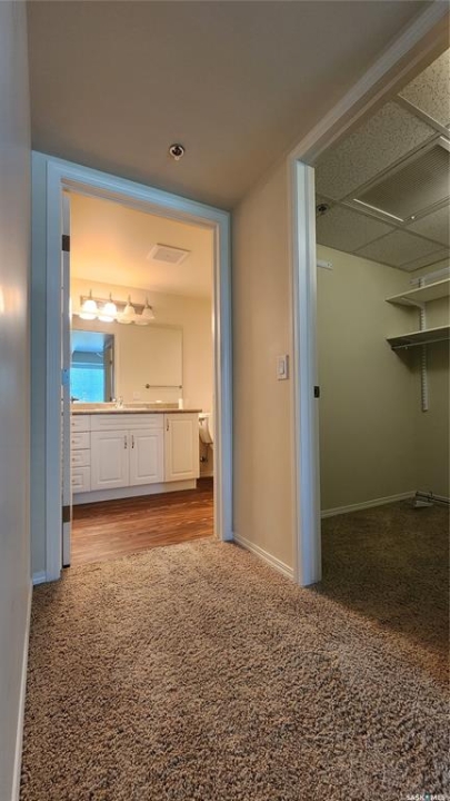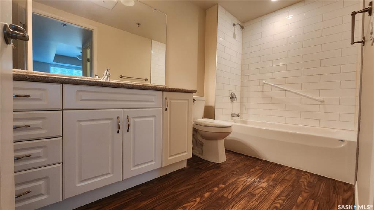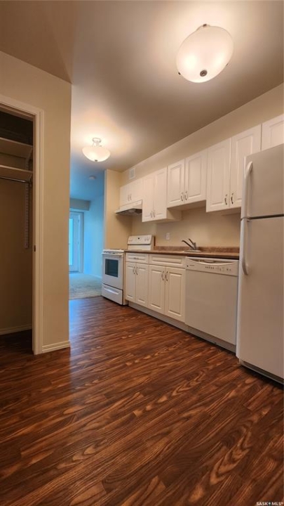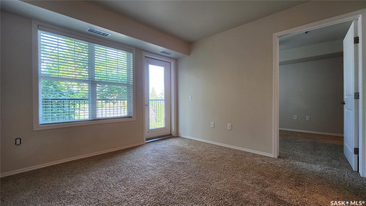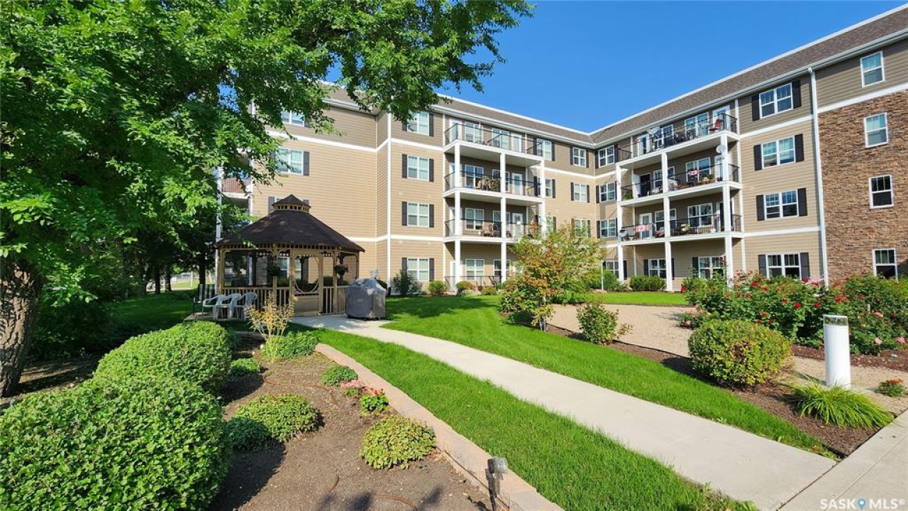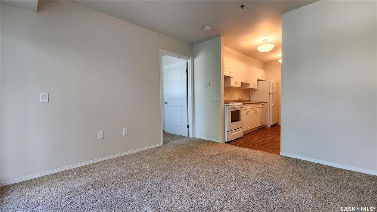 Welcome to Suite 323 at Cumberland Villas in Melville — a cozy and well-designed 473 sq. ft. 1-bed, 1 bath suite on the 3rd floor. This bright, west-facing unit features a functional galley-style kitchen with four appliances and ample counter space, flowing seamlessly into the living area. The spacious bedroom includes a large walk-in closet and a 4-piece ensuite for added comfort. Additional highlights include a convenient in-suite laundry area off the kitchen, a welcoming foyer with extra storage, and a private west-facing balcony perfect for enjoying the fresh air and sunshine. Residents of Cumberland Villas enjoy access to a range of excellent amenities, including a dining area and bistro, library, elevator, workshop, lounge, and a recreation center — all designed to support an active and engaging lifestyle. A dedicated parking space and beautifully maintained courtyard complete the offering. Condo fees are just $245/month, making this suite an attractive and affordable living option.