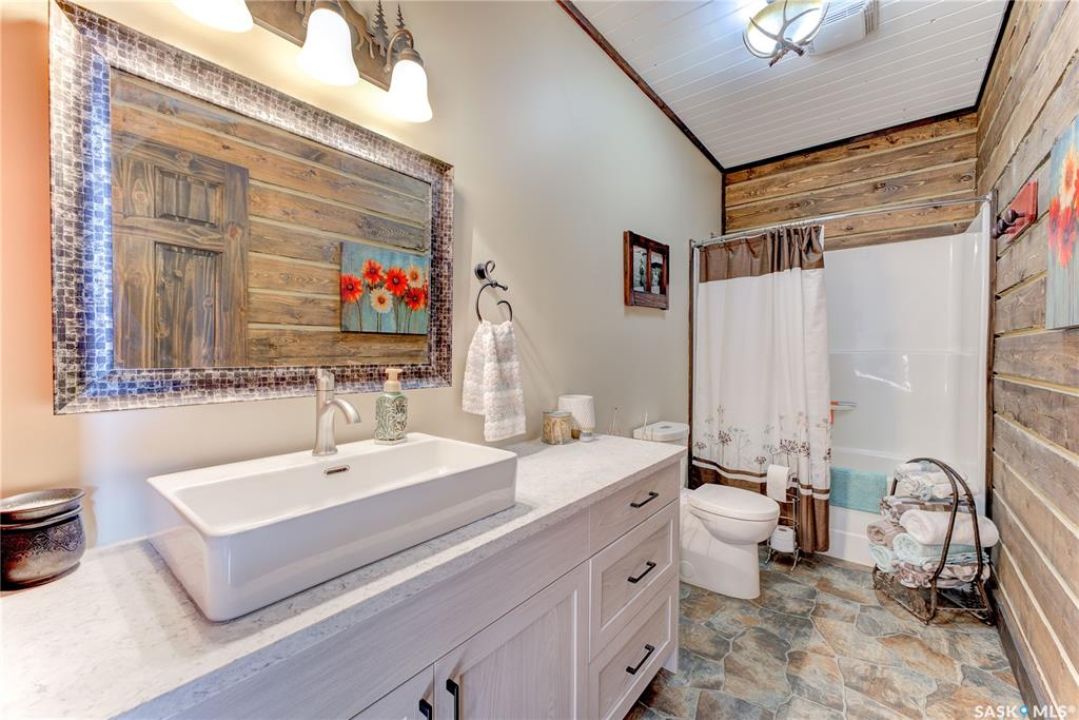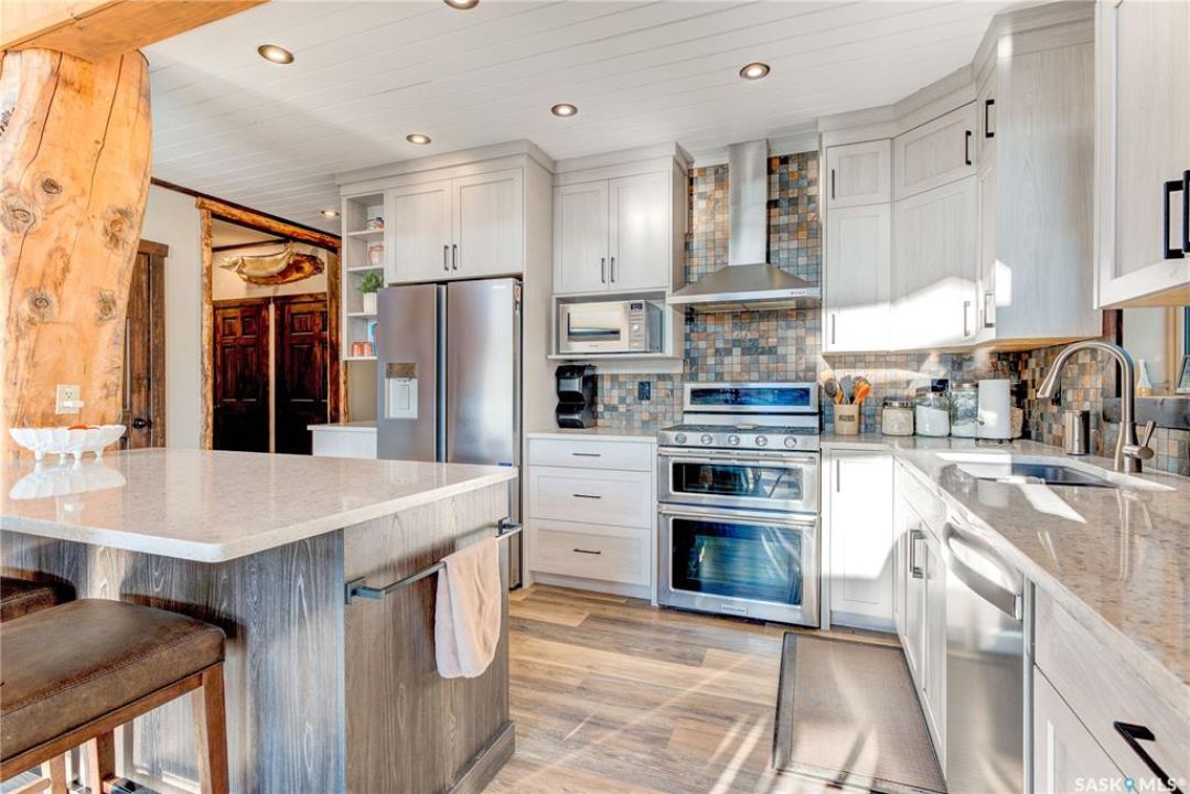 This newly renovated year round cabin is nestled in the back of a peaceful, quiet cul-de-sac. The stamped concrete 28'x12' deck comes complete with a full outdoor kitchen (fridge, sink, natural gas BBQ), 6 man hot tub with a new heater & pump, and the thoroughly enjoyable 16'x12' screened in outdoor room, with lights, electrical, and plenty of room for entertaining and card playing. The front deck is a massive 12'x34'. Inside the home there is the master bedroom on the 2nd floor, overlooking the living room/kitchen area, with its own 14'x14 living room and 8'x14' ensuite. The kitchen and bathrooms have been completely renovated with new cabinets, quartz countertops, new dishwasher, and new fridge. There is a bedroom on the main floor, a den/bedroom, and a woodburning fireplace. Both floors have in-floor heat with a new boiler system. There is a large 24'x24' heated garage, with rubberized parking pad and epoxy sealed garage floor, and a one bedroom suite, complete with full bathroom, over the top of the back of the garage. There is a boat slip that can be purchased from the sellers. To build everything this home is equipped with would easily be well over $1 million!