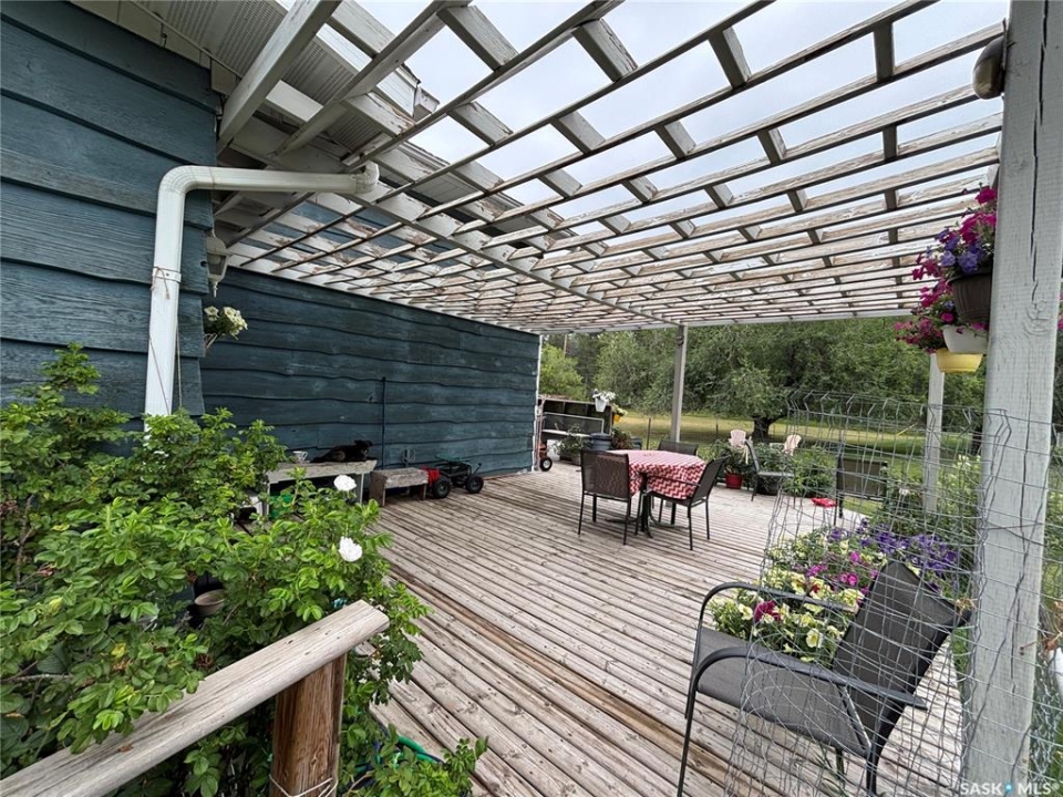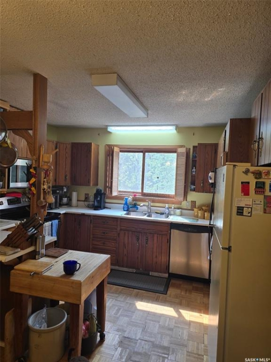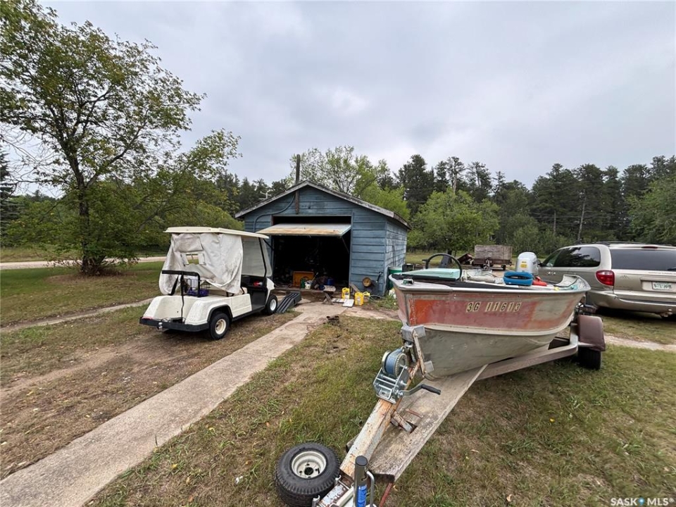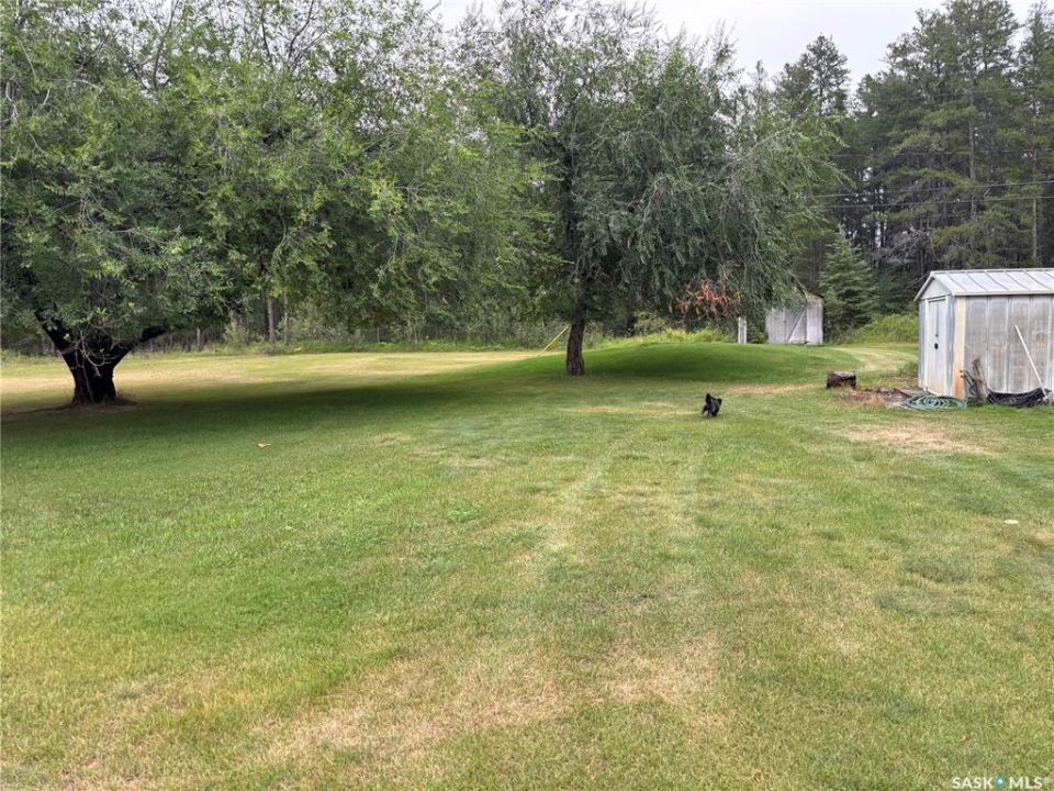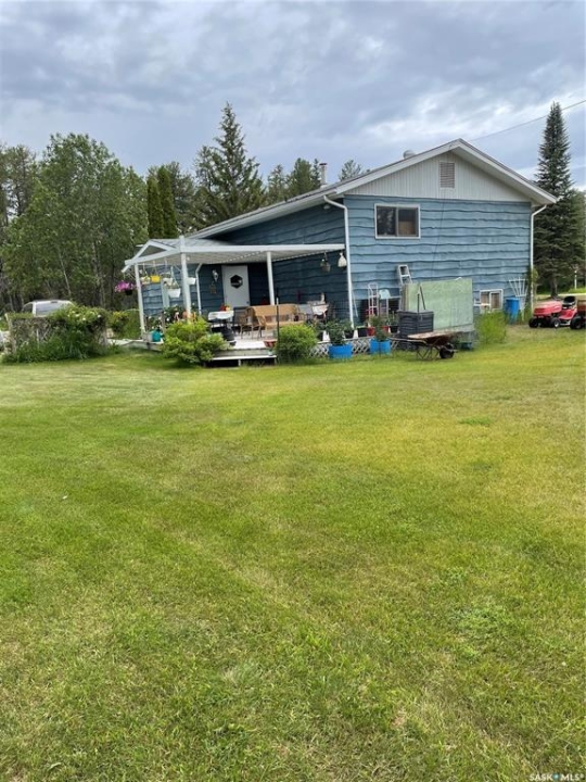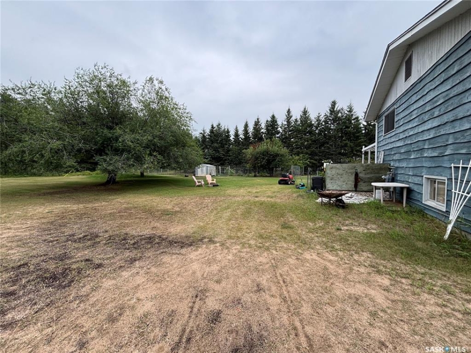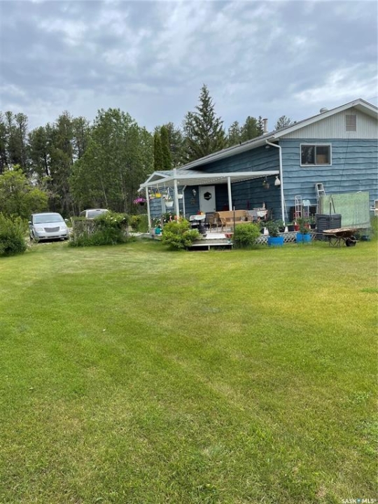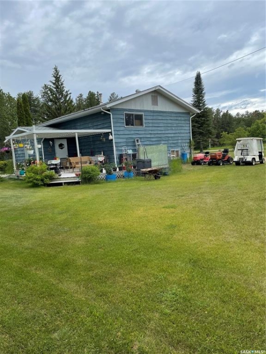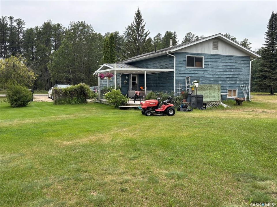 Priced to sell! Your Dream Acreage Awaits! Discover an incredible opportunity with this ideally located 1.48-acre property across from Nipawin's championship golf course in the desirable Klemmer Subdivision. This fully developed bilevel home boasts 1196 square feet of living space set amidst mature trees in a peaceful setting. Upon entering, you'll be welcomed by an abundance of natural light, the spacious foyer features 89 sqft of space. The living area offers stunning views of the property and flows seamlessly into the spacious dining area, perfect for those large family gatherings. The kitchen is designed for functionality, featuring ample cabinets and countertops, walk in pantry, to inspire your culinary adventures. The main floor includes three comfortable bedrooms, with the primary suite conveniently equipped with a walk-in closet, three-piece ensuite and a sauna, adding a touch of luxury to your daily routine. The lower level is bright, thanks to large windows, and comprises a huge family room with a cozy gas fireplace, a two-piece bath, and an additional large bedroom—ideal for guests or a growing family. Additional highlights of this property include a nice deck for outdoor relaxation overlooking back yard with mature tree line and large grass area great for entertaining and family enjoyment, large garden with tall deer fence, 2 sheds, central vacuum, a detached garage, central air, and plenty more to discover. Don't miss your chance to own this stunning property! Tractor riding mower and golf cart not included in the price and may be sold separately.