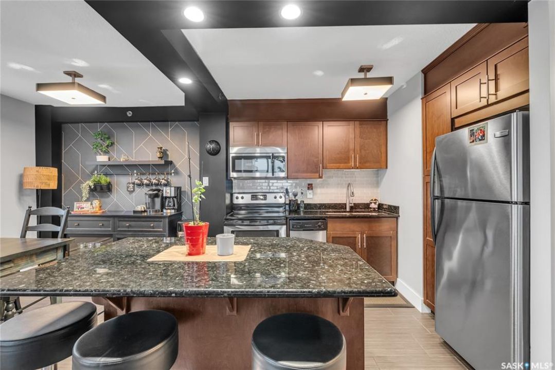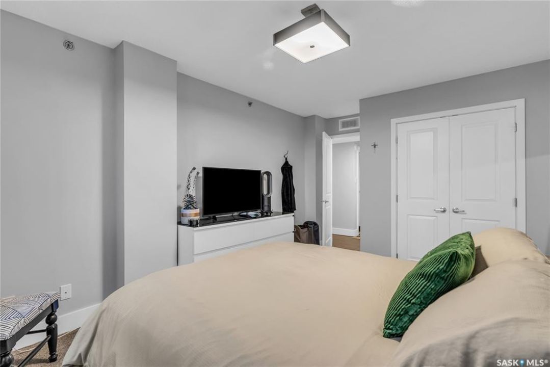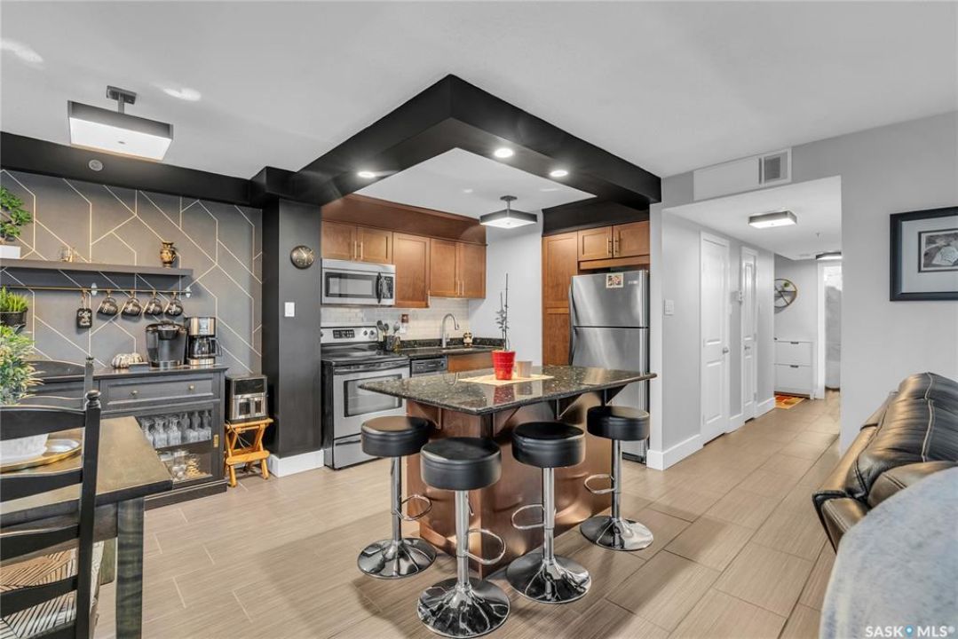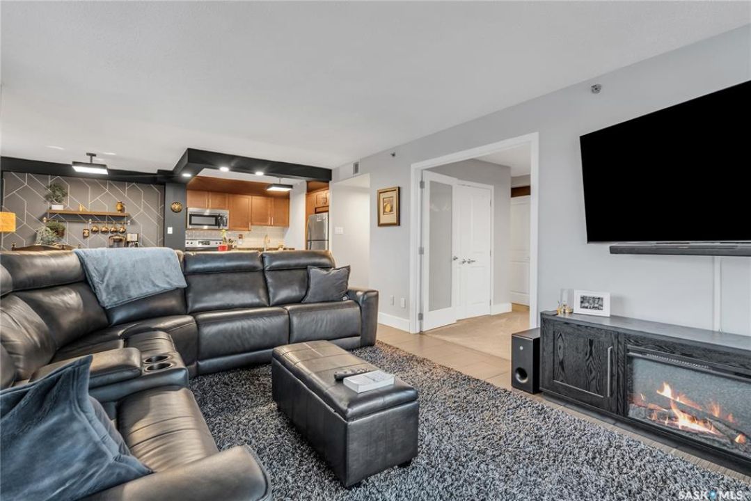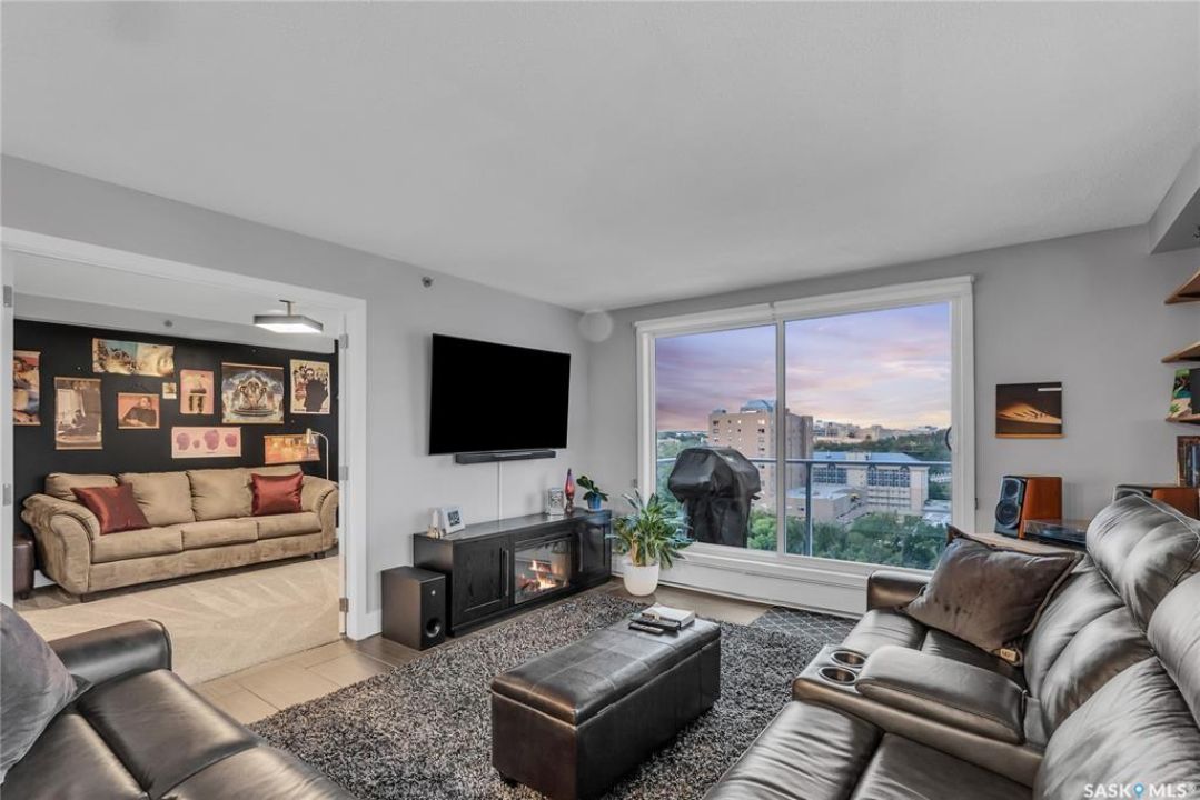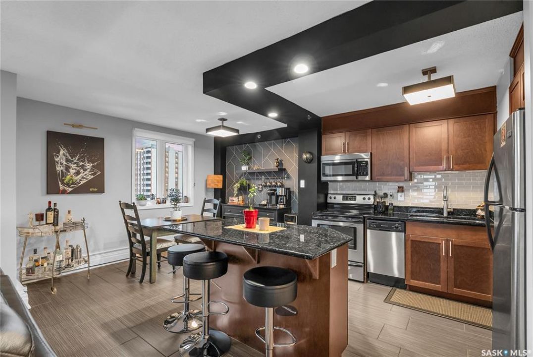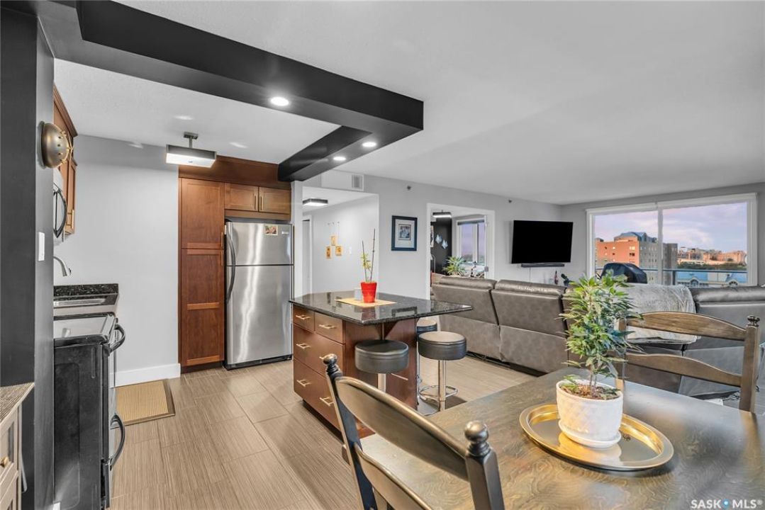 Corner Condo Unit with excellent River, Bessborough, and Saskatoon's city Skyline views from your 14th floor. Renovated Kitchen with quartz countertops & island, Stainless steel appliances included, spacious dining, open concept floor plan, 2-bedrooms, 4-piece bath & in-suite laundry. Floor-to-ceiling windows in the living room create a classy, bright corner unit with a balcony. Exclusive rooftop patio for residents, amenities and exercise room, close to downtown's best riverside paths, dining and entertainment and the UofS. Condo fees of $550/month include common area & exterior building maintenance, common insurance, heat, water, power, sewer, garbage, reserve fund, and snow removal. Don't miss your opportunity to experience some of the finest views in the city. Just listed MLS ONLY $314,900. Call your favourite realtor for a private viewing today!!! Quick Possession Available.