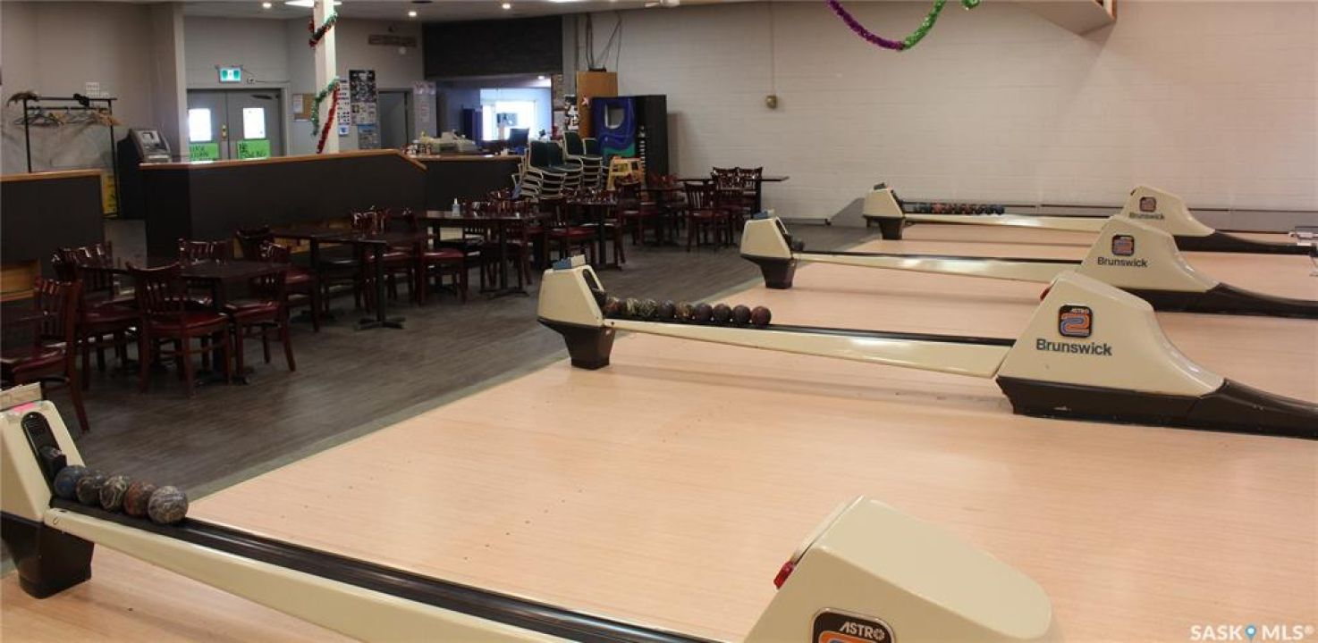 A great opportunity to own the popular Weyburn SuperBowl. Potential income streams available include bowling, cafe, licensed restaurant, and event centre. This commercial property has a prime location along HWY 35 in the heart of Weyburn. Recent renovations include new flooring on all bowling lanes, new vinyl flooring, renovated bathrooms, new lighting, and two new furnaces. There is over 9900 square feet with plenty of room for the large foyer, sitting area for spectators, a large space for hosting special events such as birthday bowling, a sizable front desk area, full L-shaped dining area, two sets of washrooms, and a kitchen. This business has been popular with local bowling leagues, sporting teams as they host their year end wind ups, and enjoyed by many community groups. This building has a solid exterior, lots of upgrades, and includes all equipment needed to operate the business.