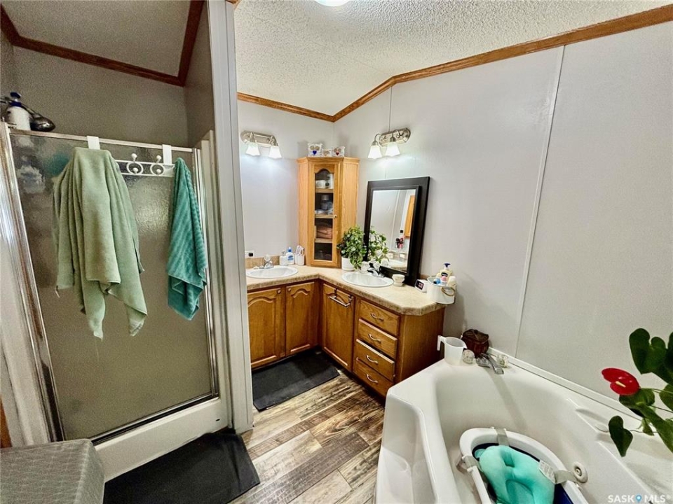 Check out this solid home in the quiet town of Kennedy. As you head inside, you are greeted by a large, open-concept living, kitchen, and dining space. Down the hall, you'll find two spacious bedrooms serviced by the 4 piece bath. At the other end of the home, past the kitchen, you'll find the laundry/mudroom and beyond that the primary bedroom, accompanied by a large 5-piece ensuite! This home sits on an owned double lot, so there are no pad rental fees. The double lot and large deck provide tons of space to spend with friends and family. Not to mention the playground right across the street! A single detached garage rounds out the exterior of this property, allowing for covered parking and extra storage space. If you're looking for a solid home in a quiet but welcoming community, then this just might be the one for you! Reach out to book your private showing today!