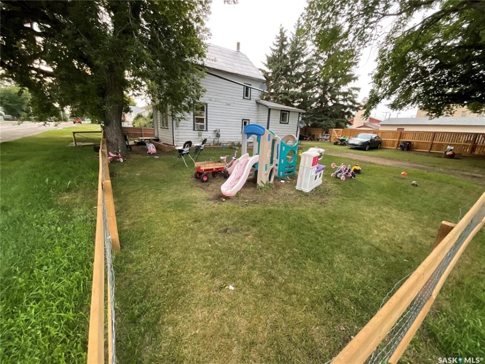 Discover a rare opportunity with this corner-lot property in Rosthern, featuring five titled lots totalling 8,320 sq. ft. (5 lots x 26' x 64'). The 895 sq. ft. two-story home offers solid bones and potential for renovation or redevelopment. Positioned on a quiet street with alley access, the expansive lot layout allows for creative builds or future subdivision. Whether you're an investor, builder, or looking for space to grow, this property checks all of the boxes. Zoned for Mixed-use with room for a garage or garden. The main floor features a practical layout with living space, kitchen, and utility area. Municipal services are in place and the home is connected to power, water, and sewer. Walking distance to downtown amenities, schools, and a short drive to the beautiful Valley Regional Park. This is your chance to own a multi-lot property in one of Saskatchewan's growing small towns.