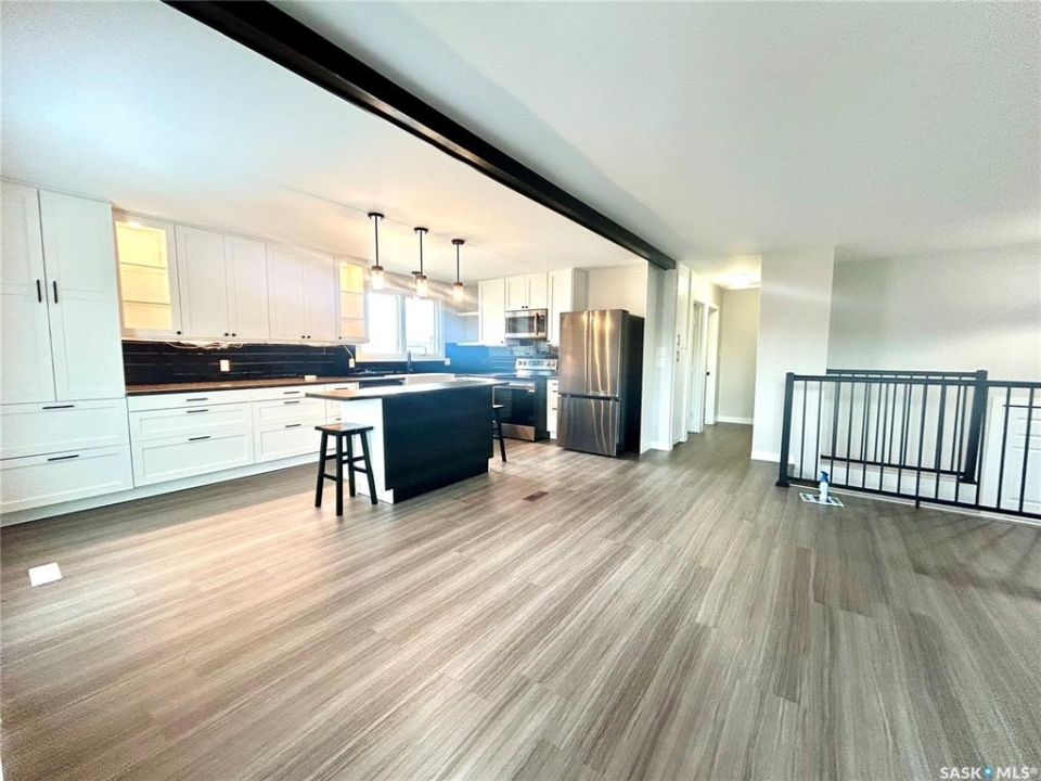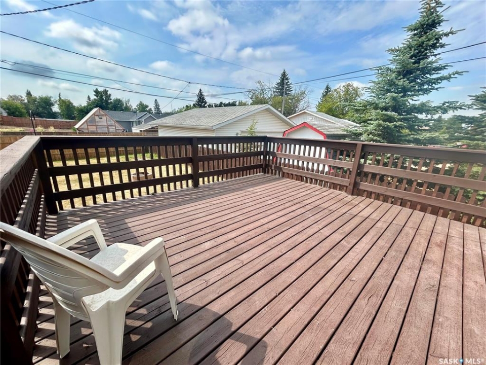 This beautifully renovated 4-bedroom, 2-bathroom home is a perfect blend of style, space, and functionality. From the moment you step inside, you'll be greeted by a bright, open living area that flows seamlessly into a spacious kitchen designed for both everyday living and entertaining. The heart of the home is the brand-new kitchen, featuring a large central island, high-end appliances, sleek cabinetry, and elegant finishes. French doors off the kitchen open onto a large deck, overlooking a fully fenced backyard—ideal for summer gatherings, kids, pets, or peaceful mornings with coffee. A rear gate provides convenient access from the back alley, perfect for bringing in vehicles, trailers, or toys. Upstairs, you'll find all-new flooring and fresh paint throughout, adding a modern yet cozy feel. The two bathrooms offer comfort and convenience for the whole family. And don't forget the massive, fully renovated garage—offering plenty of room for parking, storage, or even a workshop. Recent upgrades include a brand new kitchen with high-end appliances, new triple-pane windows for energy efficiency, all new doors, fresh paint throughout, new flooring on the upper level, new fencing with rear gate access, and a renovated garage with a new garage door. This home is truly move-in ready with nothing left to do but unpack and enjoy. Whether you're upsizing, relocating, or simply looking for a home that checks all the boxes, this one is not to be missed!