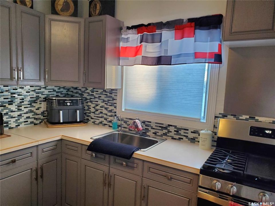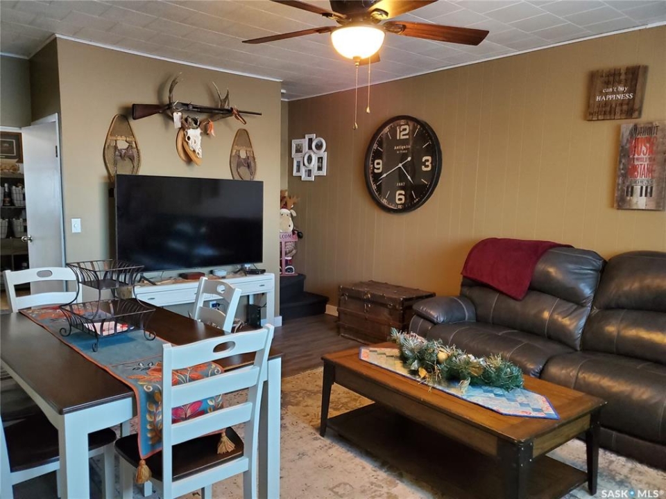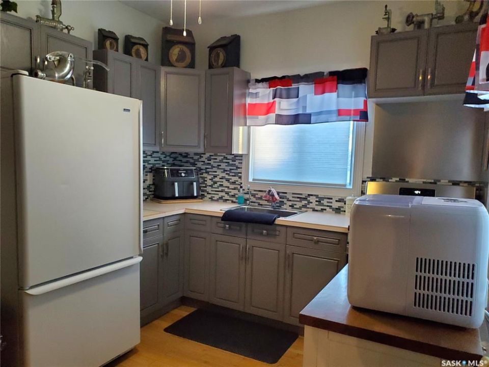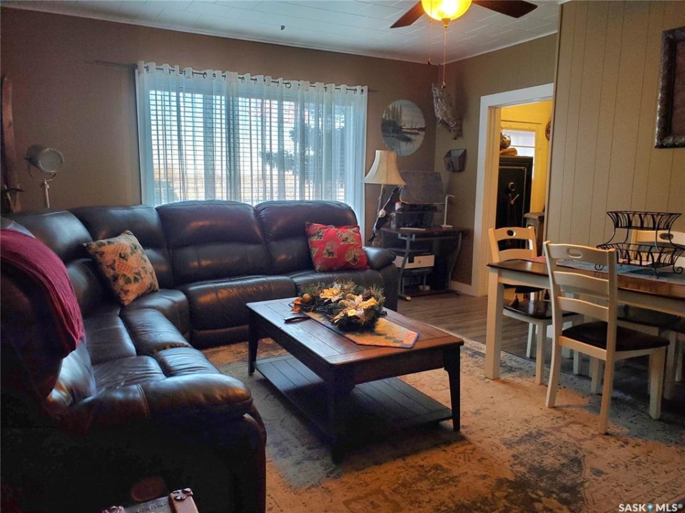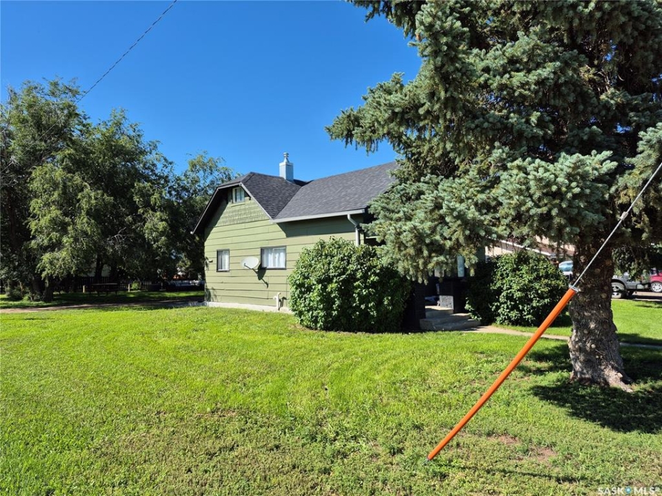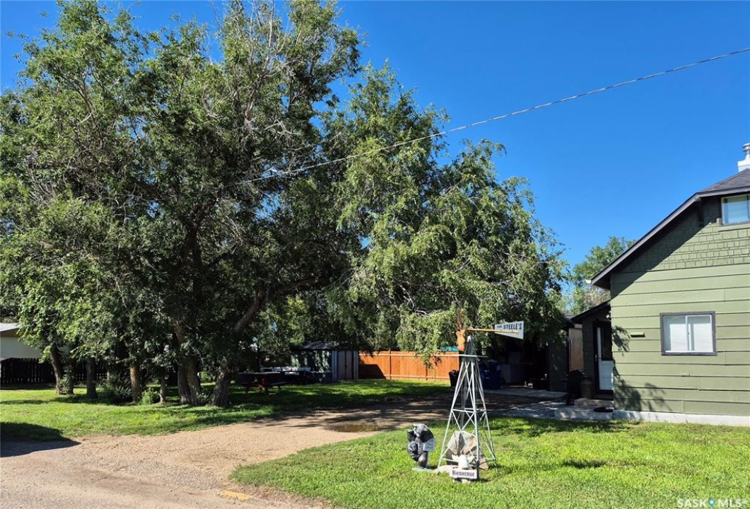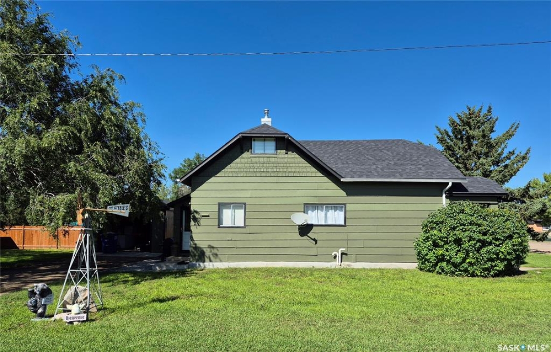 This charming home blends timeless character with the comforts of modern living. The main floor features a bright and open living and dining area, an updated kitchen with a gas stove, and the convenience of main-floor laundry. A spacious primary bedroom and a beautifully renovated 4-piece bathroom complete this level. Upstairs, you'll find two cozy bedrooms and a stylish 2-piece bathroom. The basement offers a clean, open space perfect for extra storage. Step outside to enjoy the expansive backyard, complete with a garden area, fully insulated detached garage, private driveway, and thoughtful extras — the PATIO FURNITURE, SAUNA, PIT BOSS SMOKER, QUEEN BED, COFFEE TABLE and RUG as well as the GORGEOUS LEATHER SECTIONAL are all included! This move-in ready home has seen numerous major updates over the past two years including new shingles, furnace, water heater (August 2025), water softener, reverse osmosis system, fresh paint, and flooring. Located just across the street from the K–12 school in Ponteix, this home offers incredible value and convenience.