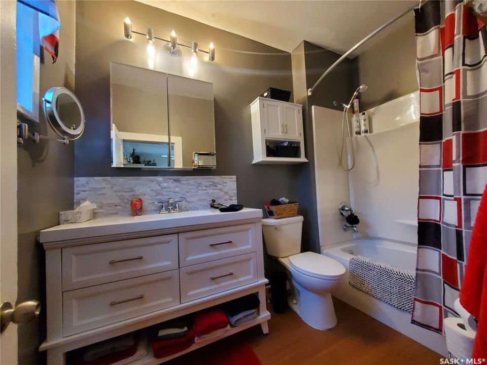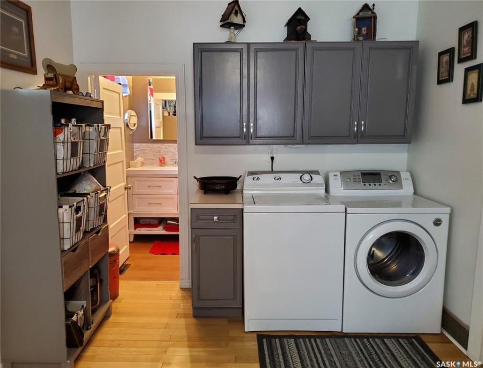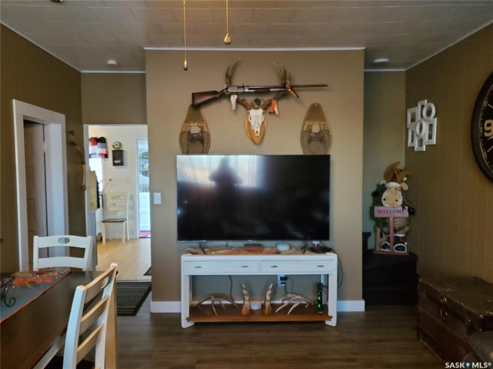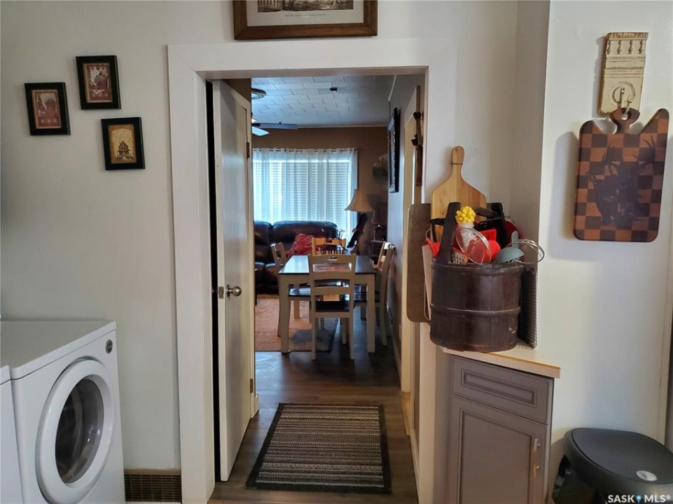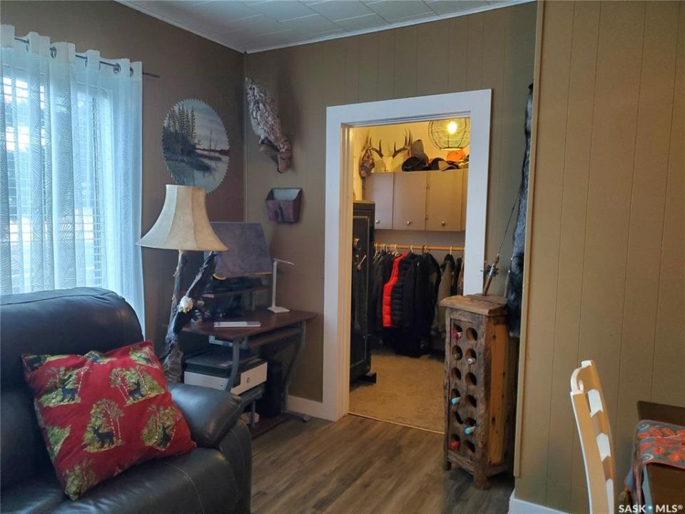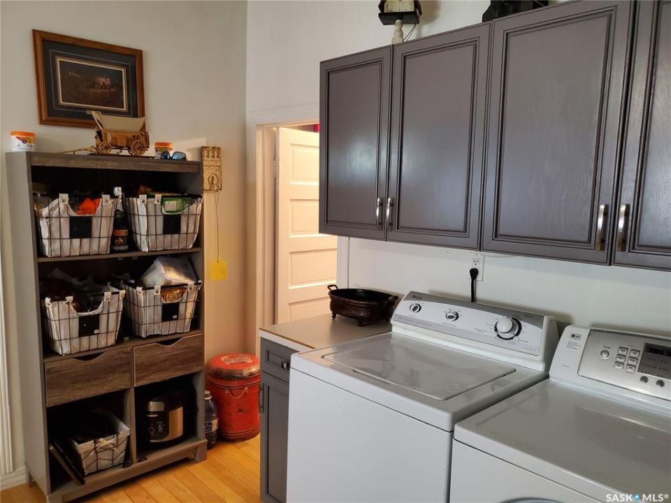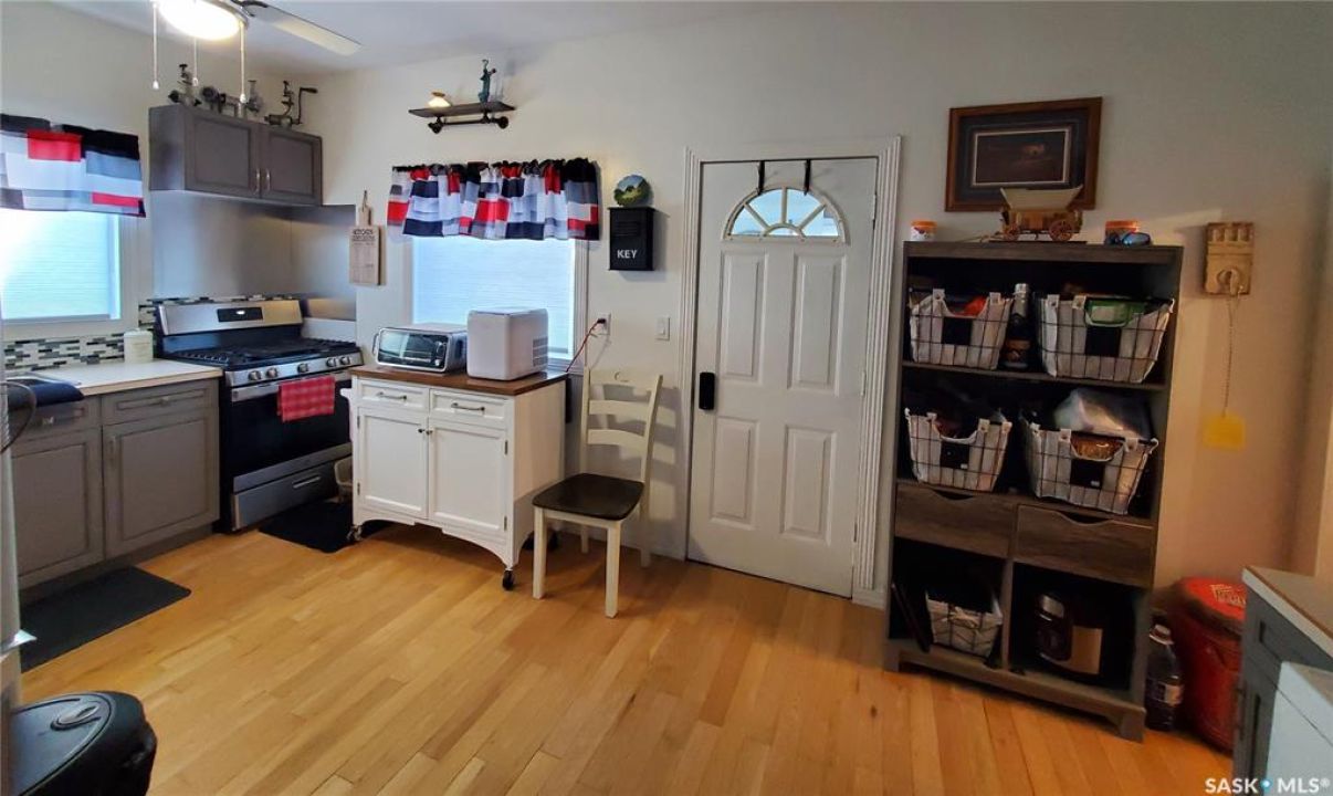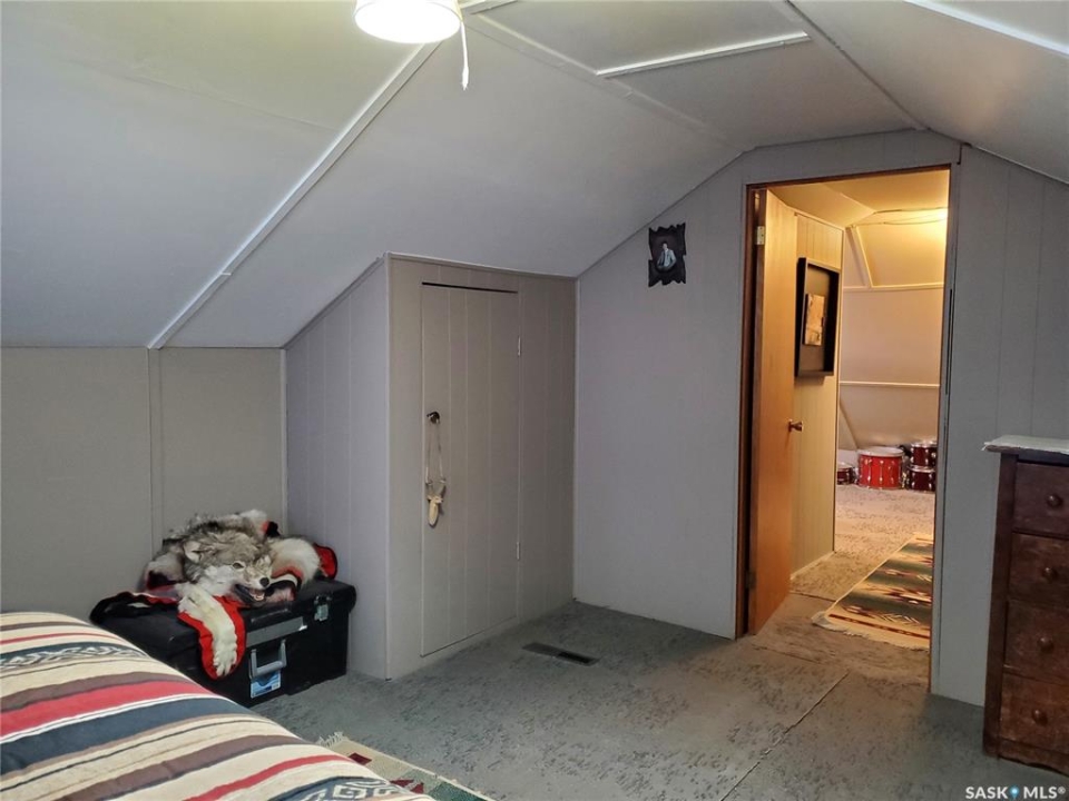 This charming home blends timeless character with the comforts of modern living. The main floor features a bright and open living and dining area, an updated kitchen with a gas stove, and the convenience of main-floor laundry. A spacious primary bedroom and a beautifully renovated 4-piece bathroom complete this level. Upstairs, you'll find two cozy bedrooms and a stylish 2-piece bathroom. The basement offers a clean, open space perfect for extra storage. Step outside to enjoy the expansive backyard, complete with a garden area, fully insulated detached garage, private driveway, and thoughtful extras — the PATIO FURNITURE, SAUNA, PIT BOSS SMOKER, QUEEN BED, COFFEE TABLE and RUG as well as the GORGEOUS LEATHER SECTIONAL are all included! This move-in ready home has seen numerous major updates over the past two years including new shingles, furnace, water heater (August 2025), water softener, reverse osmosis system, fresh paint, and flooring. Located just across the street from the K–12 school in Ponteix, this home offers incredible value and convenience.