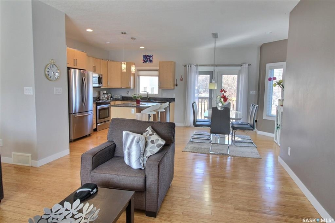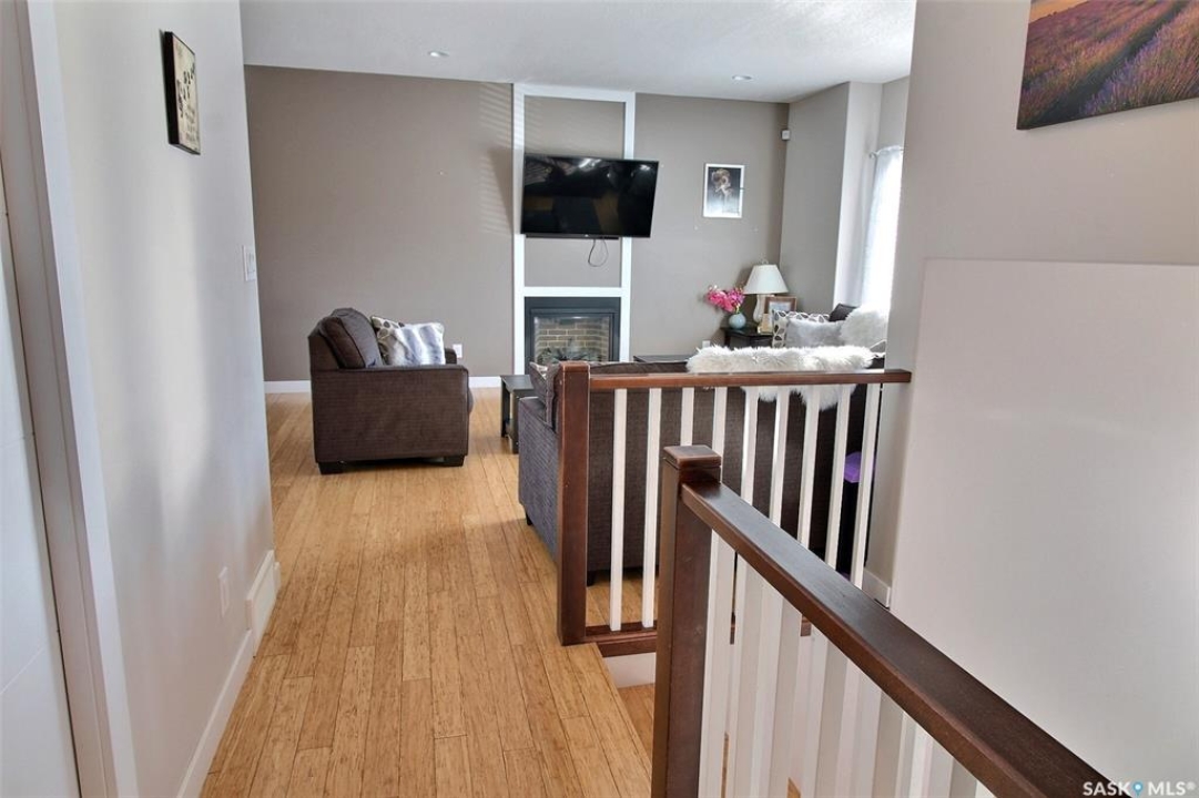 This charming 4-bedroom, 3-bathroom bi-level home is tucked away in a quiet East Flat cul-de-sac. Spanning 1336 square feet, it boasts a heated double garage with direct foyer access. The master bedroom features a walk-in closet, a luxurious 5-piece ensuite, and access to the upper deck. Cozy gas fireplaces enhance both levels. The main floor, adorned with Bamboo hardwood, is ideal for entertaining, offering a stylish kitchen with an island, dining area, and a seamless living room. Step out onto the east-facing covered deck with an NG BBQ hookup. The basement provides extra entertainment space with rock cladded gas fireplace, a wine fridge, cabinets, and counter area. Outside, you'll find a covered ground-level deck, two storage sheds, and a backyard garden. The home also includes central air and an air exchanger for ultimate comfort. Book your private viewing now!