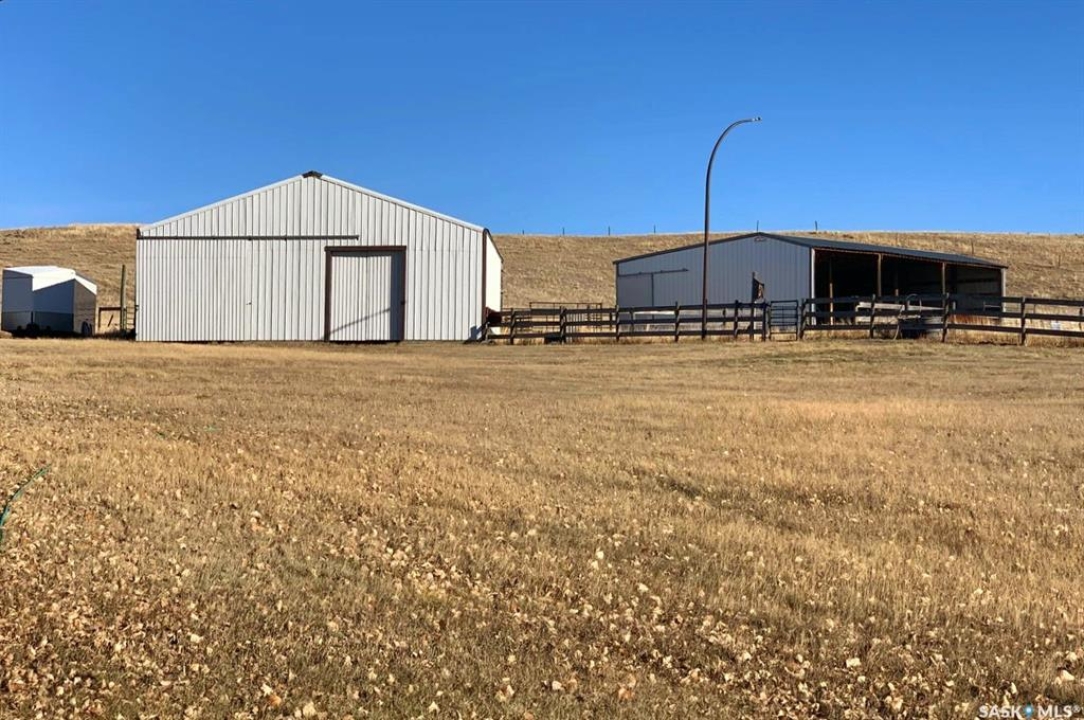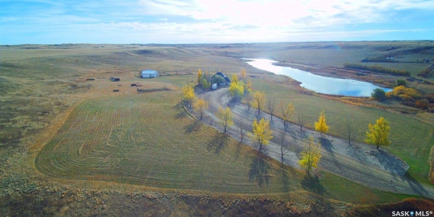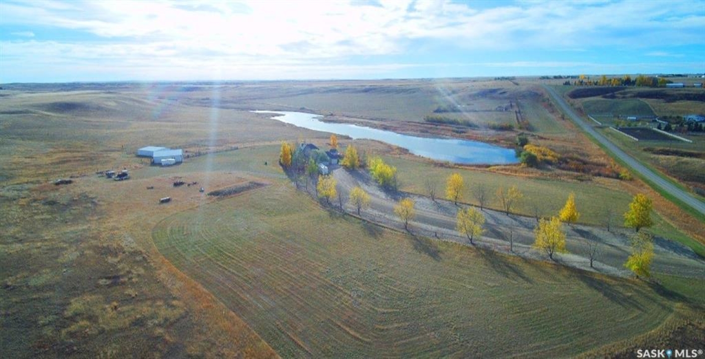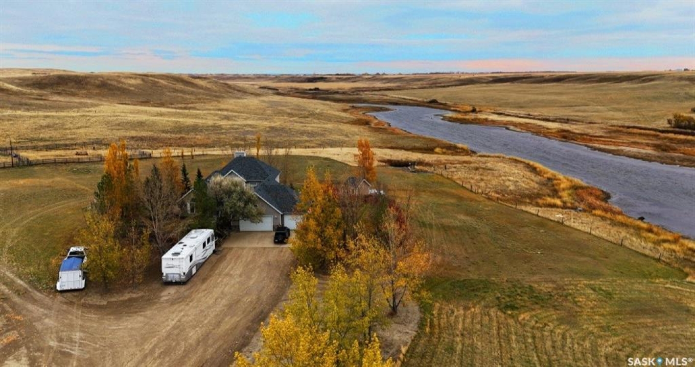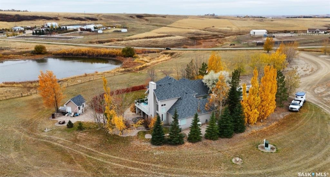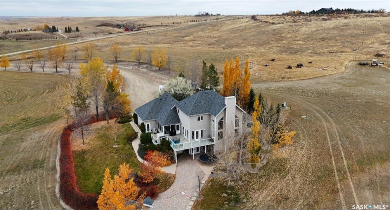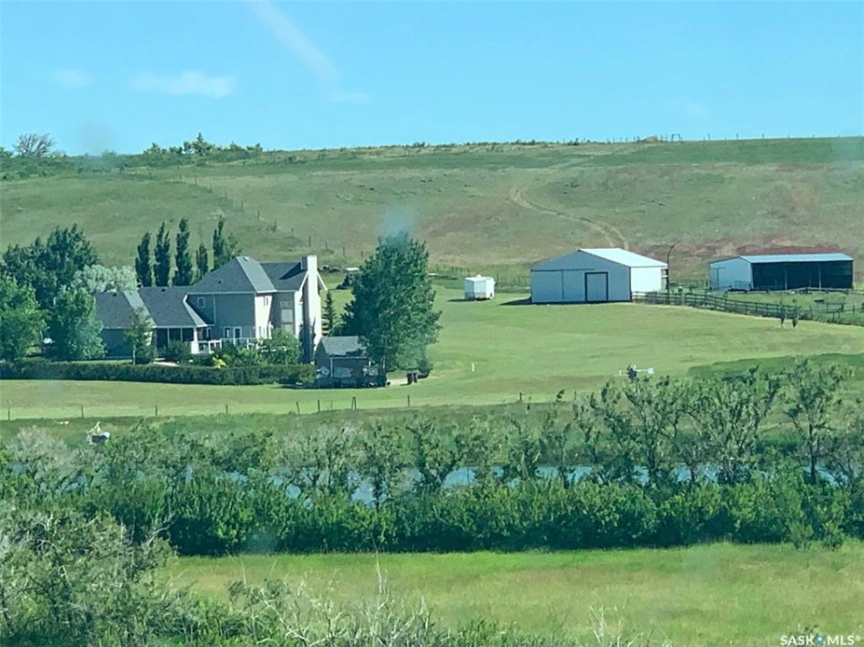 Situated on a picturesque landscape with prairie & water views, along with approximately 70 acres of land, exists this wonderful opportunity to own this established hobby farm, complete with a 2001 custom built executive style home with an attached triple garage, a 32x42 cattle shelter and a 38x40 metal clad shop w/storage shed. Located approximately 10 minutes from the city in a quiet valley with a mature & landscaped yard, this 2,135 sf two storey residence features 24' ceilings in the great room with a gas fireplace, an abundance of windows allowing for the sun & views to enter, maple hardwood flooring, along with a dream kitchen to cook & entertain in! There are main floor office & laundry rooms, where the office could also be utilized as a formal dining room. The large primary suite is cleverly placed on the main floor, accompanied by a sizeable ensuite containing a walk-in shower & closet, along with a soaker bathtub, capturing your prairie views! Ascending up the grand staircase you will find an additional two bedrooms (one of them containing a walk-in closet) and a sizeable 4-pc washroom. The walk-out basement is a dream with a dedicated media area with a second gas fireplace, a games room area and your very own wine tasting room! In addition, the basement also houses a 4th bedroom, another 4-pc washroom, as well as storage & utility rooms. Approximately 2/3 of the basement contains in-floor heat. This beautiful home also provides a 12x14 screened in porch, a large back deck to capture your views and the triple garage also features in-floor heat. The shingles were replaced in 2019, the current internet provider is Starlink and SaskEnergy is equalized at only $185/mo with this energy efficient home. Please call for additional details with this rare opportunity to purchase a hobby farm such as this, with this amount of land located in a valley with a water view only 10 minutes from the city!