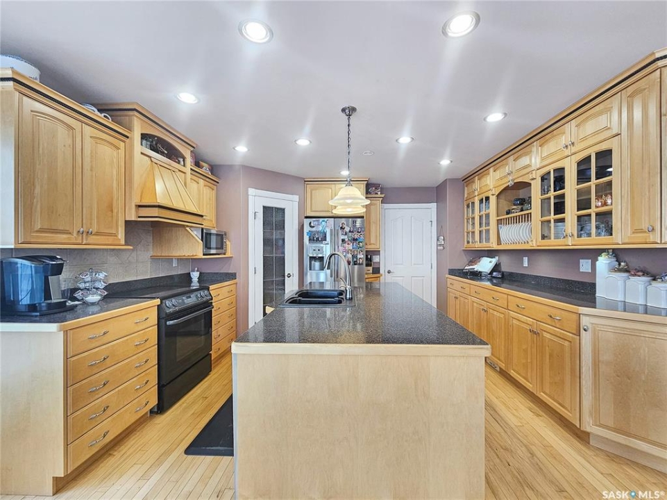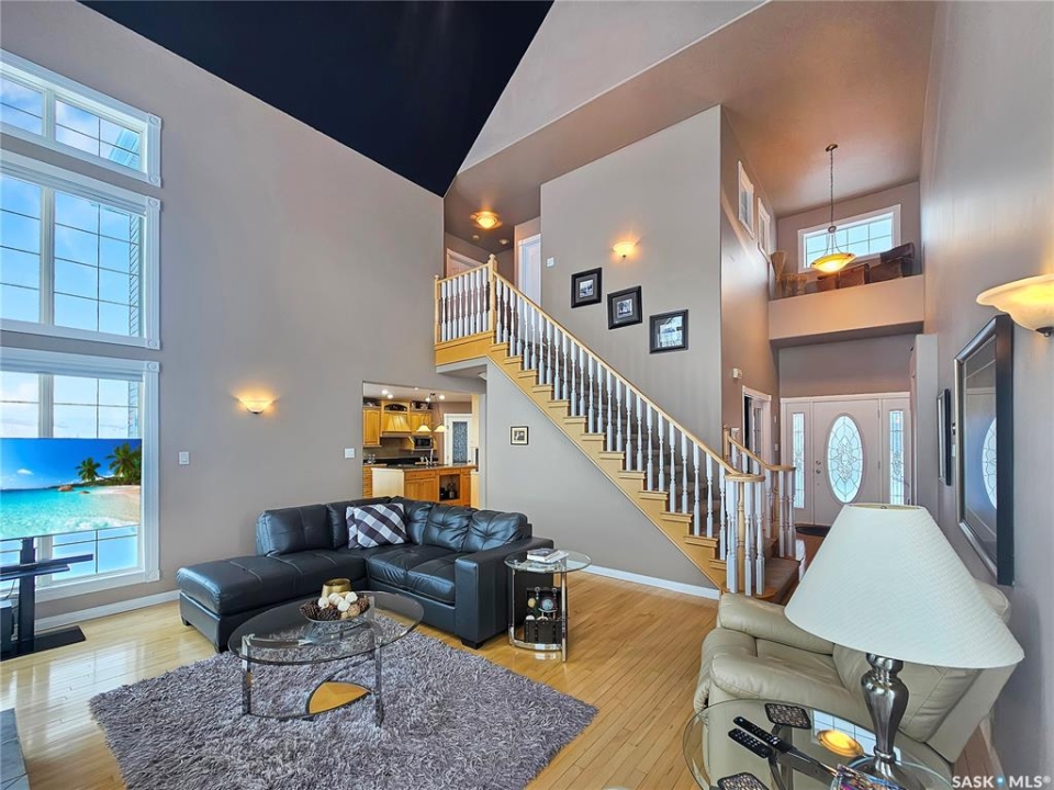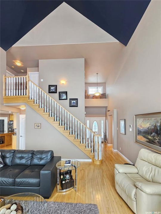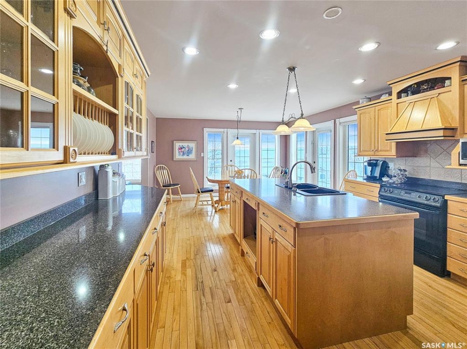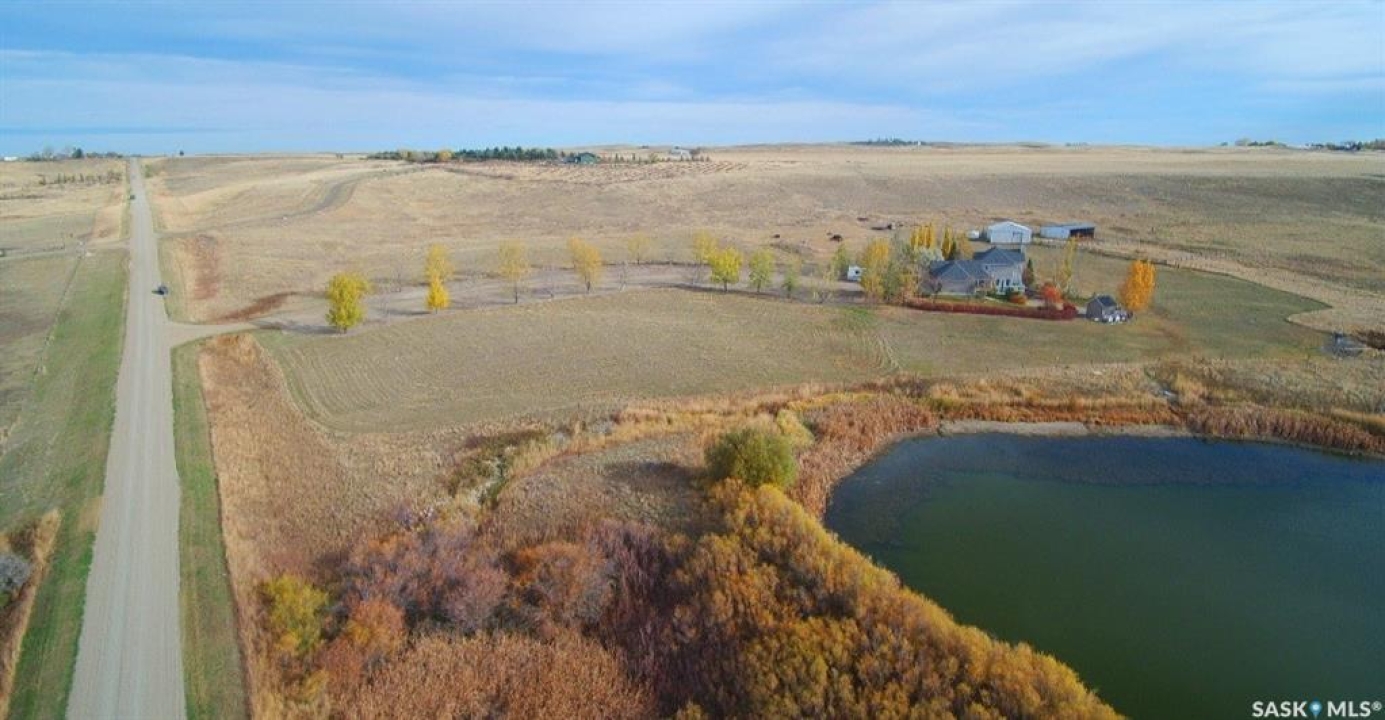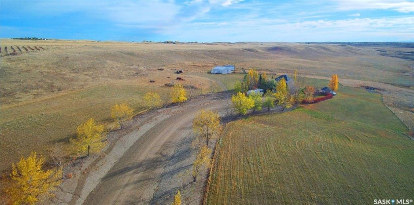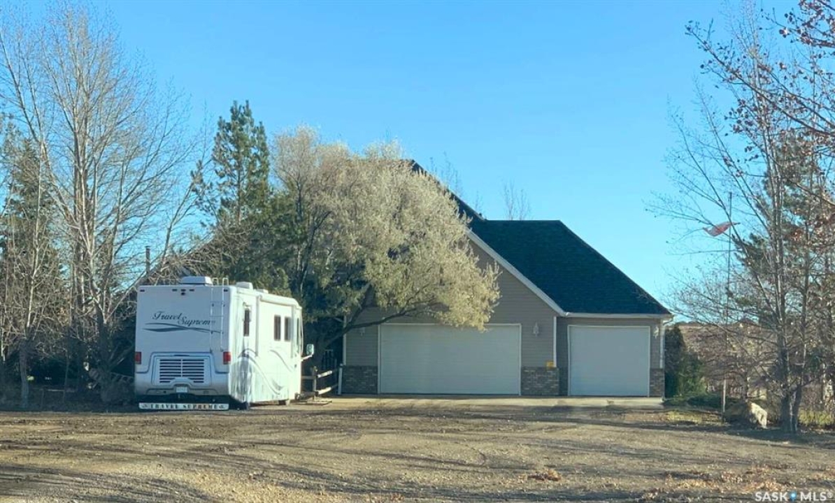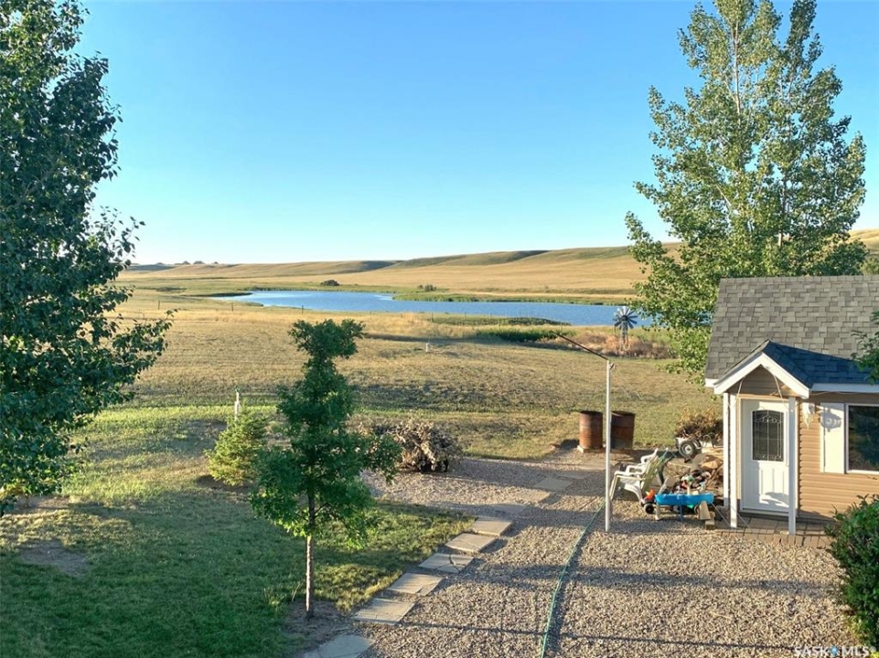 Situated on a picturesque landscape with prairie & water views, along with approximately 70 acres of land, exists this wonderful opportunity to own this established hobby farm, complete with a 2001 custom built executive style home with an attached triple garage, a 32x42 cattle shelter and a 38x40 metal clad shop w/storage shed. Located approximately 10 minutes from the city in a quiet valley with a mature & landscaped yard, this 2,135 sf two storey residence features 24' ceilings in the great room with a gas fireplace, an abundance of windows allowing for the sun & views to enter, maple hardwood flooring, along with a dream kitchen to cook & entertain in! There are main floor office & laundry rooms, where the office could also be utilized as a formal dining room. The large primary suite is cleverly placed on the main floor, accompanied by a sizeable ensuite containing a walk-in shower & closet, along with a soaker bathtub, capturing your prairie views! Ascending up the grand staircase you will find an additional two bedrooms (one of them containing a walk-in closet) and a sizeable 4-pc washroom. The walk-out basement is a dream with a dedicated media area with a second gas fireplace, a games room area and your very own wine tasting room! In addition, the basement also houses a 4th bedroom, another 4-pc washroom, as well as storage & utility rooms. Approximately 2/3 of the basement contains in-floor heat. This beautiful home also provides a 12x14 screened in porch, a large back deck to capture your views and the triple garage also features in-floor heat. The shingles were replaced in 2019, the current internet provider is Starlink and SaskEnergy is equalized at only $185/mo with this energy efficient home. Please call for additional details with this rare opportunity to purchase a hobby farm such as this, with this amount of land located in a valley with a water view only 10 minutes from the city!