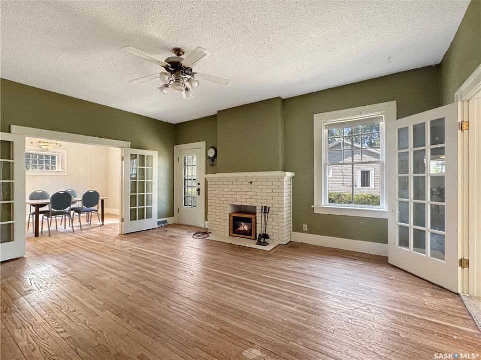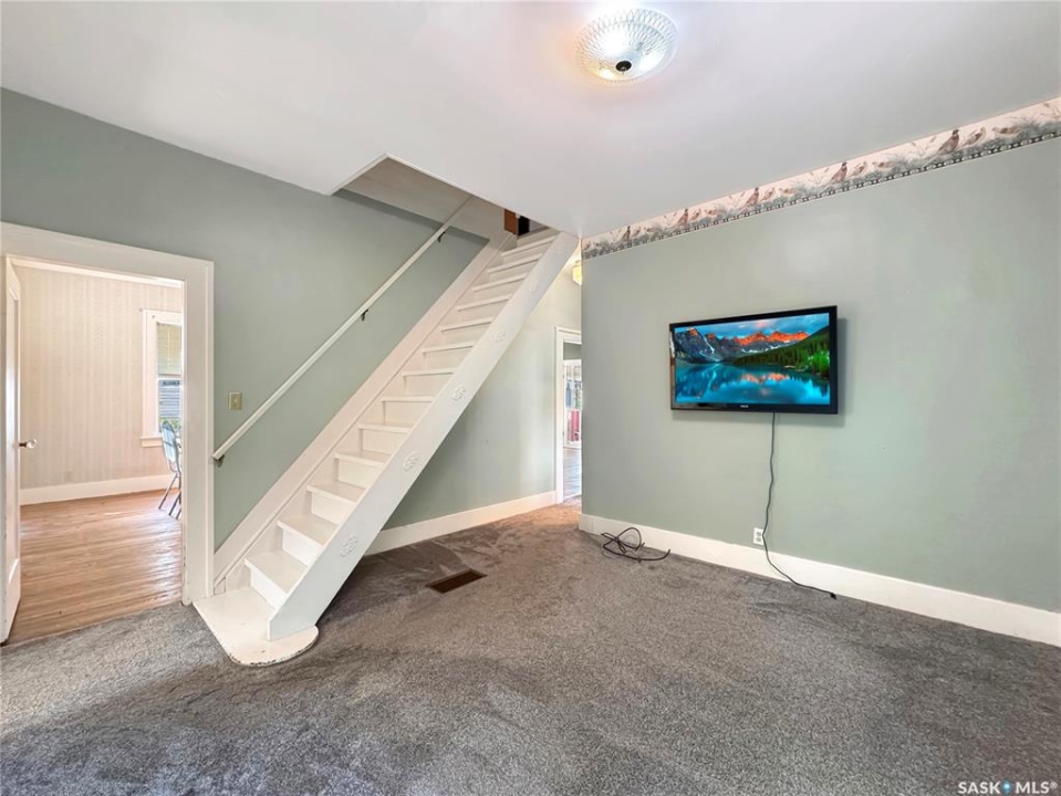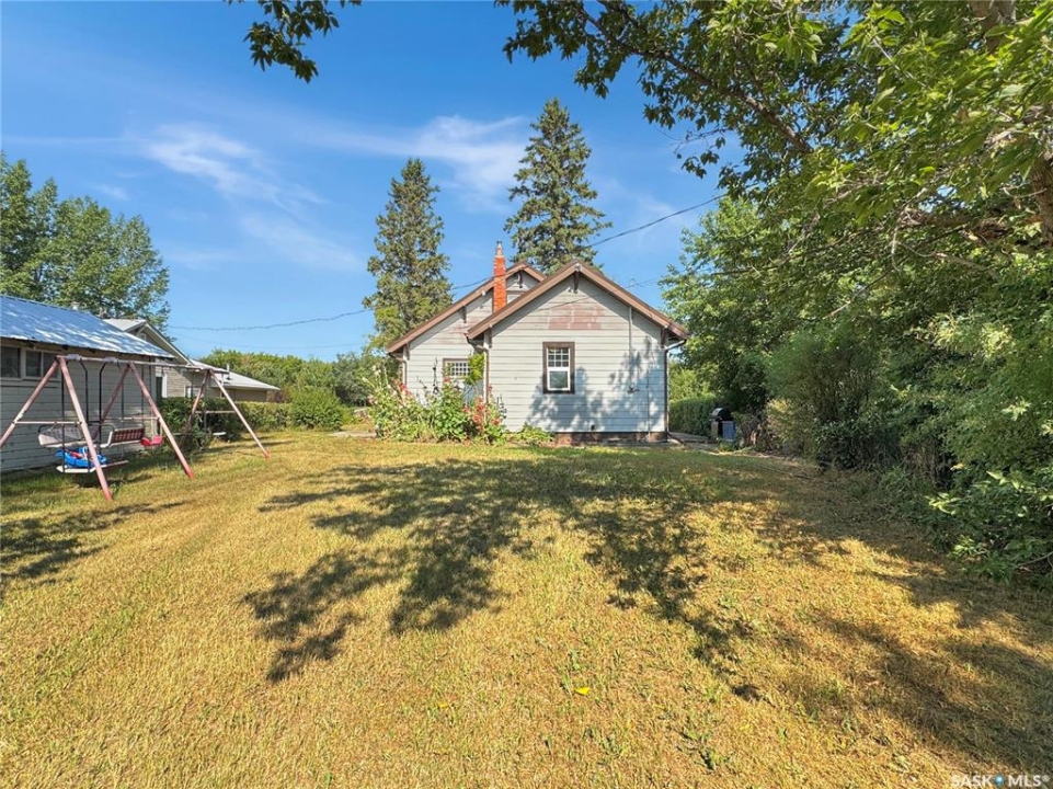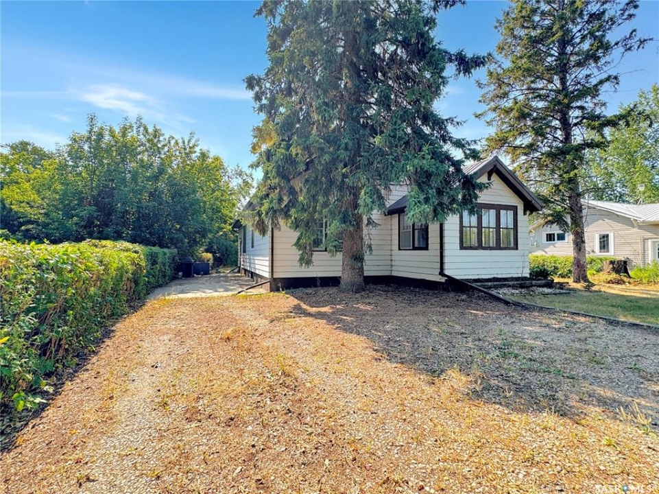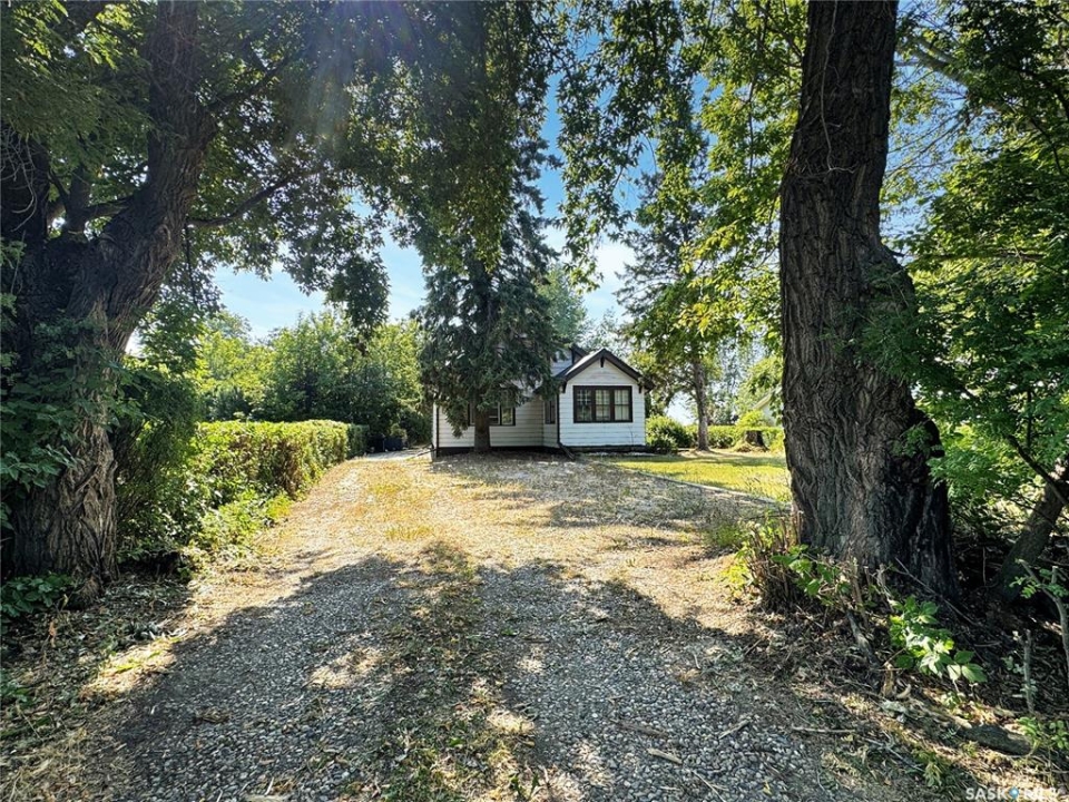 Step into the timeless charm of this early 1900s 1 1/2 story character home located in the Hamlet of Prince, SK. This home sits on a remarkable 50x500 ft lot in a quiet, affordable community just minutes from the lake and only 15 minutes from the Battlefords. Rich in character and warmth, this well-loved home welcomes you with a formal living room that opens through French doors into a bright and inviting sunroom, offering peaceful 180-degree views through large, wraparound windows. The spacious dining area sits just off the kitchen and living room, creating a perfect space for gatherings and everyday living. The main floor includes a comfortable bedroom with an entire wall of built-in storage, while the second level offers two more cozy bedrooms, ideal for family or guests. The partially finished basement adds versatility with generous storage, a laundry area, and a 3-piece bathroom. Step outside into a beautifully matured yard filled with towering trees that offer privacy, shade, and endless possibilities for outdoor enjoyment. Water is hauled to the property and stored in a holding tank, and a septic system is in place. This property blends classic charm, space, and a great location—making it a rare opportunity you won't want to miss.