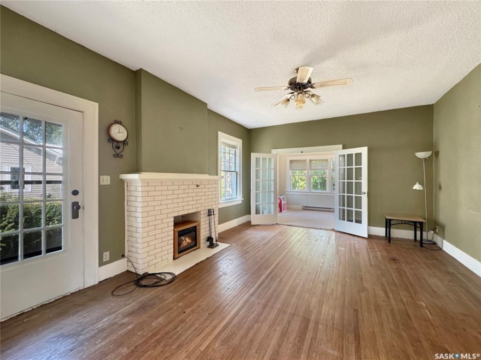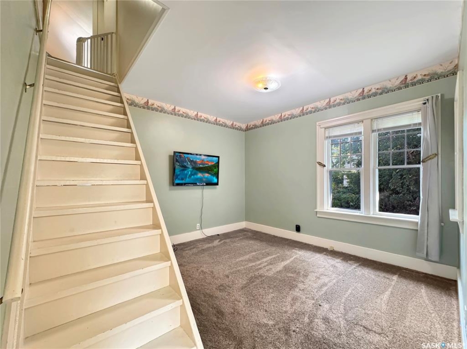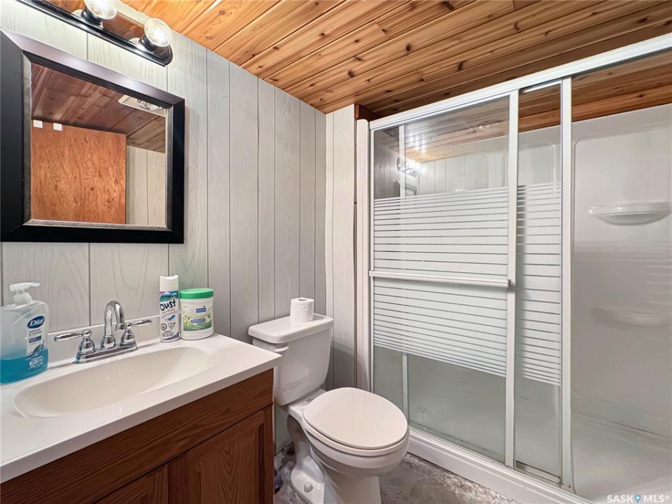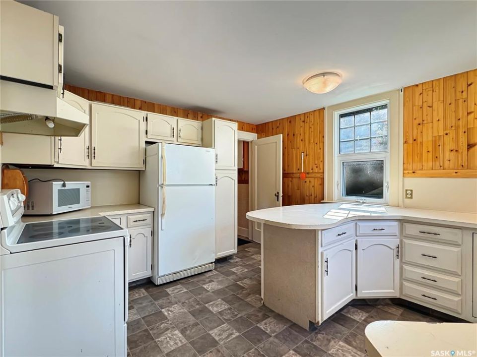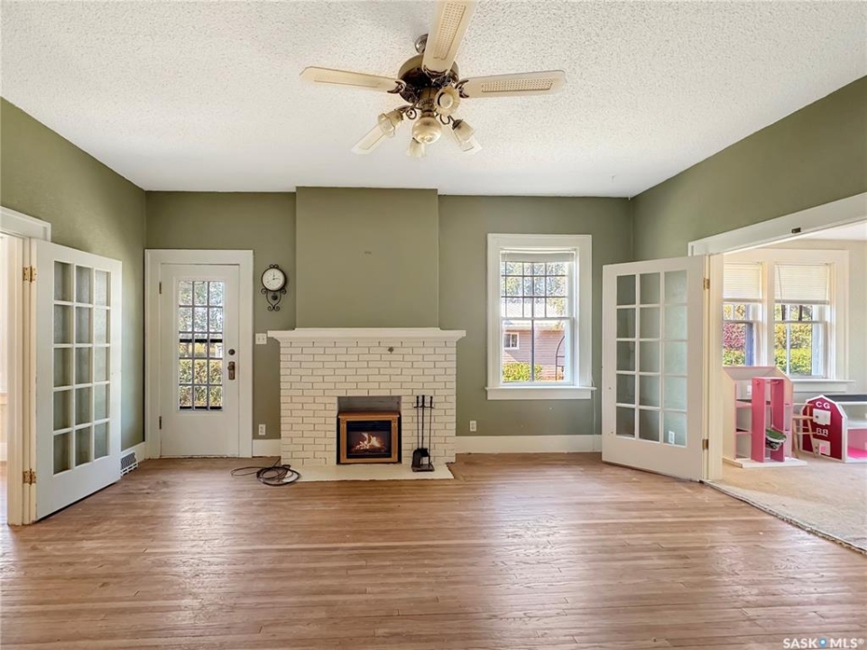 Step into the timeless charm of this early 1900s 1 1/2 story character home located in the Hamlet of Prince, SK. This home sits on a remarkable 50x500 ft lot in a quiet, affordable community just minutes from the lake and only 15 minutes from the Battlefords. Rich in character and warmth, this well-loved home welcomes you with a formal living room that opens through French doors into a bright and inviting sunroom, offering peaceful 180-degree views through large, wraparound windows. The spacious dining area sits just off the kitchen and living room, creating a perfect space for gatherings and everyday living. The main floor includes a comfortable bedroom with an entire wall of built-in storage, while the second level offers two more cozy bedrooms, ideal for family or guests. The partially finished basement adds versatility with generous storage, a laundry area, and a 3-piece bathroom. Step outside into a beautifully matured yard filled with towering trees that offer privacy, shade, and endless possibilities for outdoor enjoyment. Water is hauled to the property and stored in a holding tank, and a septic system is in place. This property blends classic charm, space, and a great location—making it a rare opportunity you won't want to miss.