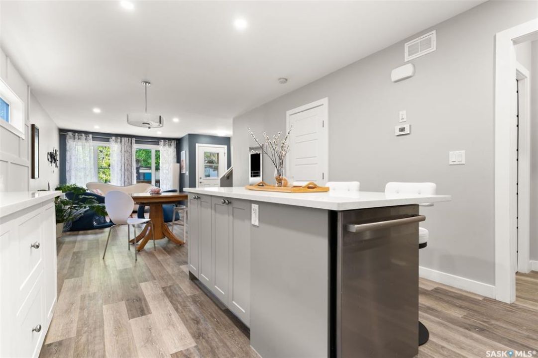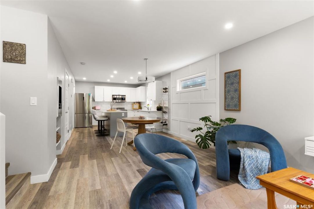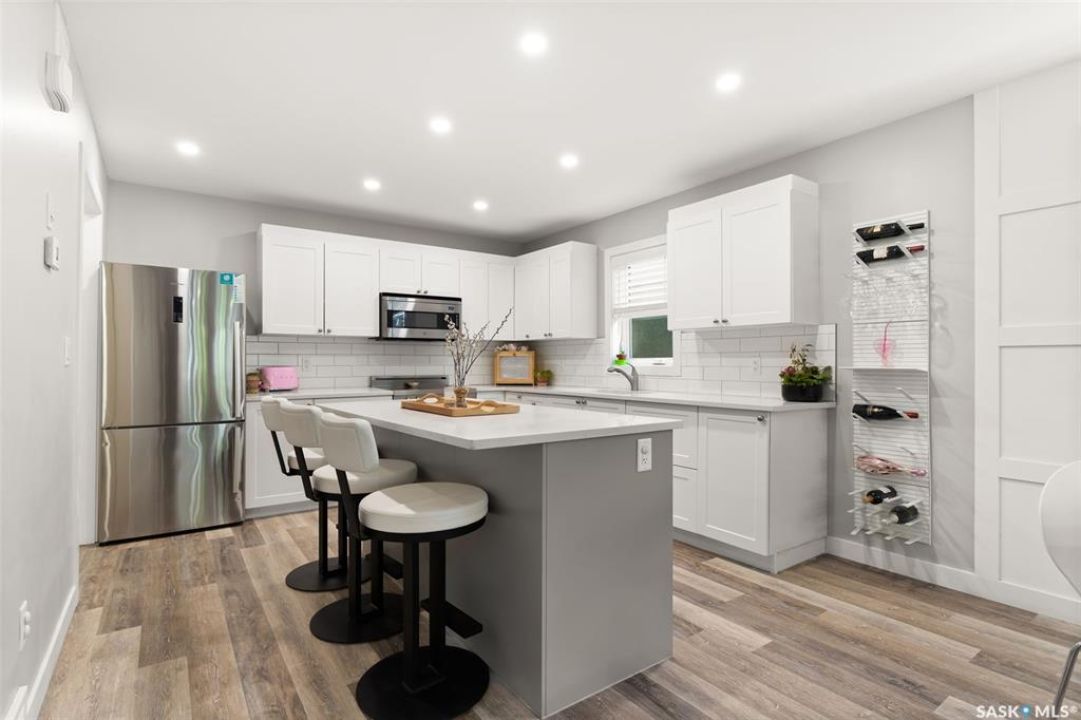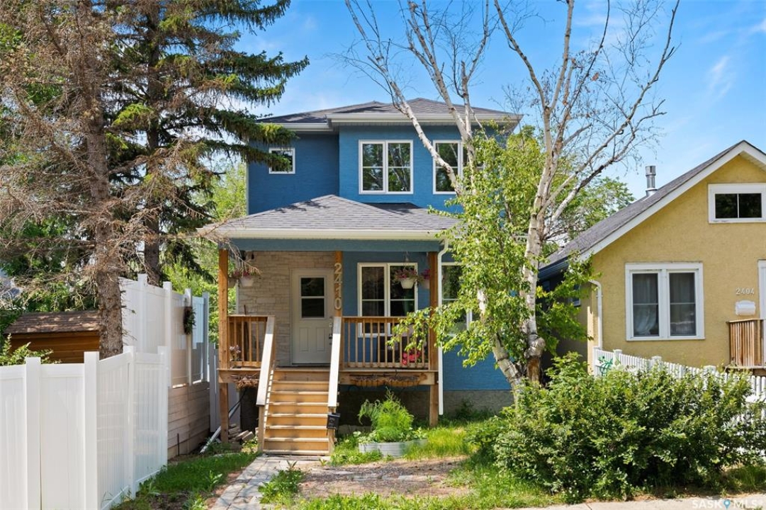 Welcome to 2410 Athol Street, a home that exudes serenity and sophistication in Regina's iconic Crescents neighbourhood. This beautifully built 2-storey residence offers 1,487 sq ft of thoughtfully curated living space, seamlessly blending timeless charm with refined modern touches. Situated on a mature, tree-lined street, this 4-bedroom, 3-bathroom home is ideal for growing families or those who love to entertain. Step inside to a luminous, open-concept main floor where natural light dances across wide-plank vinyl flooring and elegant architectural details. The heart of the home is the designer kitchen—anchored by a stunning quartz island—featuring sleek white cabinetry, stainless steel appliances, stylish subway tile backsplash, and warm ambient lighting. The spacious living and dining areas flow effortlessly, offering a tranquil setting for both relaxed family living and elegant entertaining. A modern 2 piece bath completes the main floor. Upstairs, the private primary suite offers a serene retreat complete with a walk-thru closet and contemporary 3-piece ensuite. Two additional bedrooms, a 4-piece main bathroom, and an upper-level laundry room enhance everyday comfort and practicality. The fully developed basement expands your living space with a generous recreation room, an additional bedroom and a 2-piece bath. Every level of this home has been meticulously thought out and designed. Outdoors, enjoy your morning coffee on the charming front veranda or unwind in the fully partially fenced backyard shaded by mature trees. A spacious double attached garage complete this exceptional property. Ideally located just steps from Wascana Park, downtown, and some of Regina's most beloved amenities, this home is the perfect fusion of character, comfort, and quiet luxury.