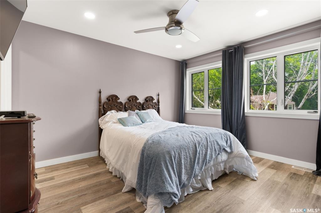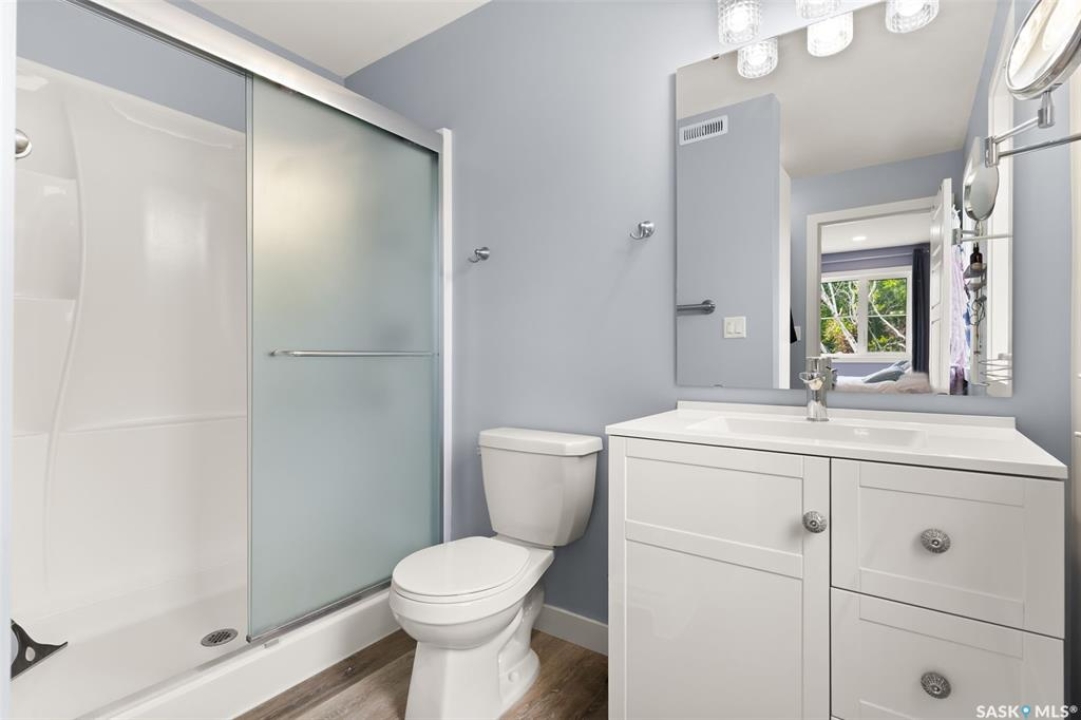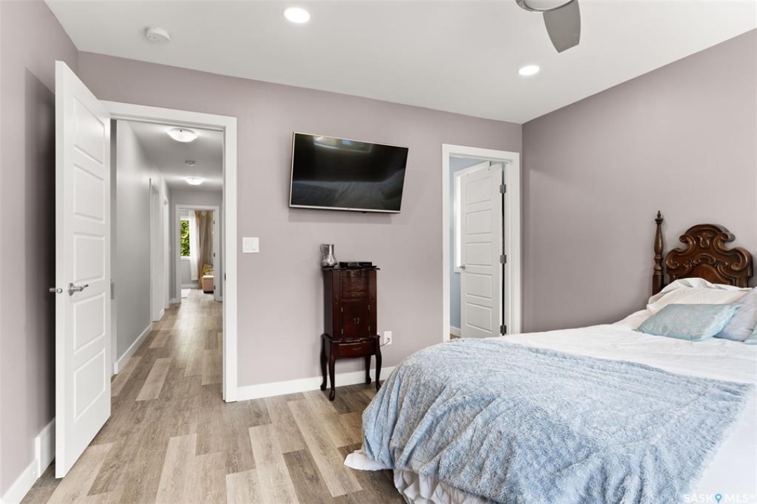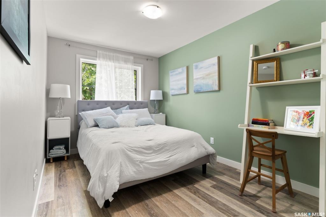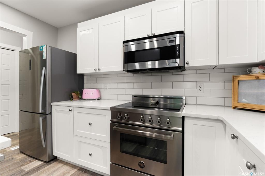 Welcome to 2410 Athol Street, a home that exudes serenity and sophistication in Regina's iconic Crescents neighbourhood. This beautifully built 2-storey residence offers 1,487 sq ft of thoughtfully curated living space, seamlessly blending timeless charm with refined modern touches. Situated on a mature, tree-lined street, this 4-bedroom, 3-bathroom home is ideal for growing families or those who love to entertain. Step inside to a luminous, open-concept main floor where natural light dances across wide-plank vinyl flooring and elegant architectural details. The heart of the home is the designer kitchen—anchored by a stunning quartz island—featuring sleek white cabinetry, stainless steel appliances, stylish subway tile backsplash, and warm ambient lighting. The spacious living and dining areas flow effortlessly, offering a tranquil setting for both relaxed family living and elegant entertaining. A modern 2 piece bath completes the main floor. Upstairs, the private primary suite offers a serene retreat complete with a walk-thru closet and contemporary 3-piece ensuite. Two additional bedrooms, a 4-piece main bathroom, and an upper-level laundry room enhance everyday comfort and practicality. The fully developed basement expands your living space with a generous recreation room, an additional bedroom and a 2-piece bath. Every level of this home has been meticulously thought out and designed. Outdoors, enjoy your morning coffee on the charming front veranda or unwind in the fully partially fenced backyard shaded by mature trees. A spacious double attached garage complete this exceptional property. Ideally located just steps from Wascana Park, downtown, and some of Regina's most beloved amenities, this home is the perfect fusion of character, comfort, and quiet luxury.
