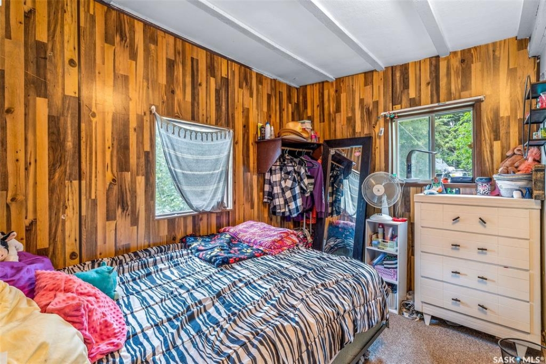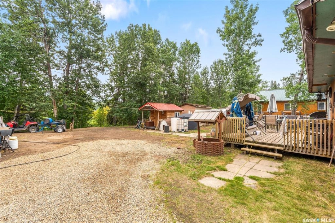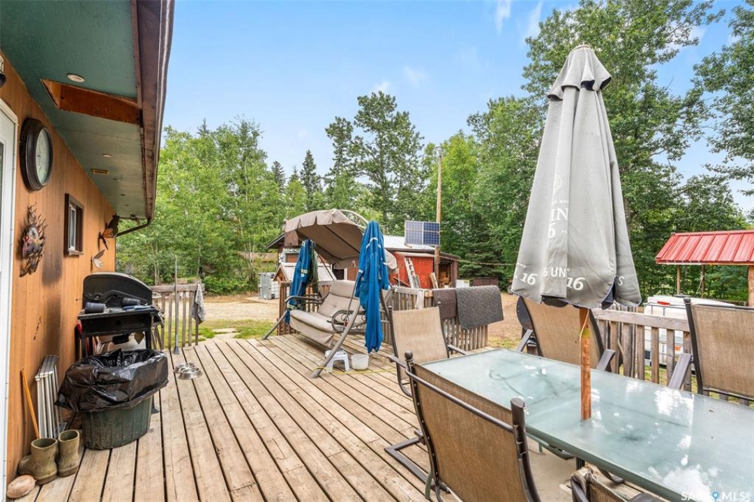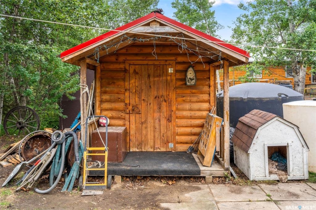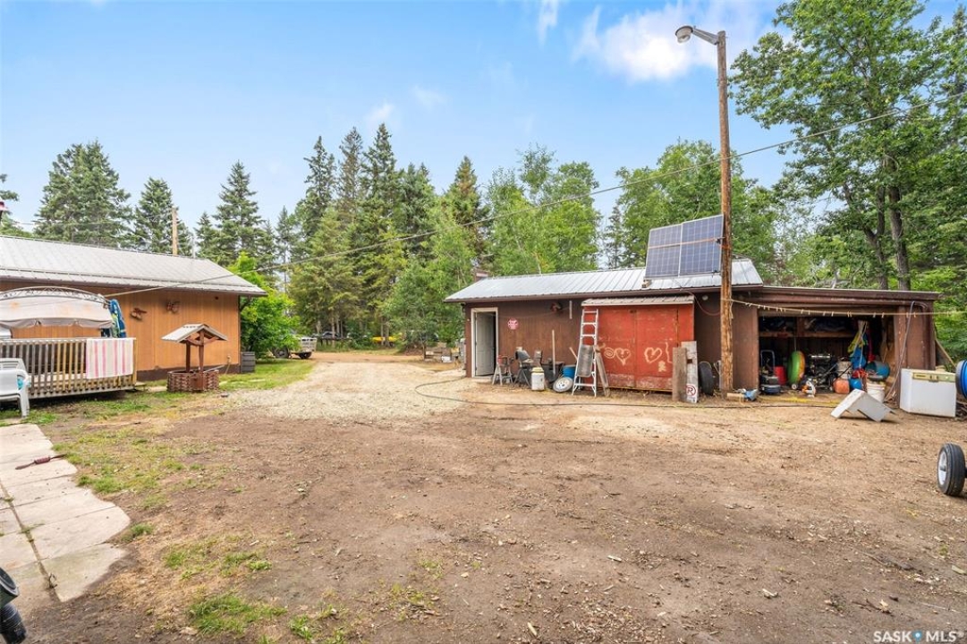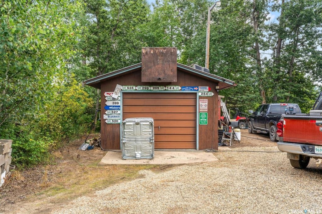 Tucked among the trees on a corner lot and just steps from Sunset Bay Marina and beach, this 3-bedroom bungalow offers the perfect 3-season retreat at Emma Lake. A welcoming entry warmed by a wood stove opens into a cozy living room and a spacious kitchen featuring a large island with bar seating. There are three comfortable bedrooms along with a 4-piece bathroom, while a separate bunk house provides extra sleeping space for guests. Outside, you'll find raised garden beds alongside a mature apple tree and plenty of space for parking or outdoor activities. Backing onto peaceful greenspace, the property offers direct access to trails right from your backyard. A 1-car garage is paired with an attached smaller garage perfect for recreational vehicles or extra storage. Practical touches include a 1,250 gallon water tank, a 1,000 gallon cement septic tank, a sandpoint well (not in use), and a natural gas hookup at the cabin ready to be connected. The cabin is equipped with a metal roof upgraded in 2019, providing excellent durability and low maintenance. From boating and beach days to evenings around the firepit, this cabin offers the ideal spot to enjoy lakeside living. With lake access and recreation nearby, this Emma Lake retreat is ready for its next owners. Book your showing today!