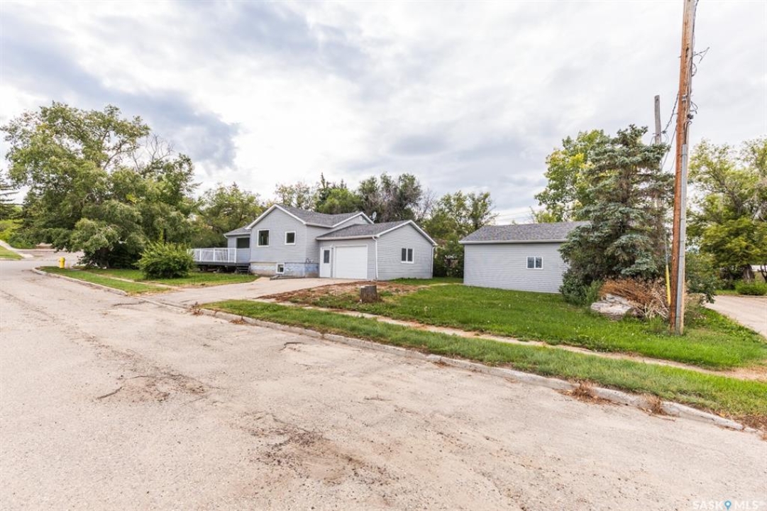 Looking for a cute bungalow with a heated attached garage and shop? This property might just be the one for you. It features five bedrooms, two and a half baths, including a 2 pc. ensuite, a single attached garage, and an impressive 30' x 28' heated garage/shop with 45,000 BTU forced air heating and 100 amp service. Renovated between 2009 and 2013, the home offers you a remodelled kitchen with updated cabinets, countertops, flooring, and appliances, along with upgrades to windows, flooring, siding, and a front deck. Built approx. 1952, this 1,040 sq. ft. bungalow includes two main-level bedrooms, a four-piece bath/laundry, a two-piece ensuite, living room, kitchen, and dining area with patio doors to a 24 x 12 PVC deck. The lower level offers three more bedrooms, two family rooms, and a three-piece bath. Features include main floor laundry, central air, and a heated garage. Quick possession available! Conveniently located close to amenities, rink, and the K-12 school. The 2025 tax levy is $3,150.03, and the pavement levy is paid.