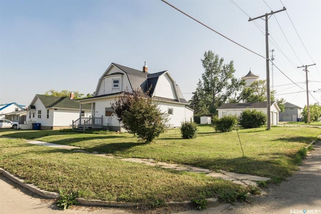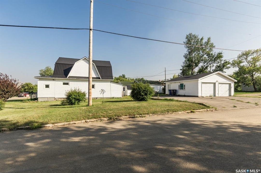 Great location, character home, double detached garage, and shed. Situated on a 75 ft. x 120 ft. corner lot, close to the golf course. This 3 bedroom 2 bath home underwent an extensive exterior renovation including siding, and the metal roof of the house approx. 2015/16. The windows were replaced, unsure of when. The 3 bedroom/2 bath home has plenty of potential. The double detached garage was added in 2009, concrete floor, power, fully insulated and is 24' x 26'. An excellent double concrete driveway was added at that time as well, for plenty of off street parking. Sama has property at 830 sq. feet, second level bedrooms and bath are approx. 455 sq. ft. 2025 property tax levy $2461.52 and pavement improvement levy of $1560.42 for a total of $4021.94. Schedule A to accompany all offers. See supplements. Schedule a showing asap.