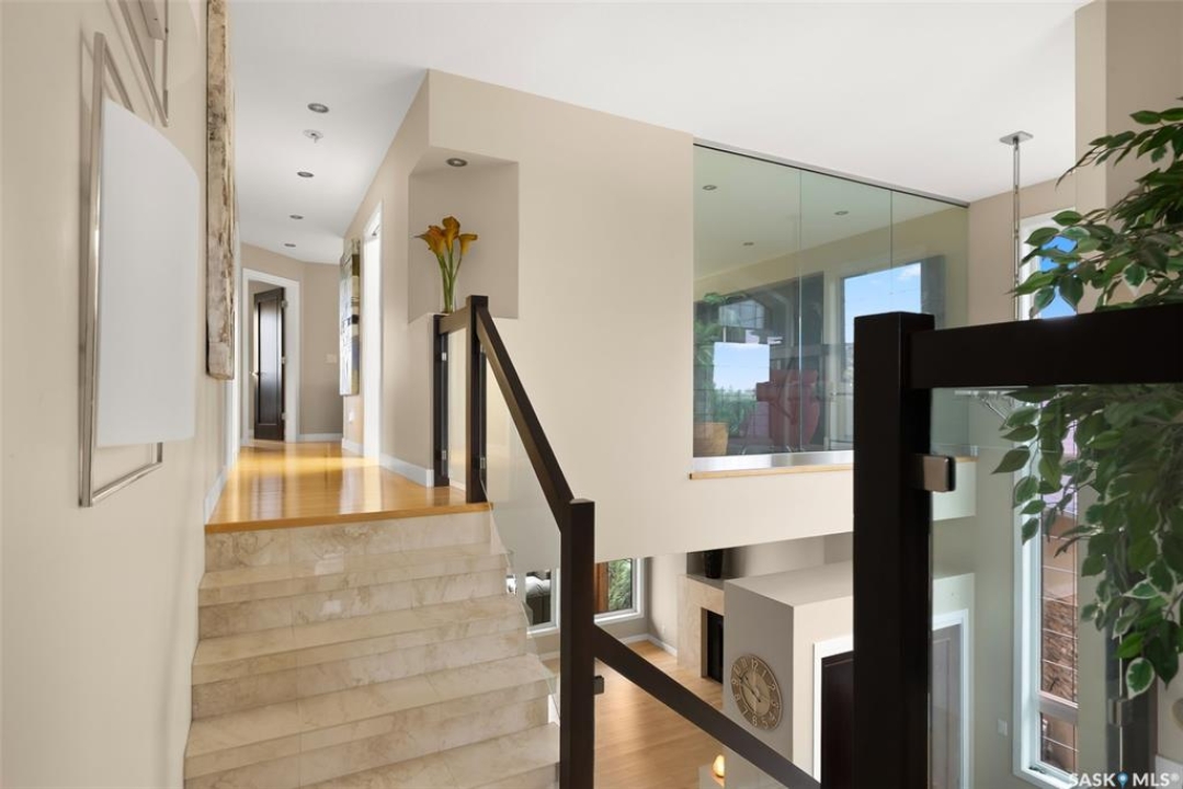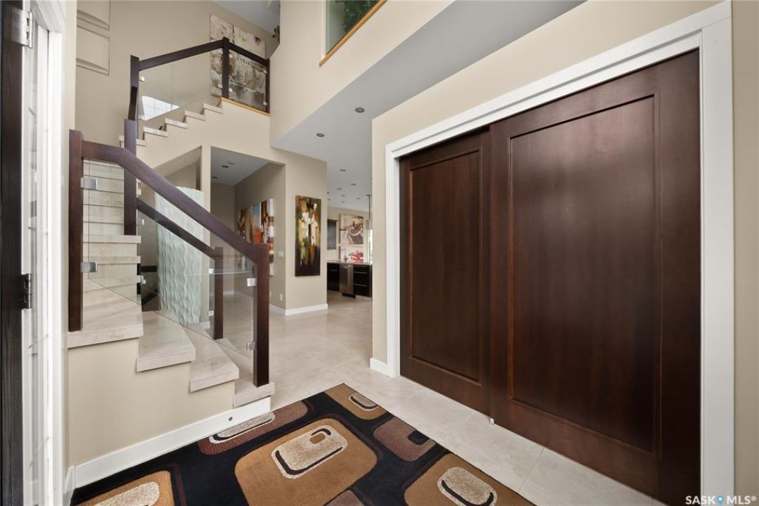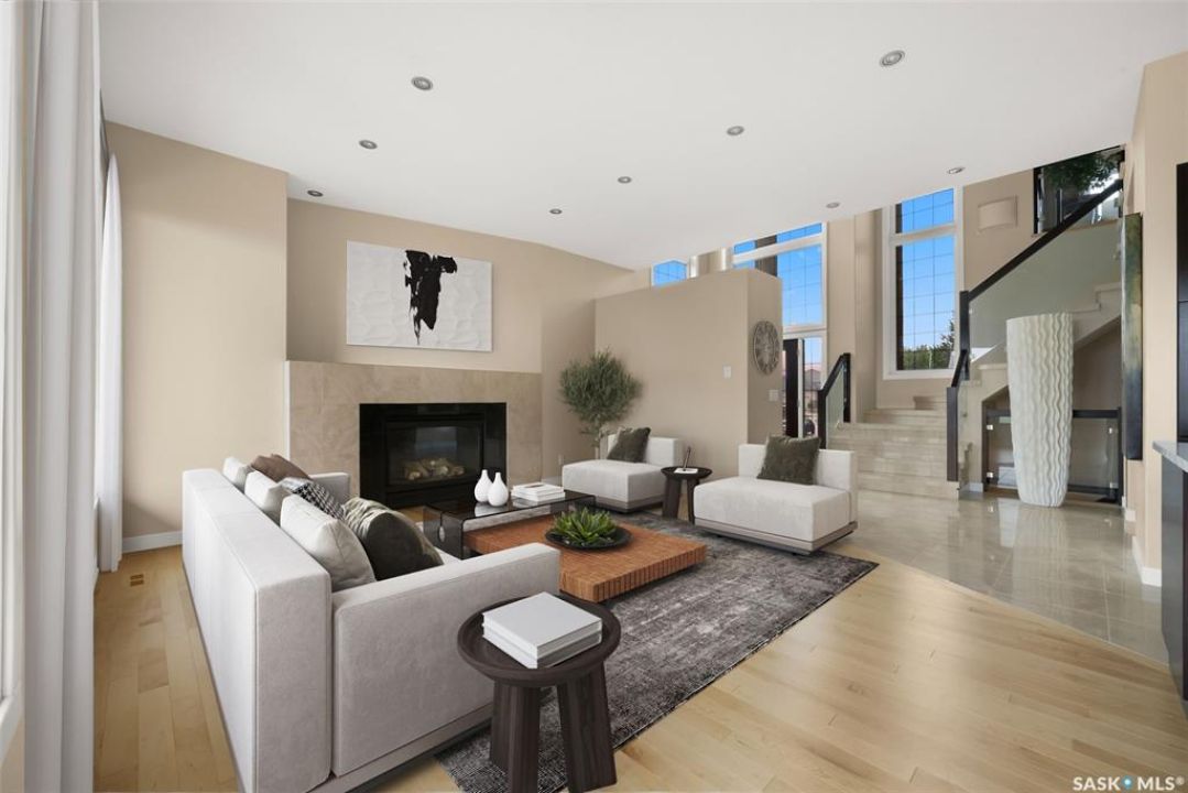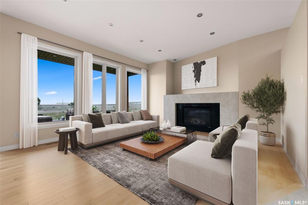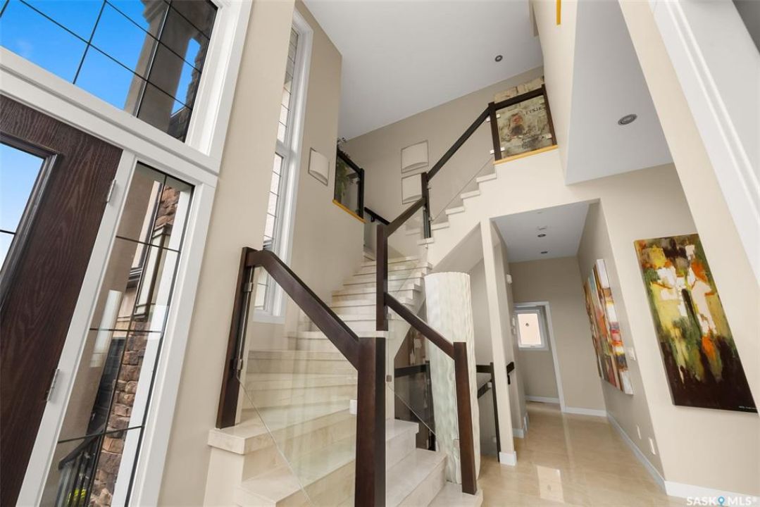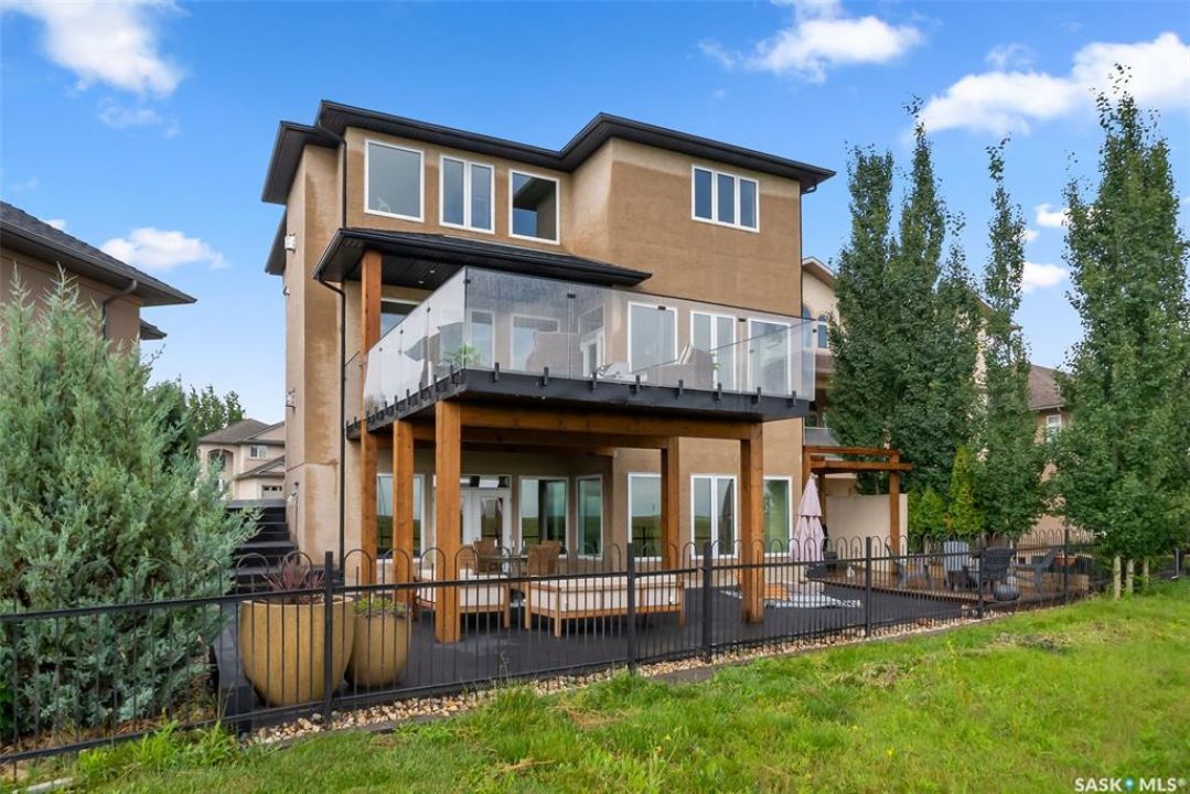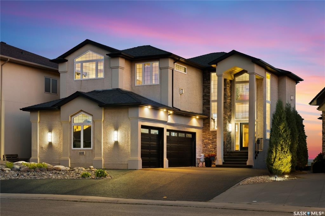 Welcome to 6110 Wascana Court, an exquisite 2-storey, 2,541 sq ft Varsity-built home nestled in the heart of Wascana View—one of Regina's most prestigious neighborhoods. This stunning 4-bedroom, 4-bathroom residence offers a rare combination of luxury, comfort, and natural beauty, with unobstructed views of McKell Wascana Conservation Park from every level. Step into the grand foyer where 20-foot ceilings and a striking staircase immediately set the tone for the elegance found throughout the home. The open-concept kitchen and living area flow seamlessly onto a spacious 16' x 24' deck, perfect for entertaining or enjoying peaceful evenings overlooking the park. The main floor also features a convenient 2-piece bathroom and direct access to an oversized heated 3-car garage. This home is warmed by four beautiful gas fireplaces, adding ambiance and comfort to multiple living spaces throughout. Upstairs, the lavish primary suite includes a private sitting room, a beautiful 4-piece ensuite, and a walk-in closet. Two additional bedrooms and a cozy bonus room with floor-to-ceiling windows offer incredible views and versatile living space. A full 4-piece bathroom and a well-appointed laundry room complete the upper level. The fully developed walkout basement boasts 9-foot ceilings, a generous family room, a fourth bedroom, and a 3-piece bathroom. Step outside to a professionally zeroscaped backyard that backs directly onto green space, offering the serenity of country living with the convenience of city amenities. This home is filled with unique and stunning spaces designed for both entertaining and everyday living. Don't miss your chance to own a truly exceptional property in one of Regina's most sought-after locations. Contact your agent today to arrange a private viewing. Please note: the car lift in the garage is not included. Some photos have been virtually staged.