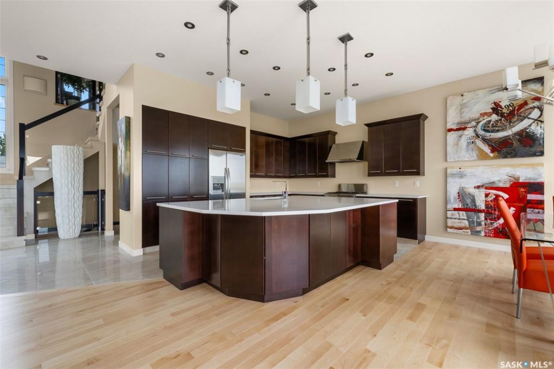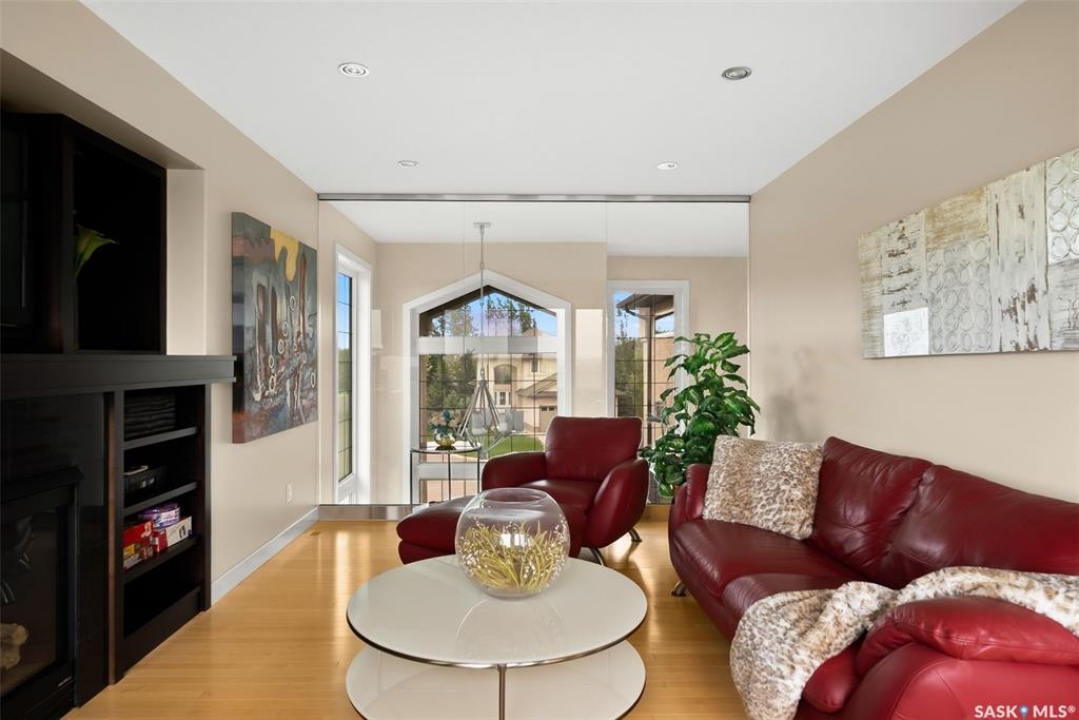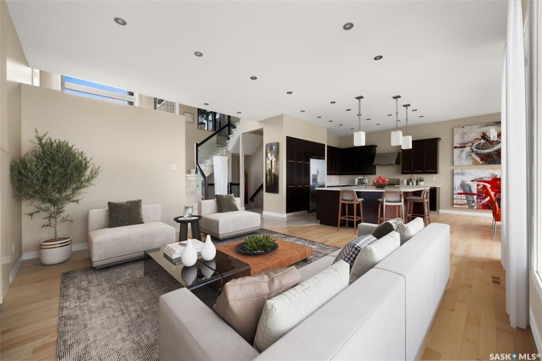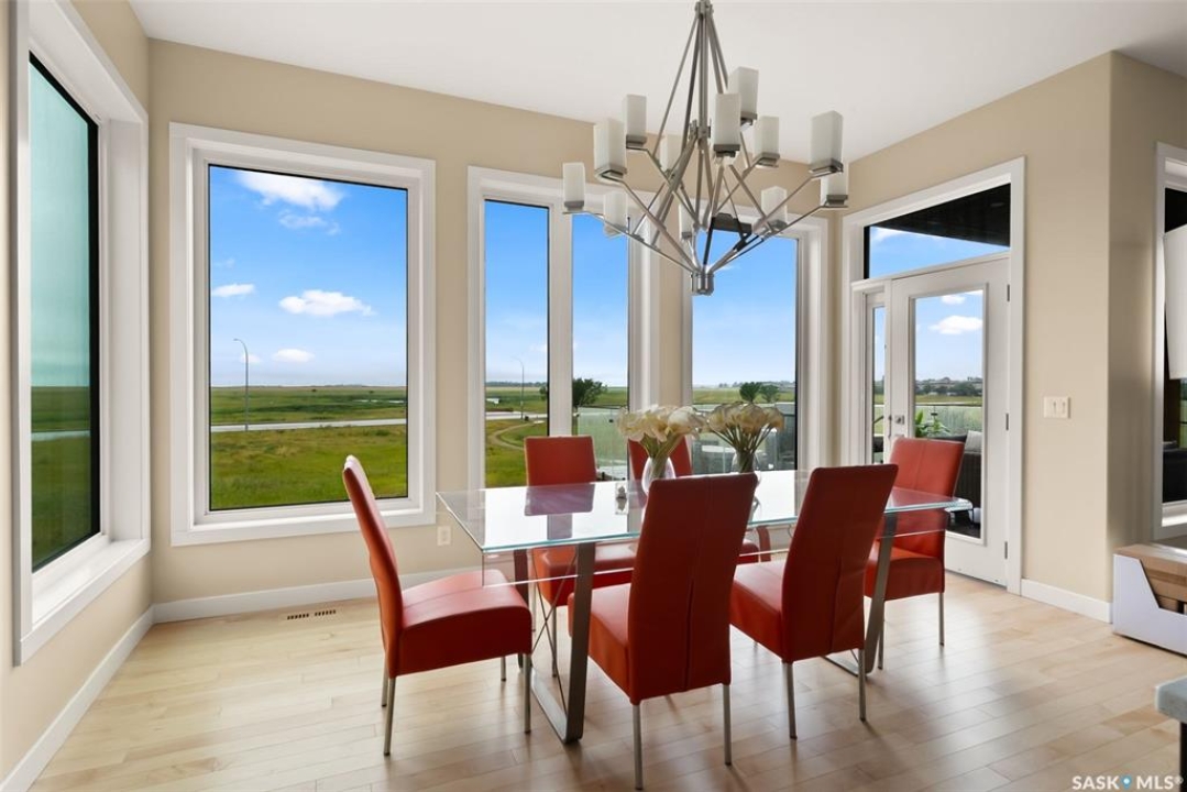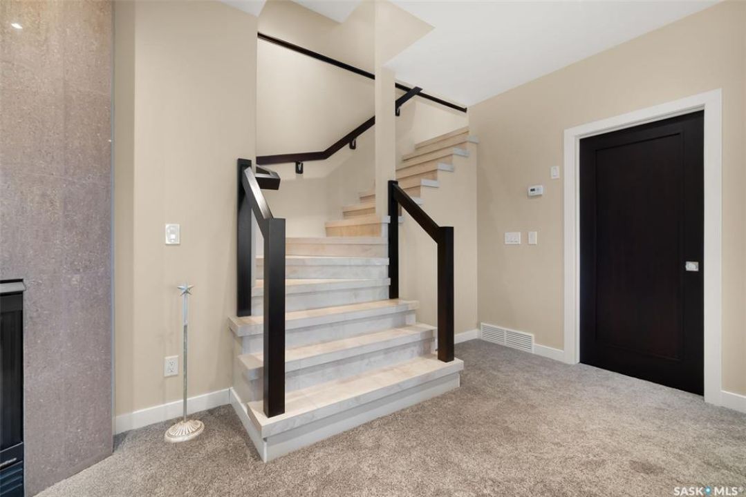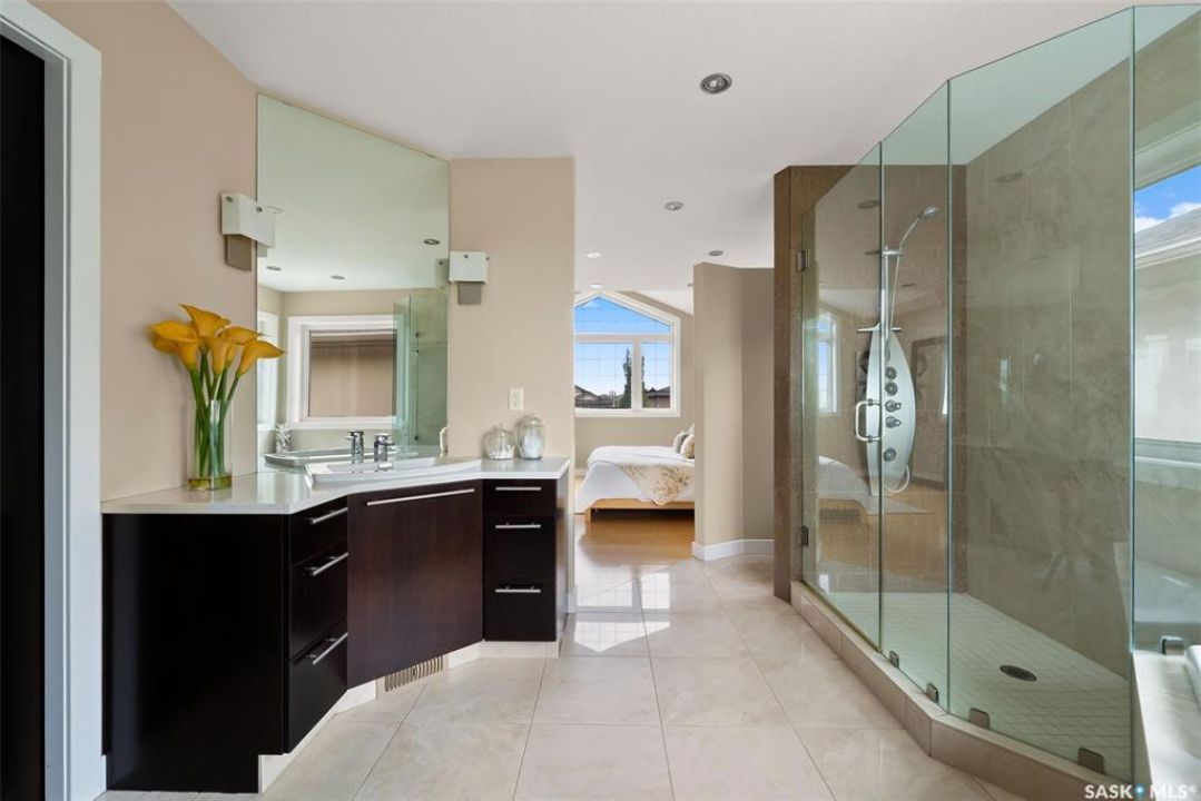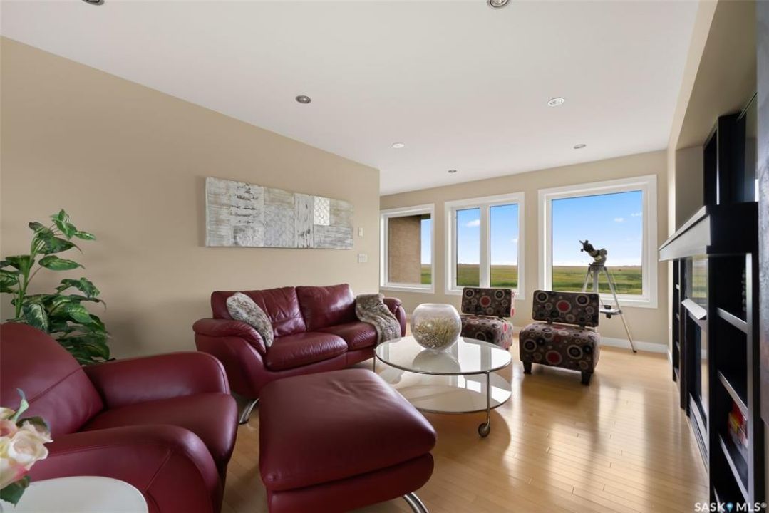Welcome to 6110 Wascana Court, an exquisite 2-storey, 2,541 sq ft Varsity-built home nestled in the heart of Wascana View—one of Regina's most prestigious neighborhoods. This stunning 4-bedroom, 4-bathroom residence offers a rare combination of luxury, comfort, and natural beauty, with unobstructed views of McKell Wascana Conservation Park from every level. Step into the grand foyer where 20-foot ceilings and a striking staircase immediately set the tone for the elegance found throughout the home. The open-concept kitchen and living area flow seamlessly onto a spacious 16' x 24' deck, perfect for entertaining or enjoying peaceful evenings overlooking the park. The main floor also features a convenient 2-piece bathroom and direct access to an oversized heated 3-car garage. This home is warmed by four beautiful gas fireplaces, adding ambiance and comfort to multiple living spaces throughout. Upstairs, the lavish primary suite includes a private sitting room, a beautiful 4-piece ensuite, and a walk-in closet. Two additional bedrooms and a cozy bonus room with floor-to-ceiling windows offer incredible views and versatile living space. A full 4-piece bathroom and a well-appointed laundry room complete the upper level. The fully developed walkout basement boasts 9-foot ceilings, a generous family room, a fourth bedroom, and a 3-piece bathroom. Step outside to a professionally zeroscaped backyard that backs directly onto green space, offering the serenity of country living with the convenience of city amenities. This home is filled with unique and stunning spaces designed for both entertaining and everyday living. Don't miss your chance to own a truly exceptional property in one of Regina's most sought-after locations. Contact your agent today to arrange a private viewing. Please note: the car lift in the garage is not included. Some photos have been virtually staged.