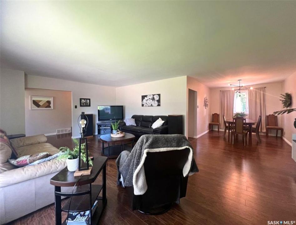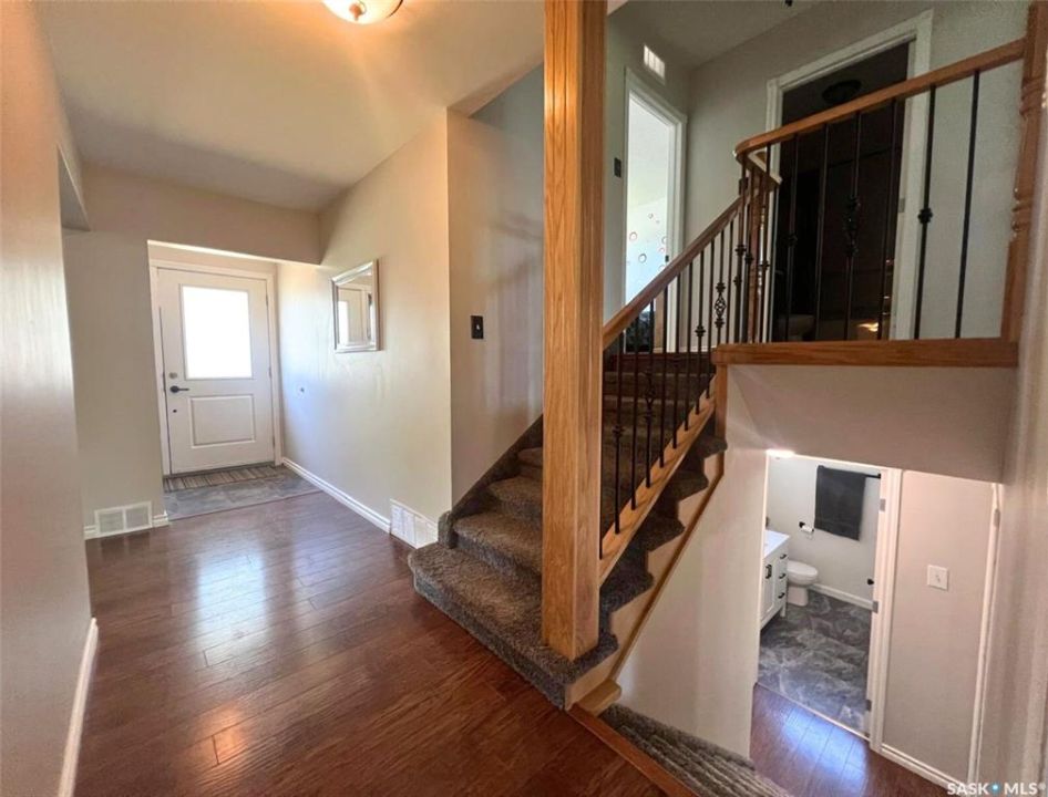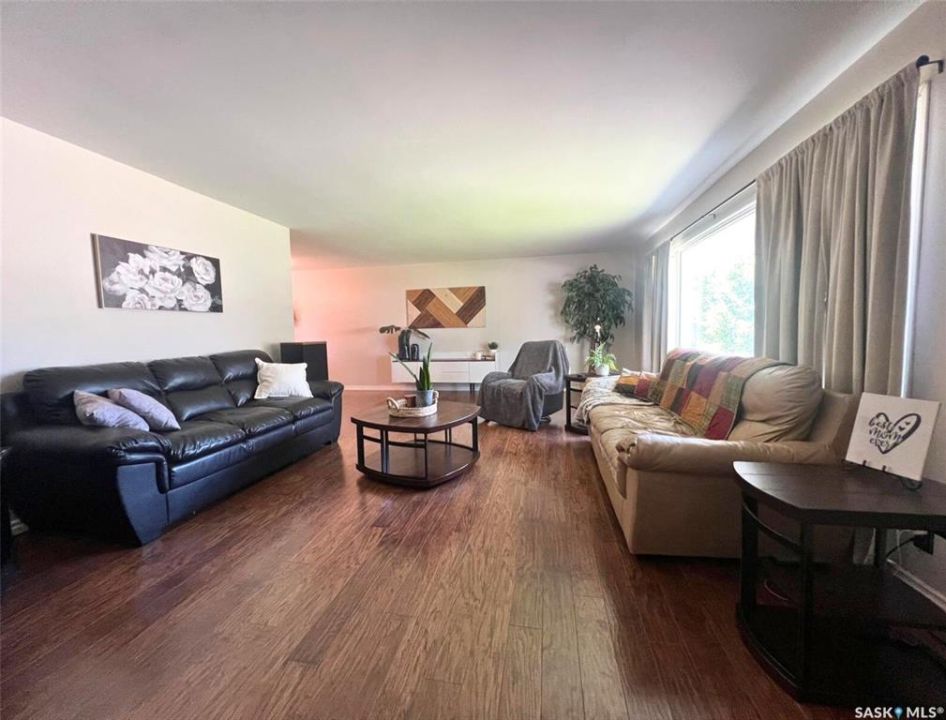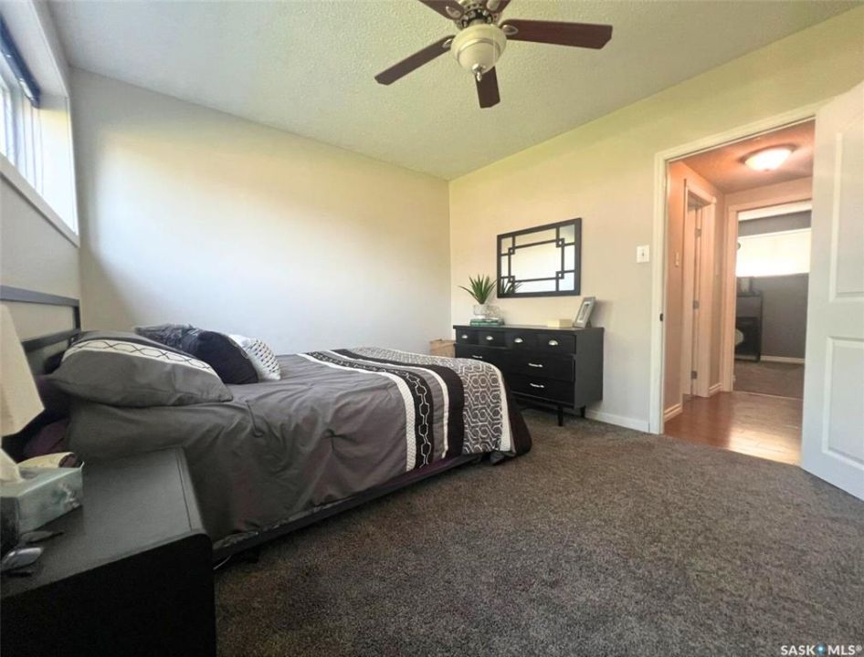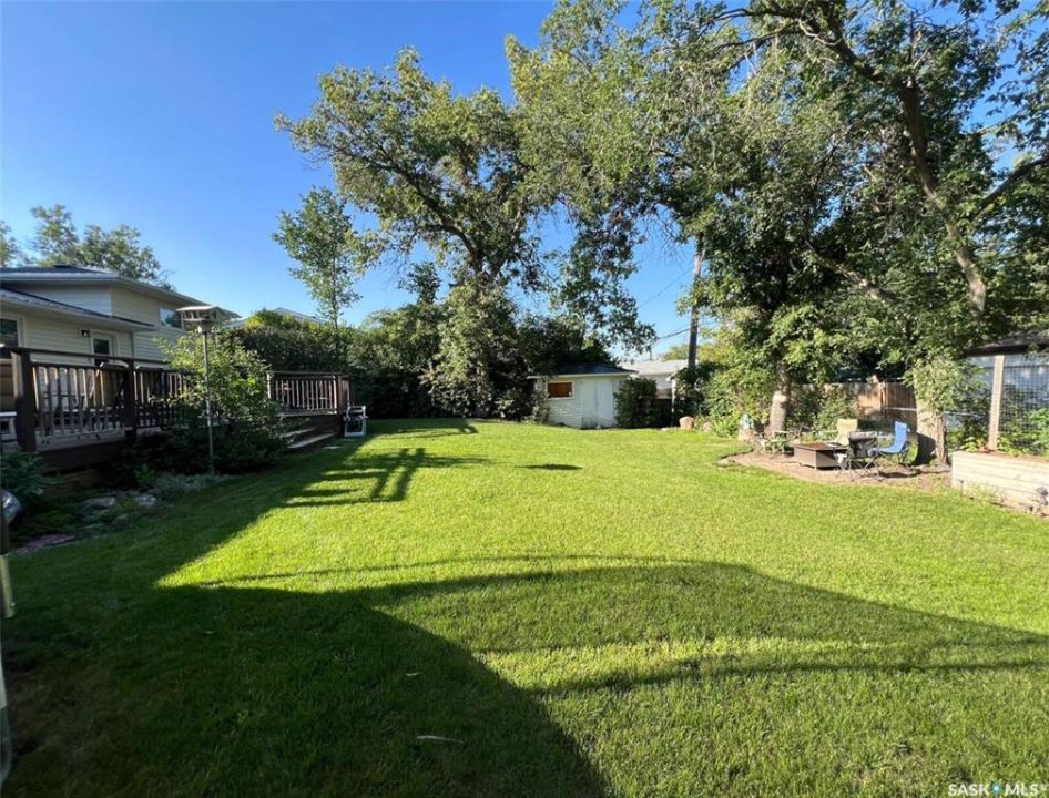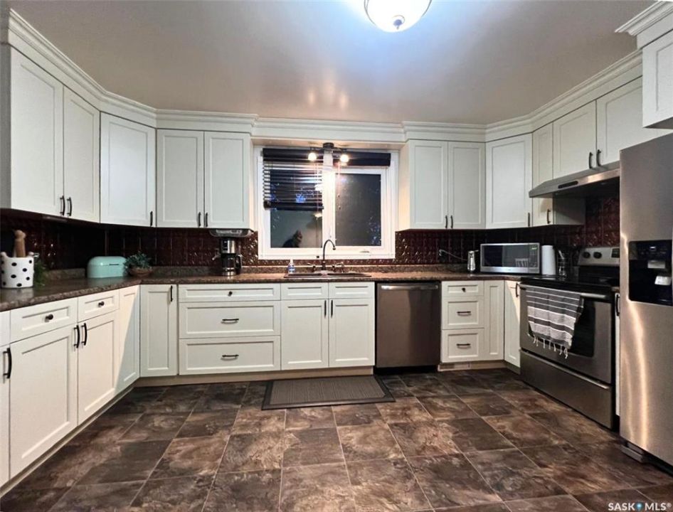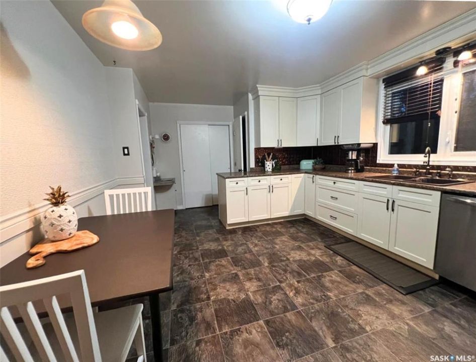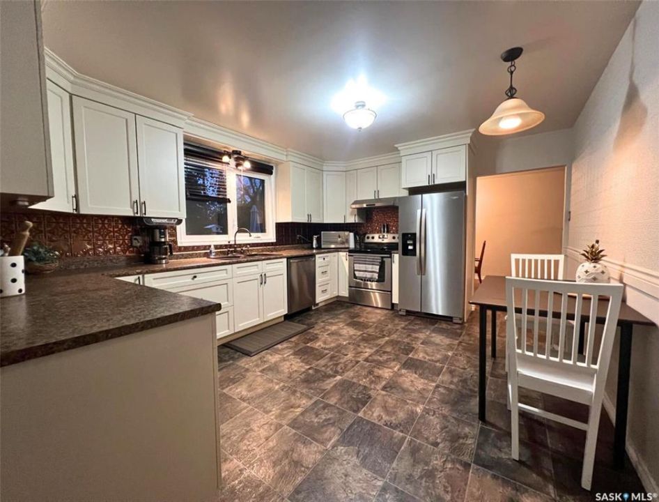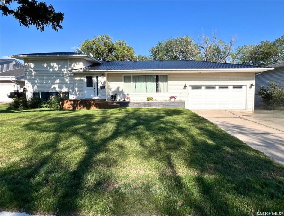 In an ideal family neighbourhood within easy walking distance of Irwin middle school & the Comp high school, also near to Elmwood Golf Course walking trails & Riverdene Park, this attractive 4 bedroom, 2 bathroom 4-level-split home rests on a large, mature lot with an attached garage. Upon entry & directly to your right is the expansive living room with beautiful floors, a large picture window, & an airy colour palette. The living room flows comfortably back to the relaxed dining room with a modern light fixture, space for a large family table, & a window looking out to the backyard. This wraps into the spacious kitchen which features stainless steel appliances including a new dishwasher, ample cabinetry & counter space, room for breakfast seating, a pantry cupboard, a built-in desk area, & lovely white cabinetry complimented by earth tones in the flooring & backsplash. Through here is both access to the back entry, & the flow additionally loops back towards the front entry as well. Up half a flight of stairs, directly ahead is a 4-piece bathroom with comfortable bedrooms on either side. Down half a flight is a similar design with a larger bedroom to the left which features a barn closet door, and to the right the smaller bedroom is well suited to an office or nursery. The bathroom on this level is updated tastefully with vinyl tile flooring, a white vanity contrasted by finishings with black fixtures, & a spacious, tiled walk-in shower with concealed storage beside. The windows on this level are all large, above-ground windows, providing great natural light on all 3 of the upper-most levels. Down to the lowest floor you will pass a wood feature & enter a great family room which works well as a TV area or a recreation zone. There is a room off of here to the laundry & utility room which hosts the furnace & central air, new water heater(2024), & ample storage or creative/work area. There is also a crawl space for additional storage options if desired.
