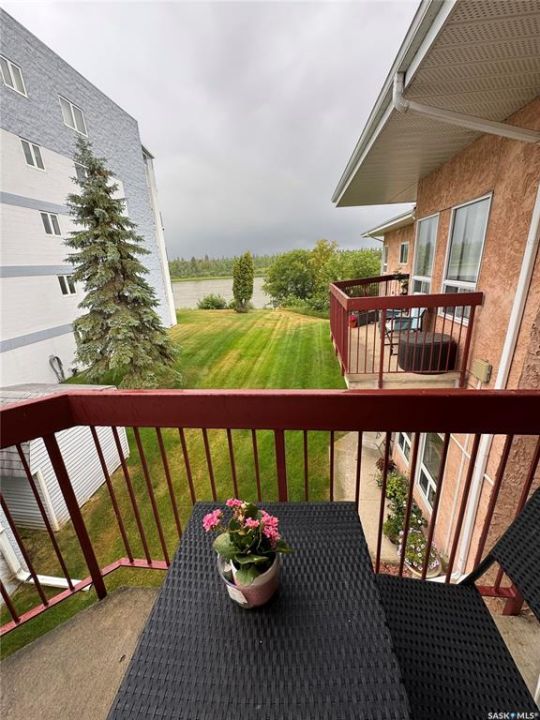 Welcome to this beautiful riverfront condo, perfectly situated to capture breathtaking sunsets and tranquil views of the North Saskatchewan River. This second-floor unit boasts an abundance of natural light, a spacious living and dining area, and garden doors leading to a private deck—ideal for relaxing or entertaining while enjoying the serene riverscape. The large primary bedroom offers comfort and privacy, complemented by a versatile second bedroom that can double as a home office. The kitchen features gleaming oak cabinetry and comes complete with all appliances. A private laundry room and dedicated water heater add to the convenience of this low-maintenance lifestyle. Unique features include direct access to the ground-level, insulated indoor parking stall located in the southeast corner, plus an additional parking stall for guests or a second vehicle. The garage also offers generous storage space with built-in metal shelving. As a special bonus, residents enjoy exclusive access to a landscaped common area with summer furniture and a deck that leads to a private floating dock—perfect for launching summer adventures on the water. Don't miss this rare opportunity to own a riverfront gem with lifestyle and location, all in one package.