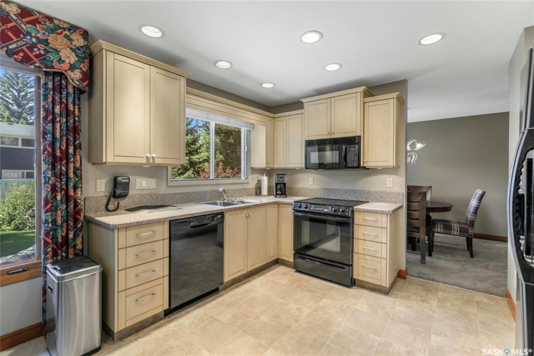 Welcome to this beautifully maintained 1,824 sq. ft. 4-bedroom, 3-bathroom split-level family home in desirable Albert Park — just steps from Southland Mall, parks, schools, and public transit. This home offers the perfect blend of space, comfort, and thoughtful upgrades throughout. The heart of the home is the stunning upgraded kitchen featuring rich cabinetry with pot drawers, pot lighting, custom blinds, and newer flooring. Stainless steel appliances include a fridge, stove, microwave/hood fan, and built-in dishwasher. The kitchen opens to a spacious family room with an upgraded gas fireplace, plush carpeting, and patio doors leading to a covered aggregate patio and a two-tiered deck — ideal for outdoor living and entertaining. The formal dining area boasts a large window and flows into a bright living room with a wall of windows and upgraded carpet, creating a warm and inviting space for family gatherings. A versatile main-floor bedroom or office, a large laundry room with cabinetry (washer and dryer included), and a stylish 3-piece bathroom with upgraded flooring complete the main level. Upstairs, you'll find a generous primary bedroom with double closets, upgraded carpet, and a private 3-piece ensuite. Two additional bedrooms and a full 4-piece bathroom offer comfort and functionality for the whole family. The basement offers even more space with a large family/rec room, den area, plenty of storage, and a utility room. Bonus inclusions: a basement fridge and deep freeze. Additional upgrades include central air, central vac, newer shingles, an upgraded overhead garage door, PVC fencing on one side, and updated flooring throughout. The insulated 24'D x 20'W double garage includes an upgraded overhead door and provides excellent parking and storage. This move-in-ready gem offers a rare combination of location, space, and quality — a perfect place to call home