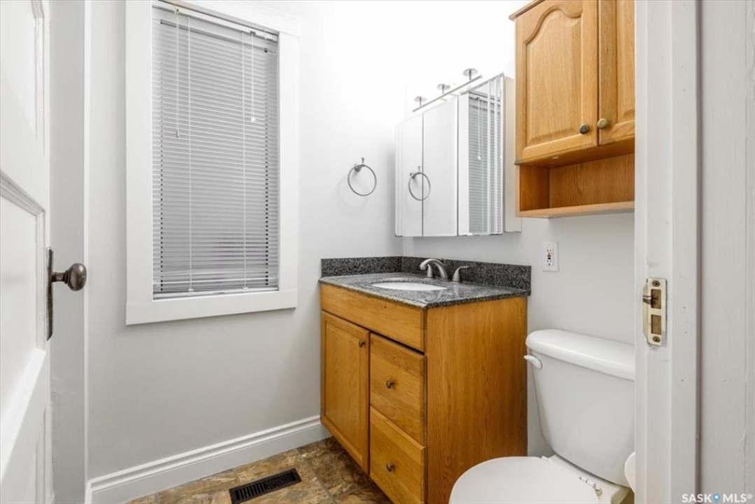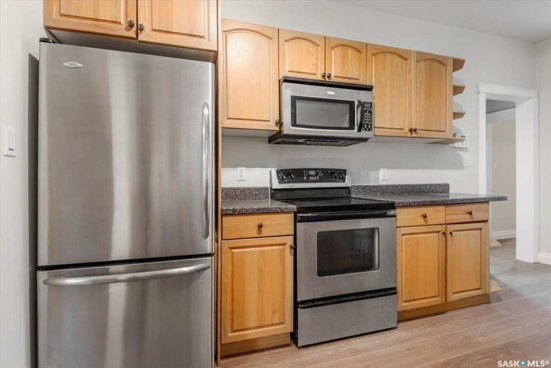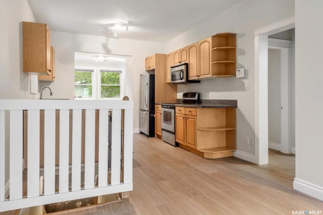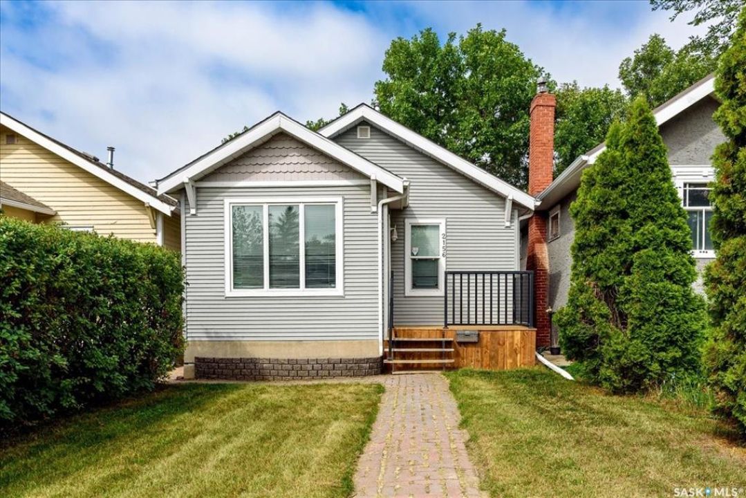 Welcome to 2156 Queen St., a charming cathedral bungalow. Greeted with 9ft ceilings and an open concept layout, this 2 bedroom bungalow is move in ready with fresh paint and flooring throughout the main floor. The functional kitchen offers plenty of cupboard and counter space, while the updated main floor windows provide natural light. The partially finished basement provides additional space with a 2 piece bath and a rec area perfect for a gym or game room. Outside, enjoy a beautifully designed low-maintenance yard with spacious patio and deck, mature trees and a 2010 Built double detached garage with alley access. Ideally located just steps away for Les Sherman Park and close proximity to all the amenities, shops and cafes that 13th Ave has to offer. Quick access to downtown, Lewvan drive and local schools. Shingles on house 2023