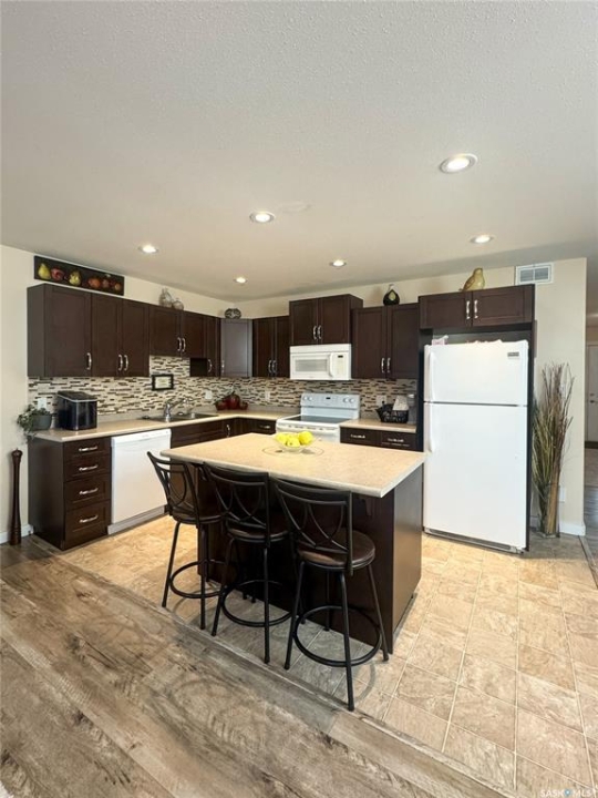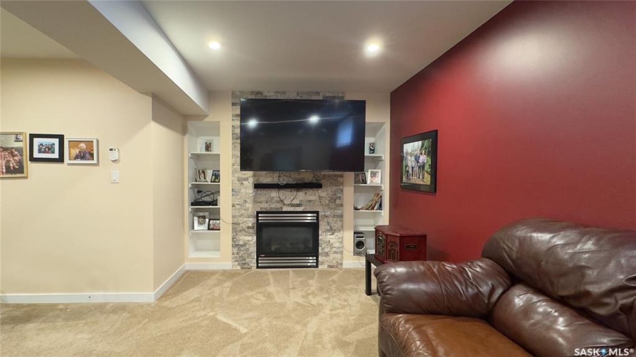 Located in the heart of Waldheim, this fully developed bungalow offers the perfect opportunity to downsize without compromising on comfort. A generous sized foyer with direct entry into the heated garage allows for ease of movement as you enter this bright, open concept home. The kitchen features espresso cabinets, a large island and ample counter space. Off the dining area, garden doors lead to a deck, overlooking well manicured greenspace. The spacious primary bedroom provides lots of closet space and is attached to a 4 piece jack and jill bathroom. Also on the main floor is a second bedroom, an office and Laundry hookup which is located just outside the bathroom, in a hall closet. The basement offers a third bedroom, laundry, bathroom, a dedicated storage room and a large recreation room complete with a gas fireplace. Additional features include air conditioning, air exchanger, natural gas BBQ hook-up and underground sprinklers. The exterior is maintained by the Condo corp, allowing you to enjoy your home without the responsibility of clearing snow, or mowing grass! Call your favorite Realtor ® and tour this beautiful move in ready home!