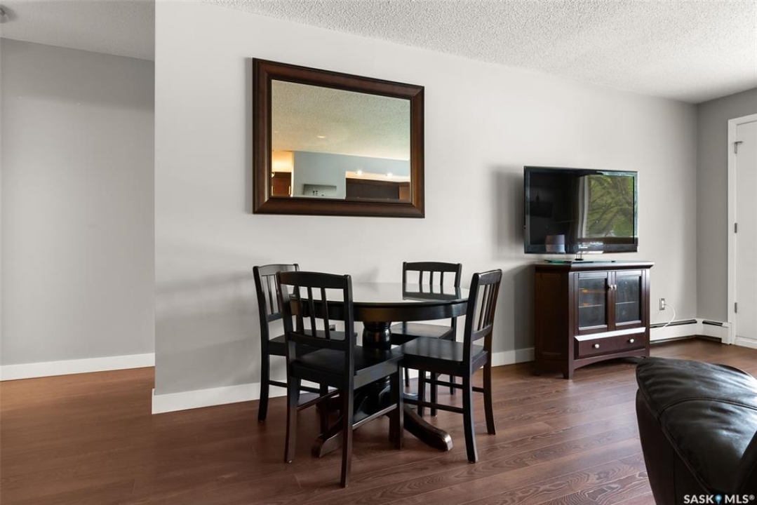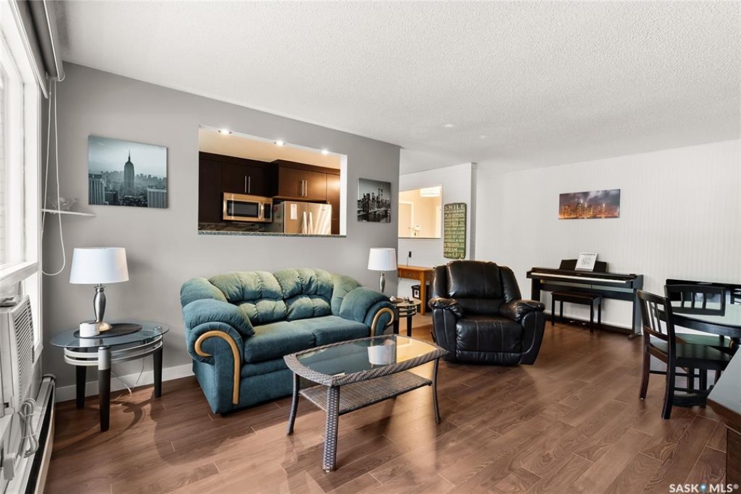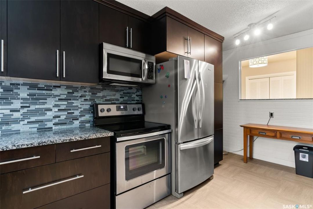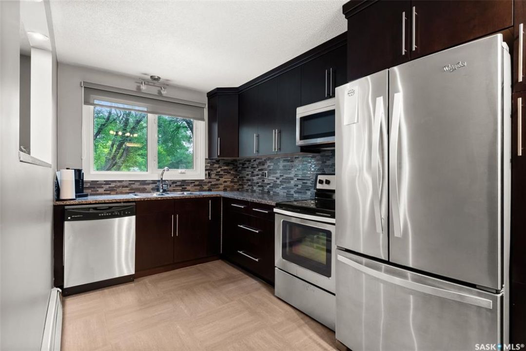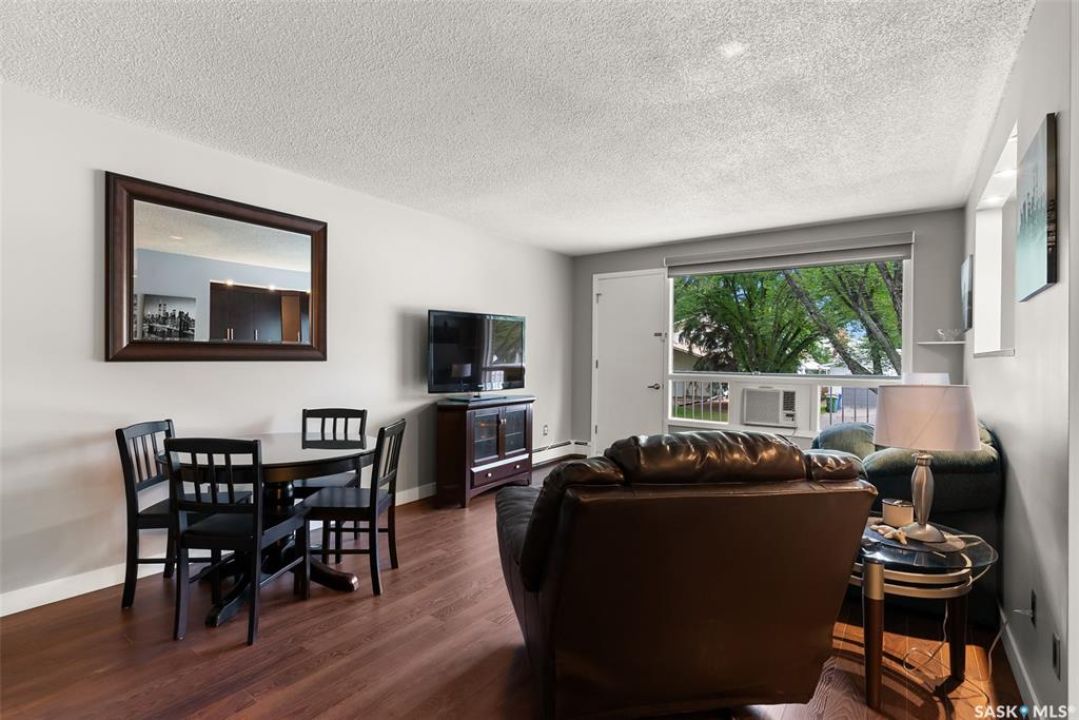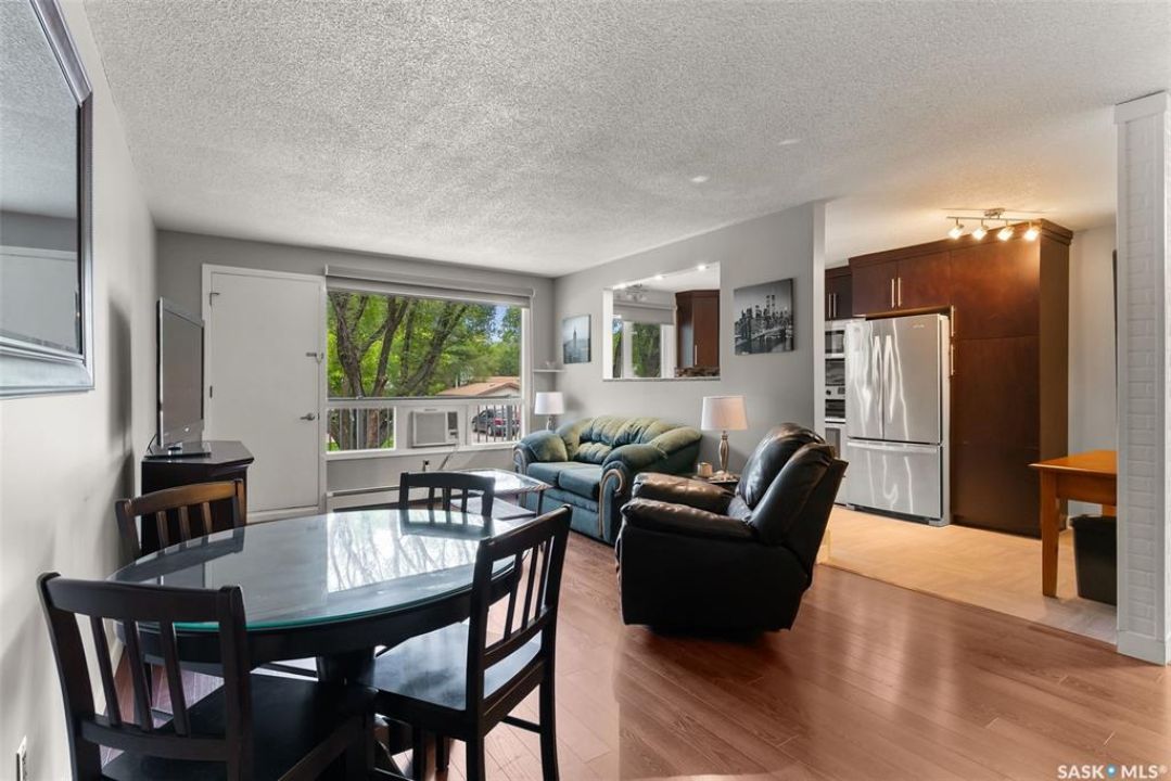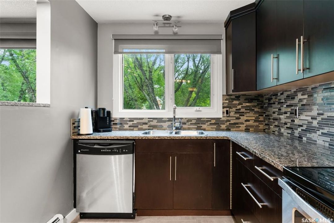 Welcome to unit 10 at 38 Spence Street, an inviting and well-maintained complex in Regina's desirable Hillsdale neighbourhood. This beautifully updated second-floor unit offers 848 sq. ft. of stylish, move-in-ready living space with a thoughtful layout designed for comfort and functionality. Inside, you'll find a bright open-concept living and dining area enhanced by large windows that fill the space with natural light. The modern kitchen features rich cabinetry, sleek tile backsplash, stainless steel appliances, and beautiful granite counter space, making meal prep both easy and enjoyable. The living room extends onto a private balcony, perfect for enjoying your morning coffee or relaxing in the evening while taking in the tree-lined street views. This condo includes two comfortable bedrooms, each with vinyl plank flooring and generous closet space. The updated 4-piece bathroom offers a clean, contemporary design, while an in-unit storage room adds extra convenience. Residents also enjoy access to shared laundry facilities within the building. Additional highlights include one exclusive surface parking stall, a wall air conditioning unit, rough in plumbing for in suite washing machine and a well-run condo association with fees that cover heat, water, building maintenance, and more. The complex offers a welcoming community feel. Located near the University of Regina, Massey elementary school, Campbell Highschool, Wascana Park, shopping, restaurants, and public transit, this property is ideal for first-time buyers, students, or anyone seeking an affordable, low-maintenance lifestyle in a prime location.