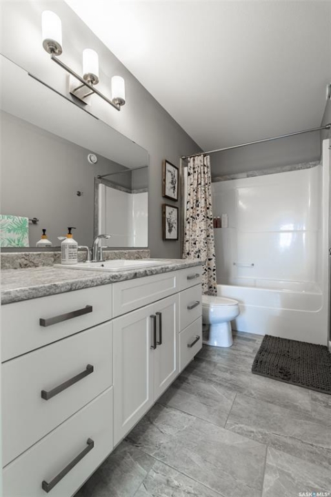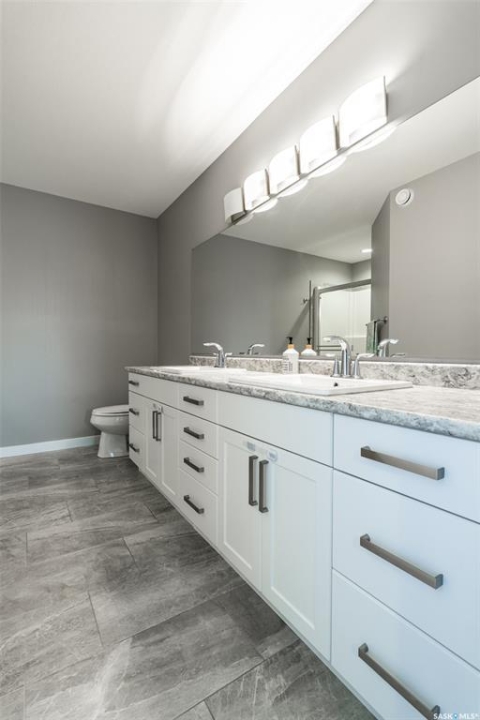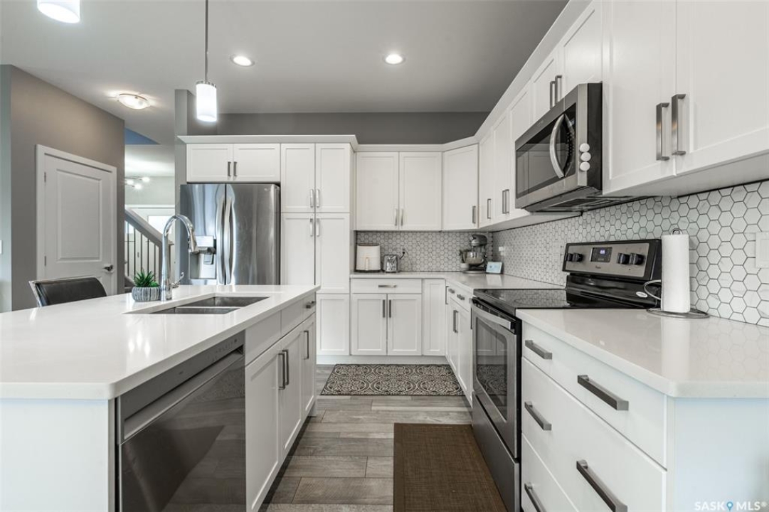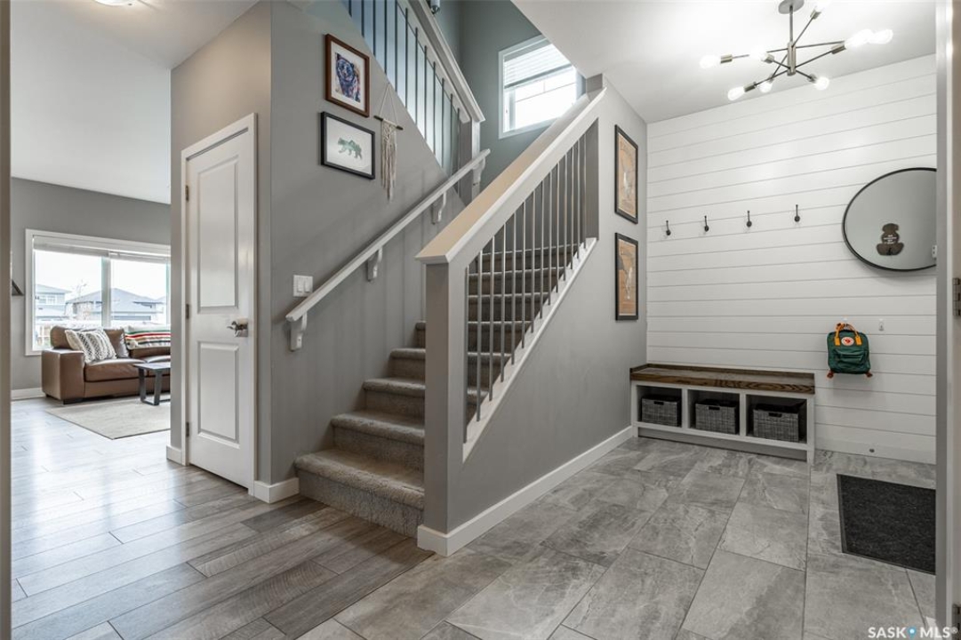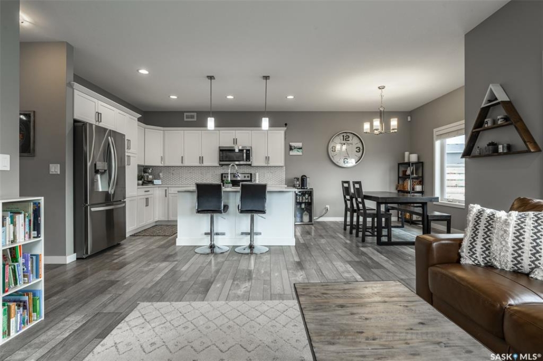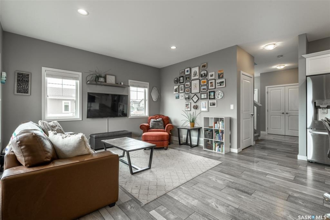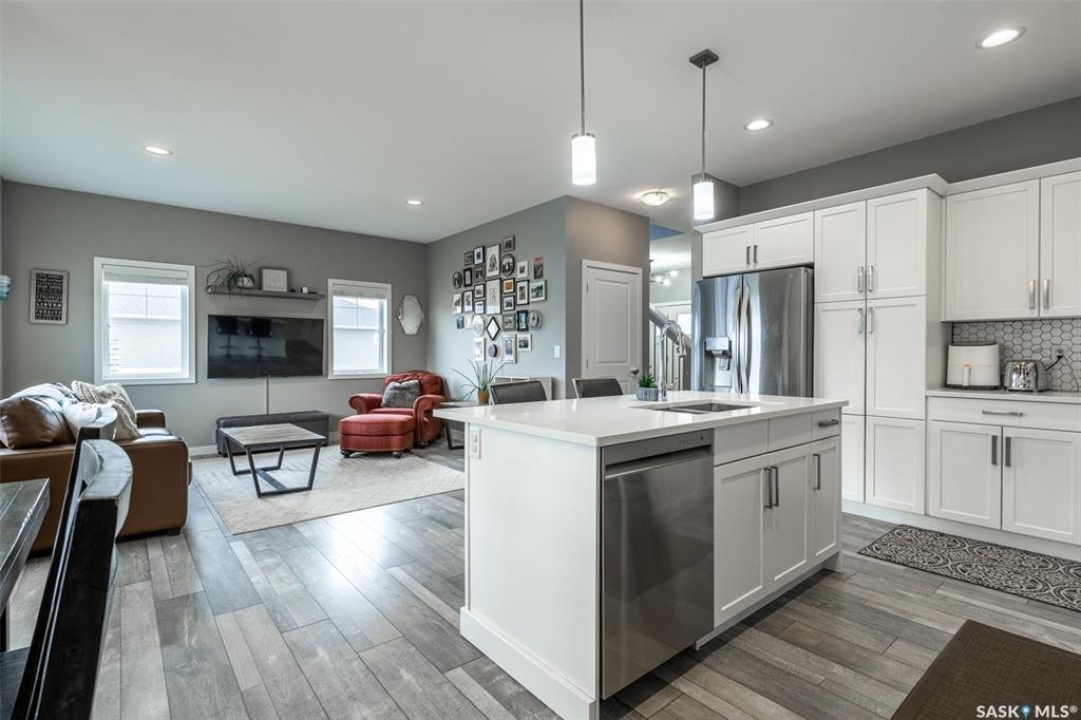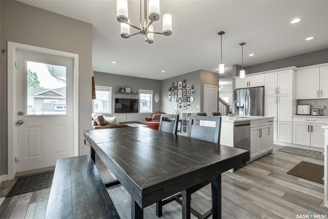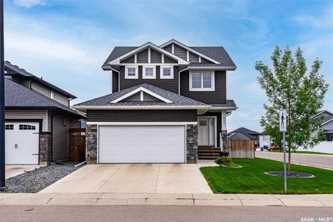 Welcome to 502 Childers Crescent in Saskatoon's Kensington neighbourhood. This two storey home was once a Montana Homes Show home. The current owners have added tasteful touches to the main floor and finished the basement beautifully. Walking in you are greeted with a spacious entry. Just off the garage entrance you will find a powder room and a laundry room. The rest of the main floor is open concept with the living room, dining room, and kitchen open to each other. Up on the second floor is a large bonus room, and 2 bedrooms for office/guests/kids, as well as a 4 piece bathroom. The primary bedroom is also on the second floor with a true walk-in closet, and a 4 piece bathroom with 2 sinks in the large vanity. The basement finishes are very appealing. There's a 4th bedroom, a 3 piece bathroom with a tiled shower, and plenty of room for a media space, a gym, family room, or a myriad of other options. The backyard is fully fenced, has a lush lawn, and a deck to hang out with friends as you BBQ on warm summer evenings. The garage is insulated and boarded keeping vehicles frost free in colder months. This house is turnkey and ready for it's new owners.