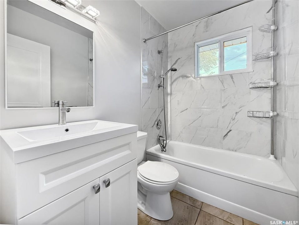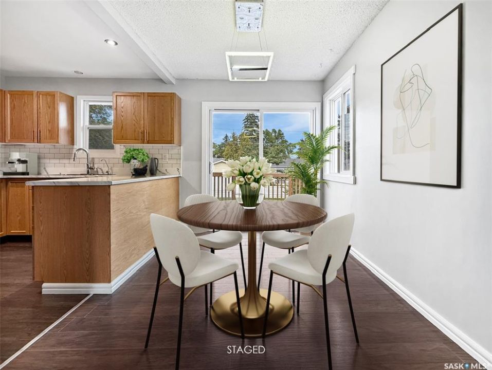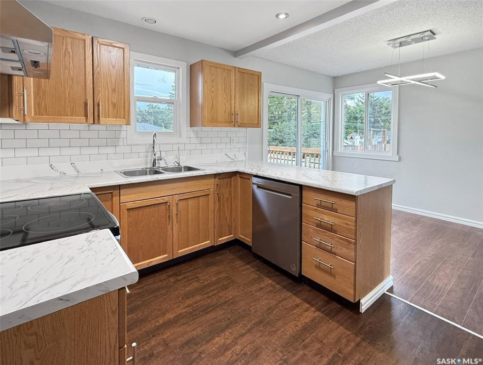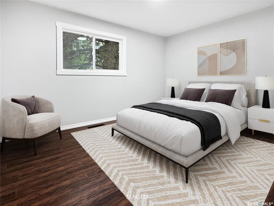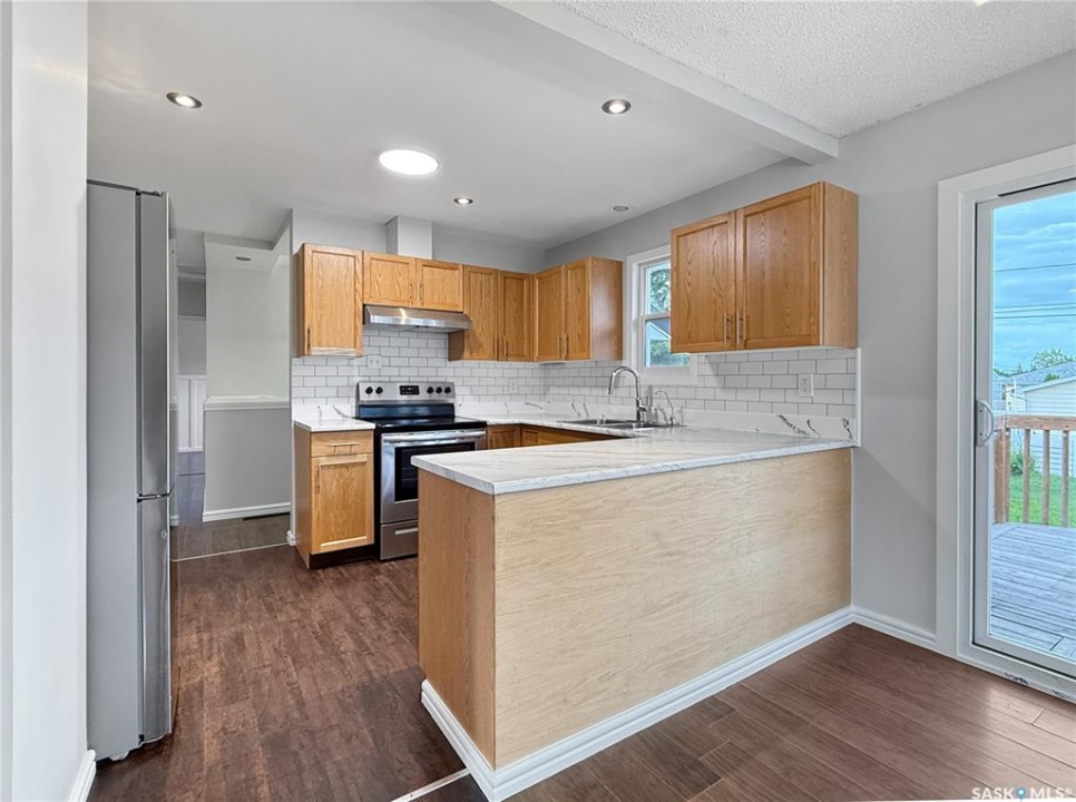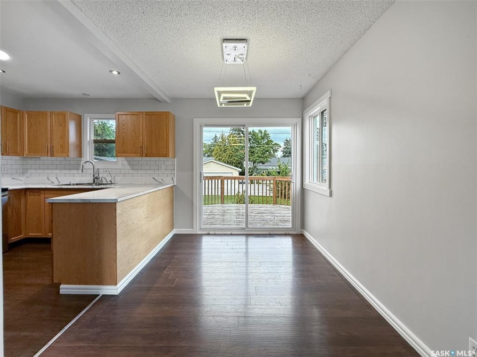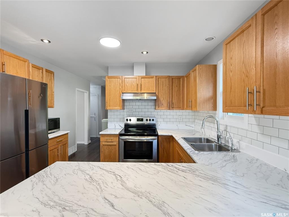 Are you searching for a move-in ready Home in the highly desirable Upper East section of the city? This fully renovated home offers an ideal blend of comfort and convenience, situated just steps away from K-12 schools, a golf course, scenic river views, walking paths, the skatepark, and a variety of amenities. With extensive updates throughout, including new siding, windows, shingles, soffit, fascia, deck, and doors, this property is ready for you to make it your own. Upon entering, you'll appreciate the thoughtfully designed floor plan featuring a spacious living and dining area, a fully renovated four-piece bathroom, and three mainfloor bedrooms, including a generous master suite. The modern kitchen boasts light oak cabinetry, a stylish white subway tile backsplash, new appliances, and a convenient peninsula that opens to the dining area, providing direct access to the deck for outdoor enjoyment. The lower level expands your living space with an oversized family room, a dedicated laundry area, a remodeled three-piece bathroom, and two additional bedrooms. The utility room has been completely upgraded, featuring a 100 amp electrical panel, an energy-efficient furnace, an updated hot water heater, central air and ample storage, including a cold storage area. The fully fenced yard creates a perfect summer oasis, complete with a recently built deck, lush green space, and a single-car garage. Renovated properties in this area are few and far between so call today for more information or to book your personal viewing today.