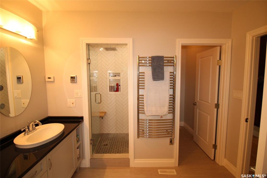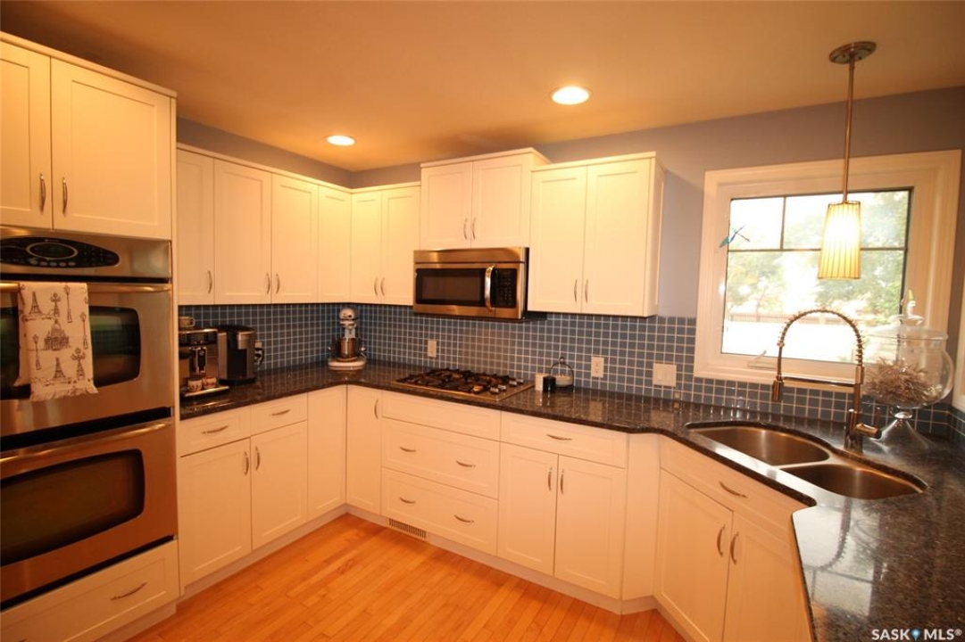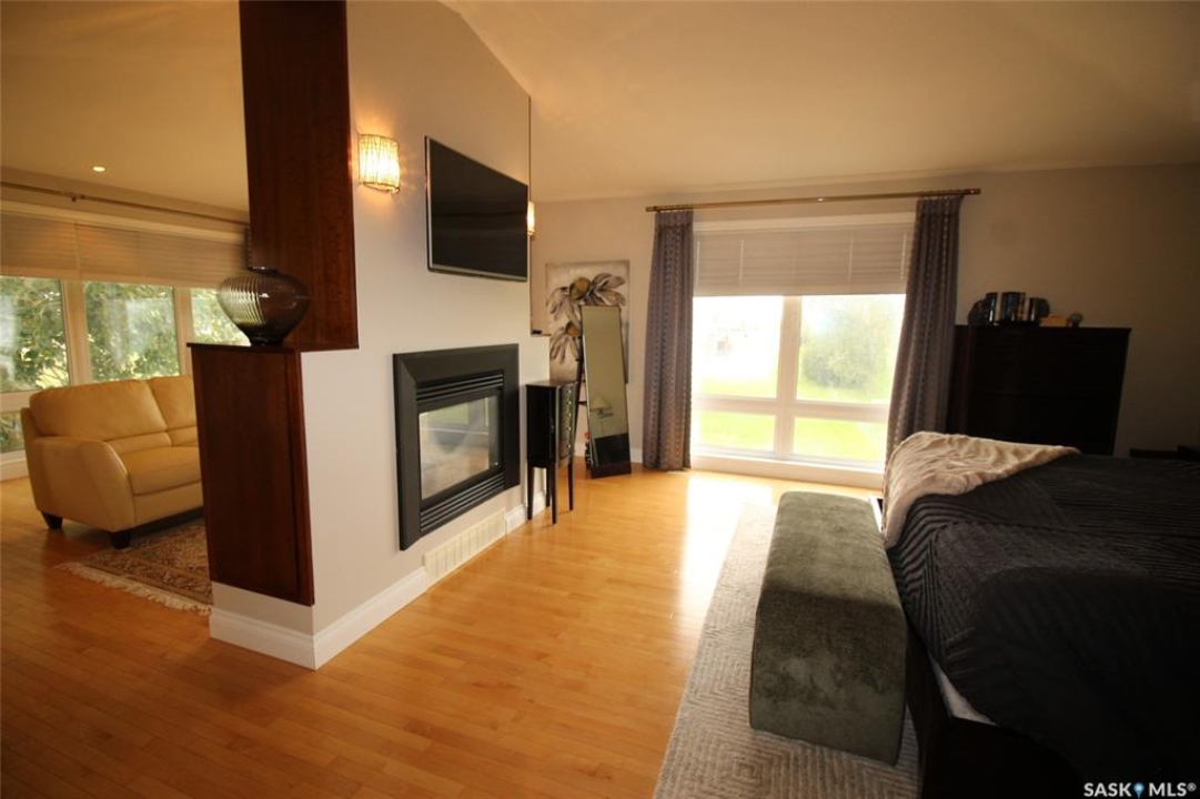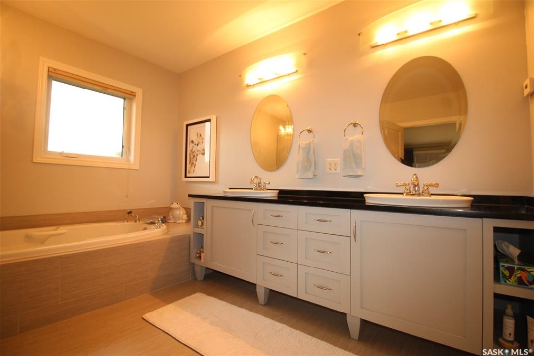 This is your opportunity to own a premium property that checks every box — modern updates, generous space, and a prime location. Nestled in a quiet cul-de-sac, this stunning home backs onto Avondale Park, offering peaceful views and direct access to green space. Step inside through the welcoming front door into a spacious foyer that immediately reflects the unique style and charm of the home. To your left, a sunken living room with a cozy gas fireplace opens to the formal dining room — perfect for entertaining. The chef's kitchen is a dream, featuring a gas cooktop, built-in double oven, granite countertops, crisp white cabinetry, and plenty of workspace. The adjoining breakfast area includes a built-in desk and garden doors leading to the back deck. The main floor hosts two bedrooms: one with a 3-piece ensuite and walk-in closet, and another with a custom Pax wardrobe system. The guest bath boasts a deep jetted tub for ultimate relaxation. Upstairs, the luxurious primary suite offers a private retreat with a reading nook, two-sided fireplace, spa-inspired ensuite with double sinks, bubble jetted tub, separate steam shower with directional body spray, and private water closet with bidet. The walk-in closet is outfitted with a beautiful custom wardrobe system. The lower level is designed for fun and comfort, with a spacious family/games room, full wet bar with dishwasher, and another gas fireplace for movie nights. Two large bedrooms are found here — one currently used as a home gym with a rubber matted floor. The home is equipped for year-round comfort: the primary suite features natural gas forced-air heating and on-demand hot water, while the rest of the home enjoys radiant hot water heat, including in-floor heating in the basement and both attached double garages. A stand-by whole home generator is ready for any emergency. Outside, the left side yard is fenced with new PVC fencing, a firepit, and private stone patio.