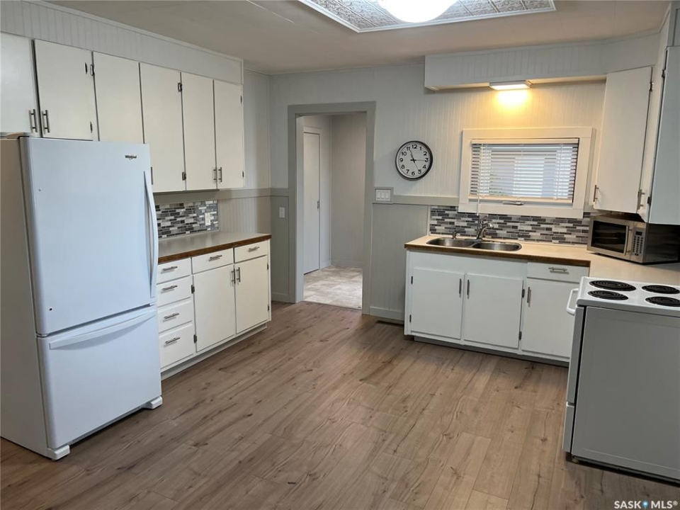 PUT THIS BUNGALOW ON YOUR VIEWING LIST!! Situated in the Town of Lafleche the property has had some TLC added to it with a couple new windows, updated exterior doors, some vinyl siding, flooring, baseboards, paint and updated bathroom. The Seller took pride in the renovations and the quality work shows. The 24x26 garage is an big added bonus with two doors, 220 amp plug and an abundance of work space you might find yourself spending more time in the garage than the house. Lafleche has lots to offer like a Health Center, pharmacy, grocery store, restaurants, gas station, Credit Union, K-12 school, churches, library, skating and curling rinks and much more. Book your private viewing today!!