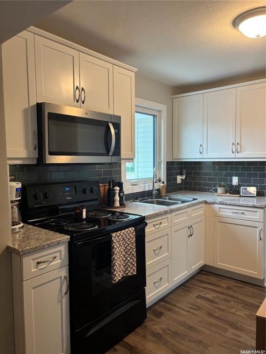 This super cute and stylishly updated bungalow is perfect for first-time buyers looking for a move-in ready home! This home features a bright and airy living room with large corner windows, and a modern kitchen with white cabinets including pantry with pullouts, backsplash, and additional butcher block counter space. There are 2 bedrooms and a fully renovated 4-piece bathroom. A bonus family/dining room with patio doors leading to a patio and fully fenced backyard is a great addition to this home. Numerous upgrades including siding, shingles, windows, furnace, a/c, water heater, electrical, and flooring. Added to the upgrades is a reinforced basement, new cement basement floor and a double concrete drive. This home blends charm, function and modern style effortlessly - call now for your personal viewing!