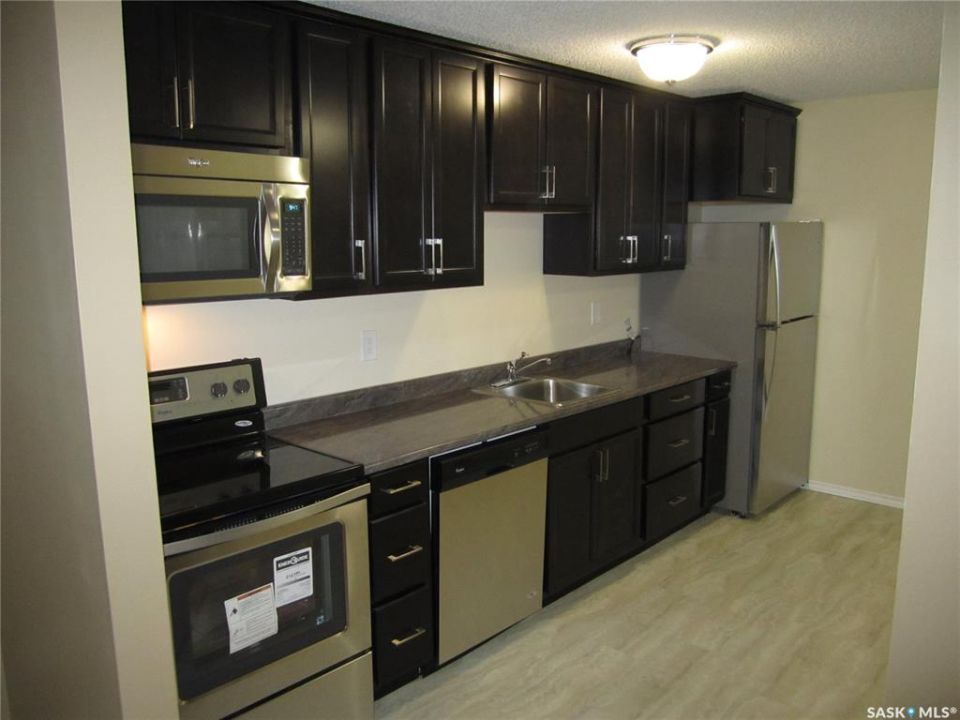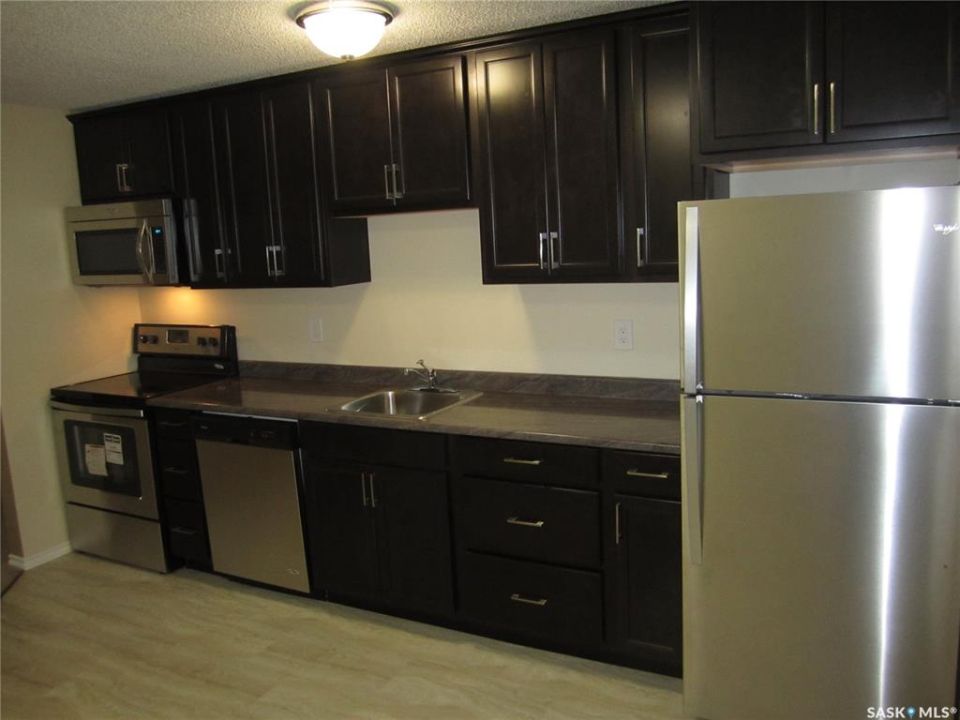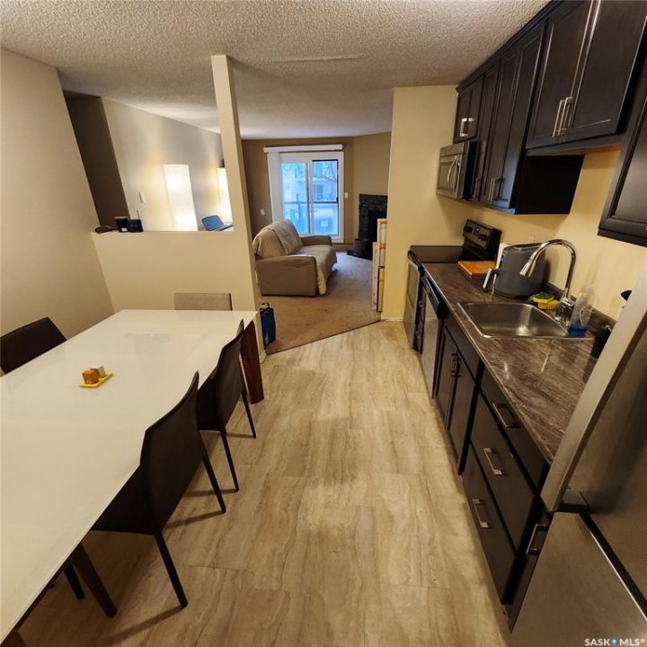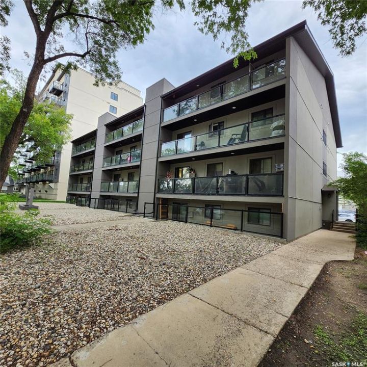 CITY PARK - - - Updated, spacious 2 bedroom condo in City Park walking distance to the river, U of S, and downtown. Renovations over the years include: newer kitchen with dark maple cabinets, countertops, vinyl plank flooring, sink, tap, & stainless steel appliances. Updated bathroom with newer vanity, taps, and tub surround. All newer trims & baseboards, paint, and lighting. Master bedroom with cheater ensuite & double closet. Ensuite laundry. Huge west facing balcony shaded by mature elm trees. One covered, electrified parking stall included. This spacious unit is in a superb City Park location. Great for U of S, AIRBNB, & downtown workers. Don't miss this one!