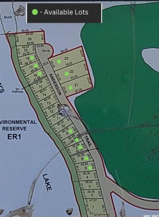 Lot 6 Eastshore Estates on Anderson Lake, Saltcoats, SK. 26 km east of Yorkton, SK. Lakefront Subdivision with lots at 0.25 acres - 0.50 acres. Average Frontage is 33 meters (108 ft.) and 70-80 meters long (230 feet – 262 feet). Services with SaskTel, Sask Power, and Sask Energy. R.M. Maintained road with street lights. Contact your agent for more details.