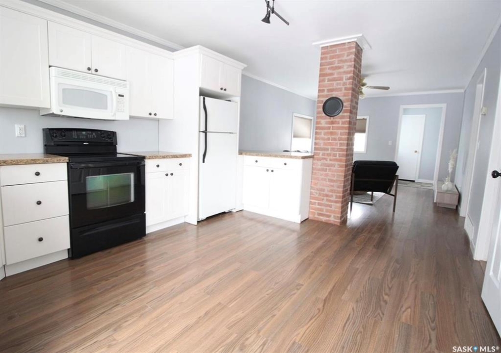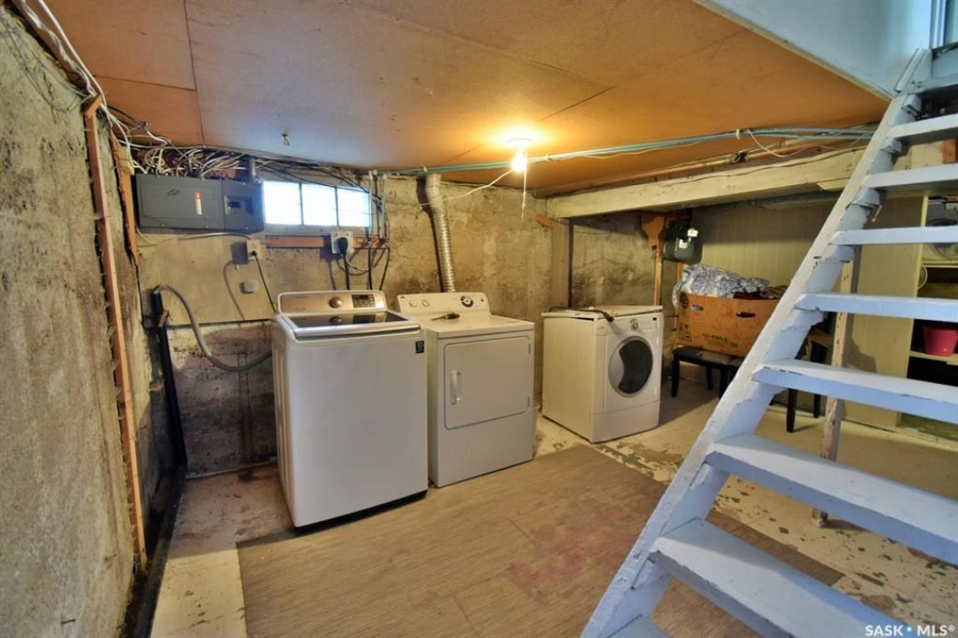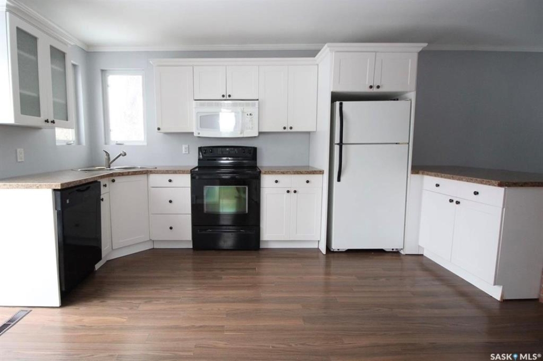 This beautifully updated bungalow offers modern comfort, a functional layout, and a fantastic location directly across from the school. It's the perfect blend of convenience and privacy, surrounded by mature trees and a spacious yard. The main level features a bright, spacious living room and an updated kitchen with crisp white cabinetry, a convenient eat-up island, and direct access to the oversized back deck—ideal for entertaining or relaxing. You'll also find two generous bedrooms, a cozy den with a large picture window, and a beautifully tiled 4-piece bathroom. Downstairs includes a laundry room, a storage room, and a utility area—offering plenty of practical space. A new furnace was installed in 2023, adding to your peace of mind. Outside, the 50' x 200' yard is sure to impress. It offers incredible space for outdoor living, mature trees for natural privacy, and a large shed for extra storage. Affordable, move-in ready, and full of charm—don't miss your opportunity to own this wonderful home. Call today to book your showing!